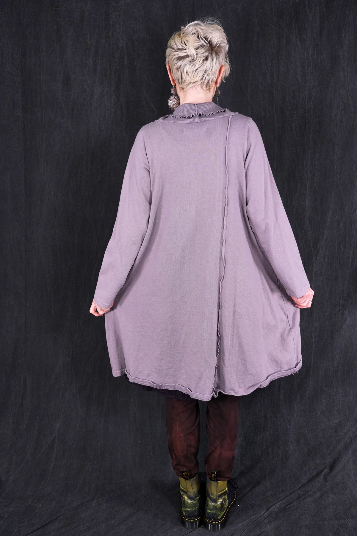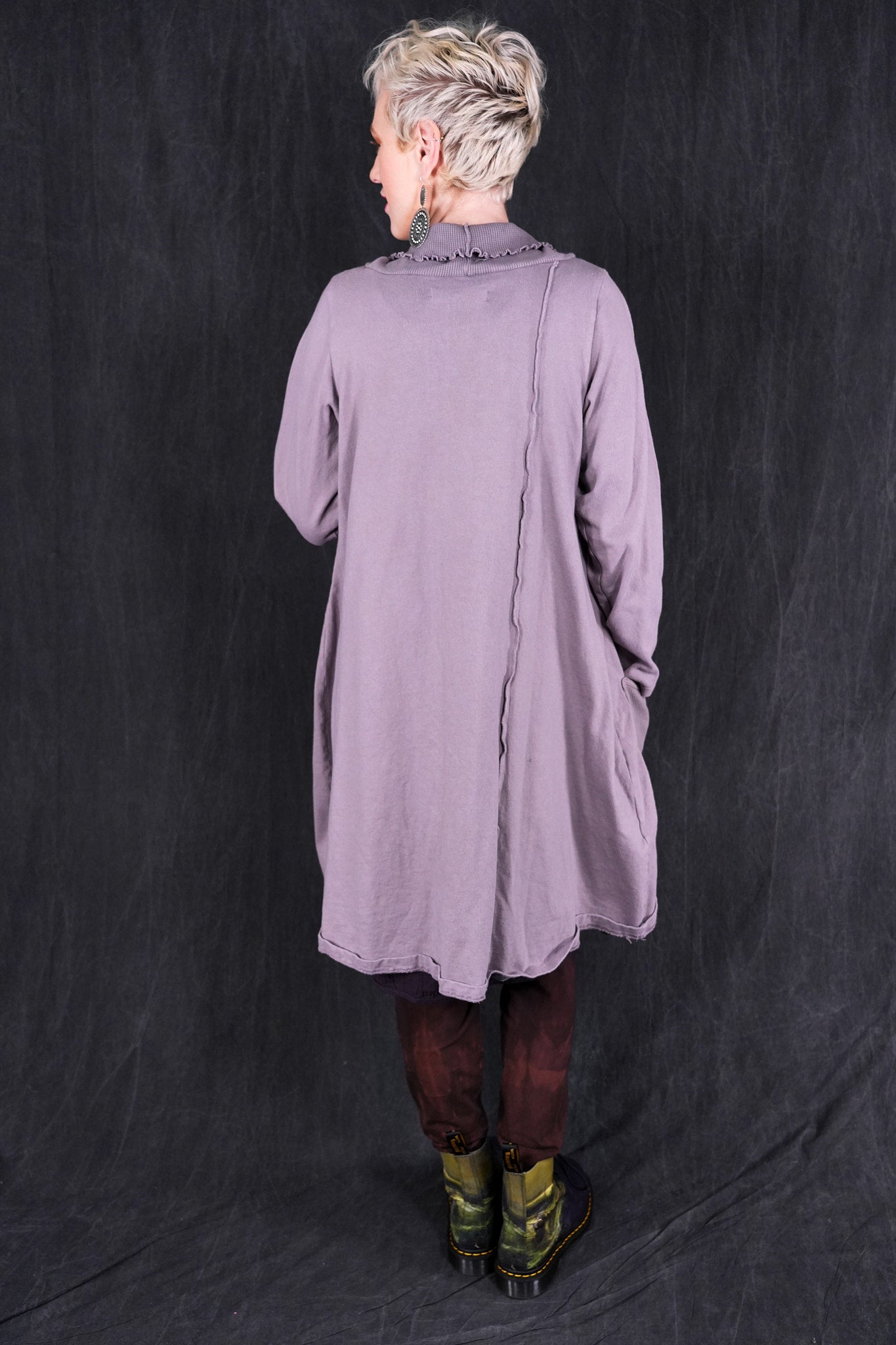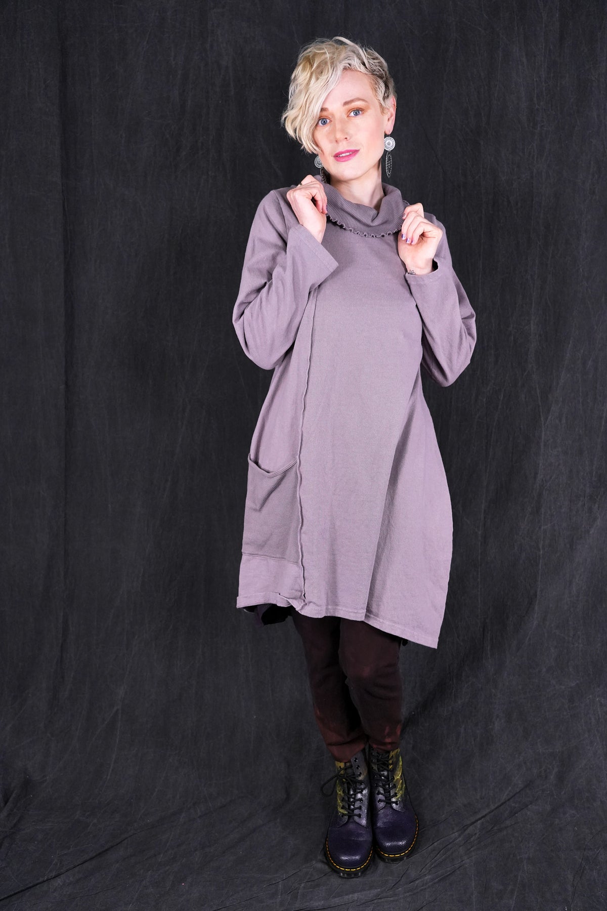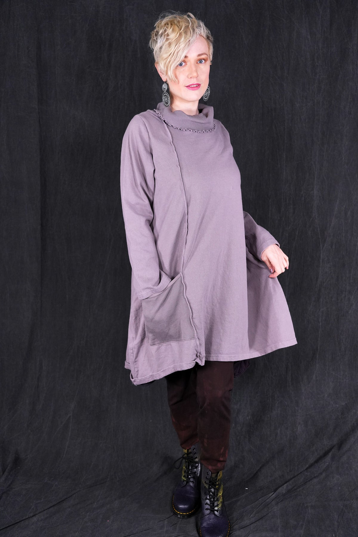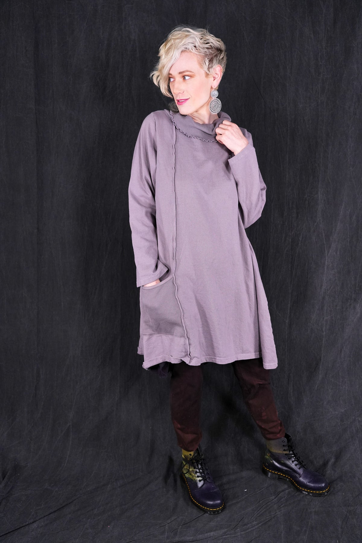 This new tunic is made of heavier, slightly textured reprocessed cotton knit, with details made of organic thermal. offset seaming in front and back, asymmetrical pocket. An easy tunic to wear on colder days.