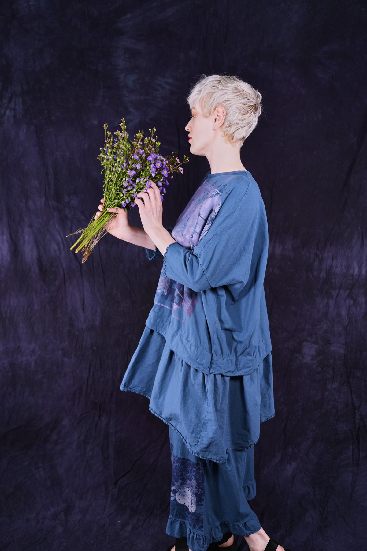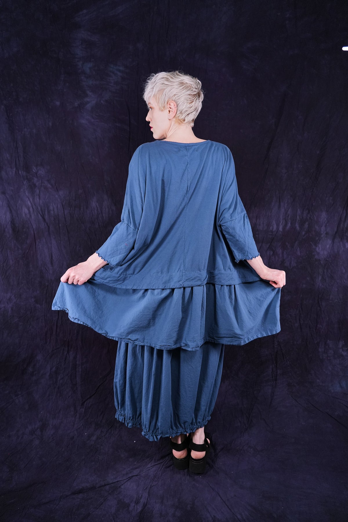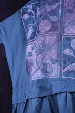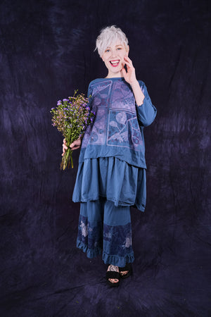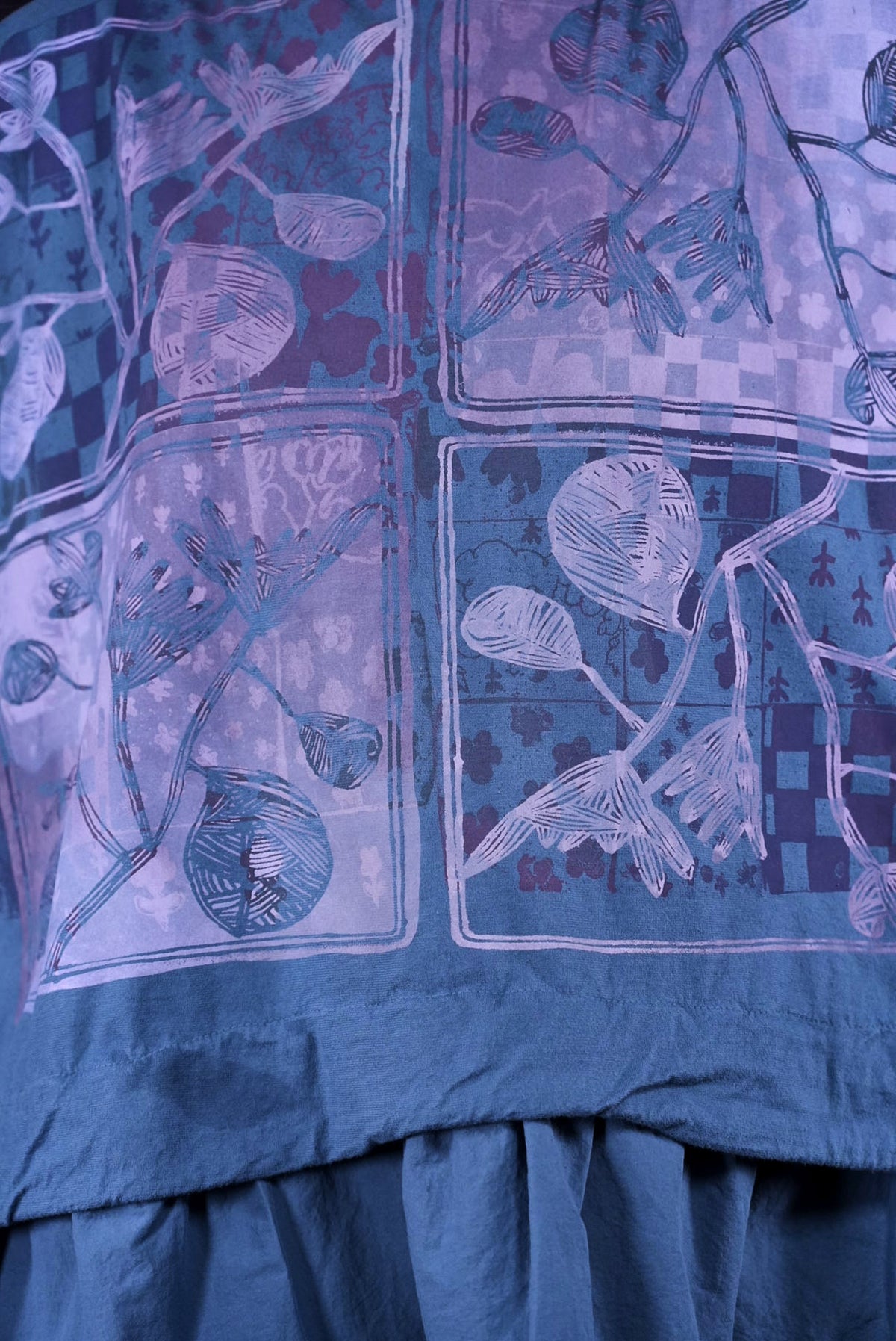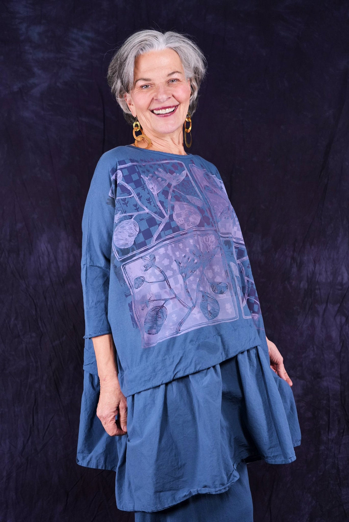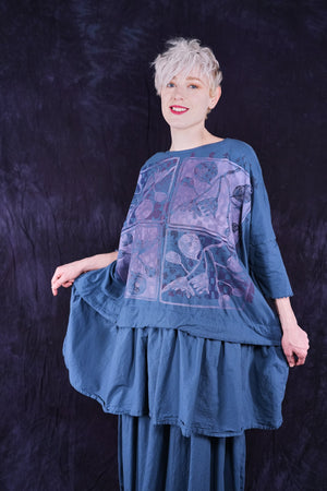 Sweet! A wide square top paired with a gathered lightweight floaty lawn skirt. Wear it as a dress. Pair with pants, pair with a skirt- it is a new favorite and we have only made a small amount in each color. Organic & hand printed, 100% blue fish magic.