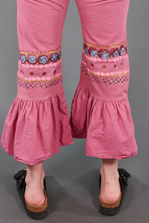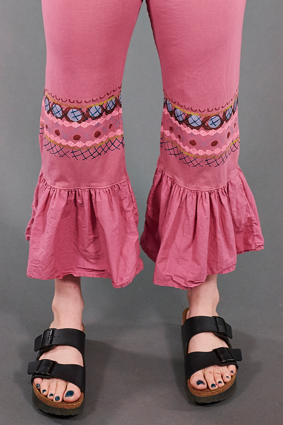 This take on the petaloon is full of festive, summery life! Each leg is edged in lightweight, cotton lawn fabric that flows elegantly as you walk. The elastic waist & stretchy organic cotton/spandex fabric fit similarly to your favorite leggings. We recommend wearing under a tunic, dress, or layering skirt to add the perfect pop of Blue Fish whimsy.