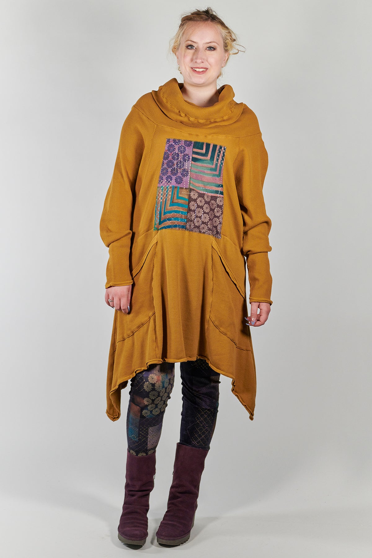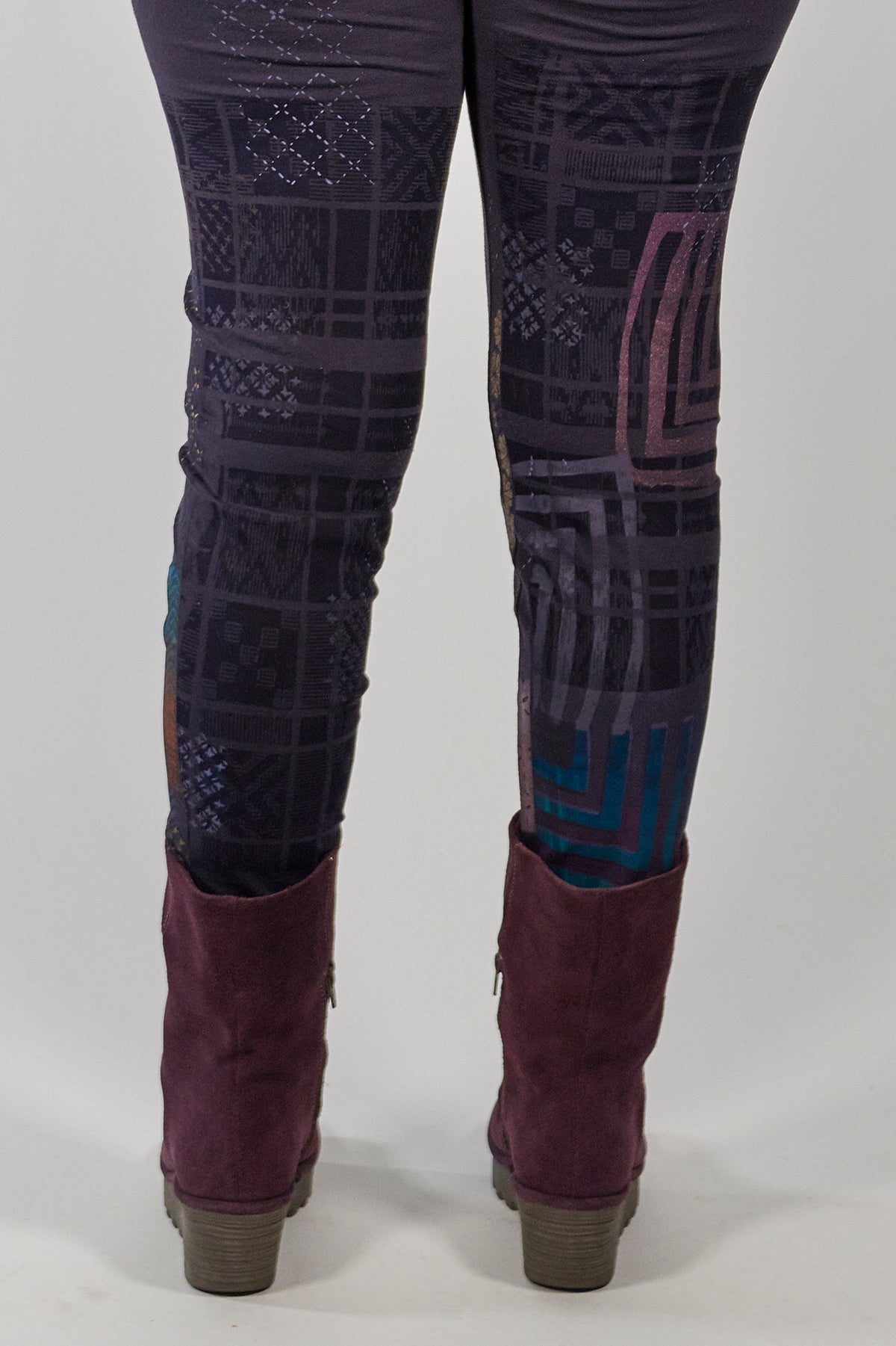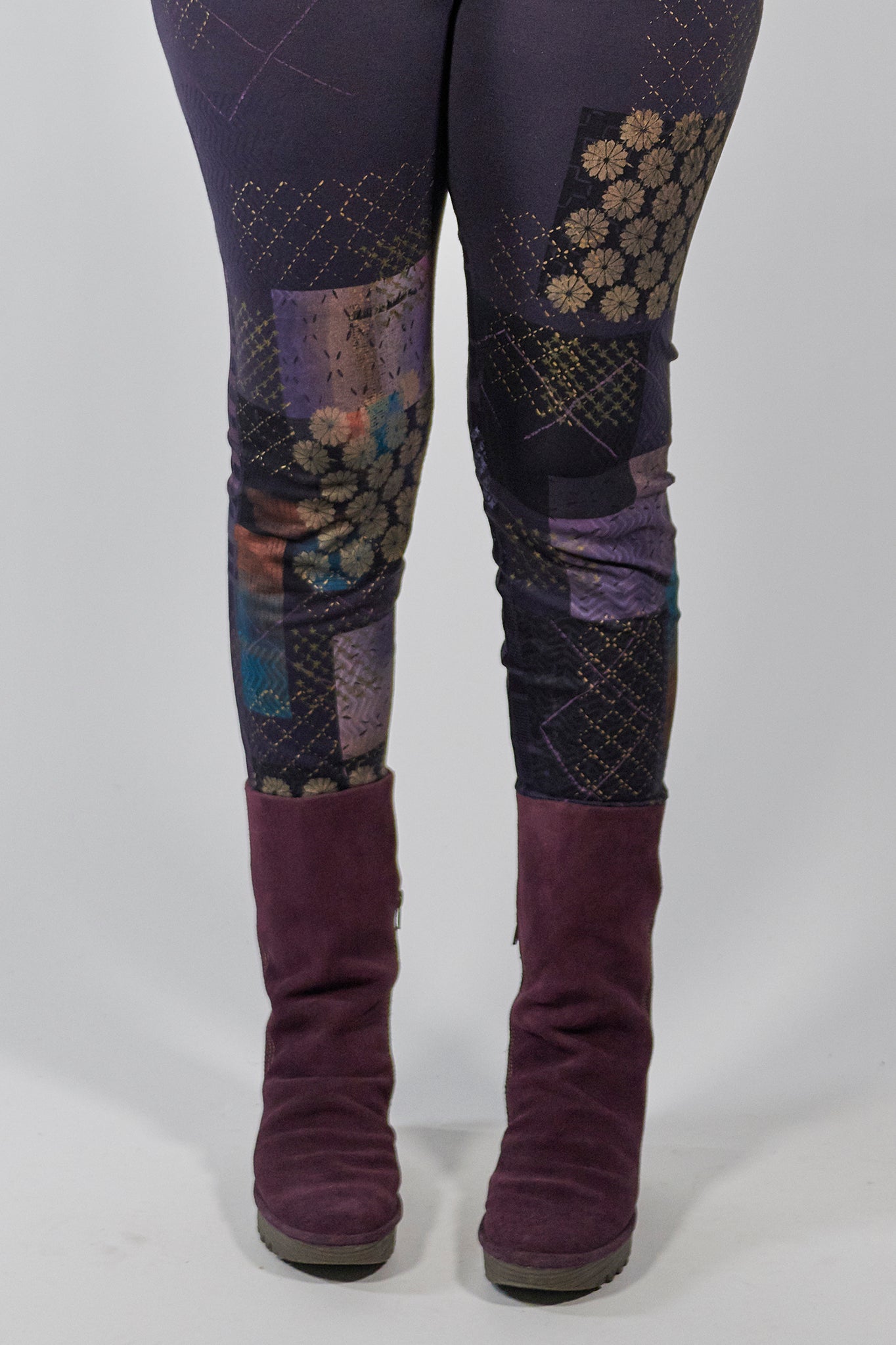 Made entirely in the USA from knit of fabric, through design and sewing. hand printed with love in our studio one at a time. Hand printing leggings takes a long time!
