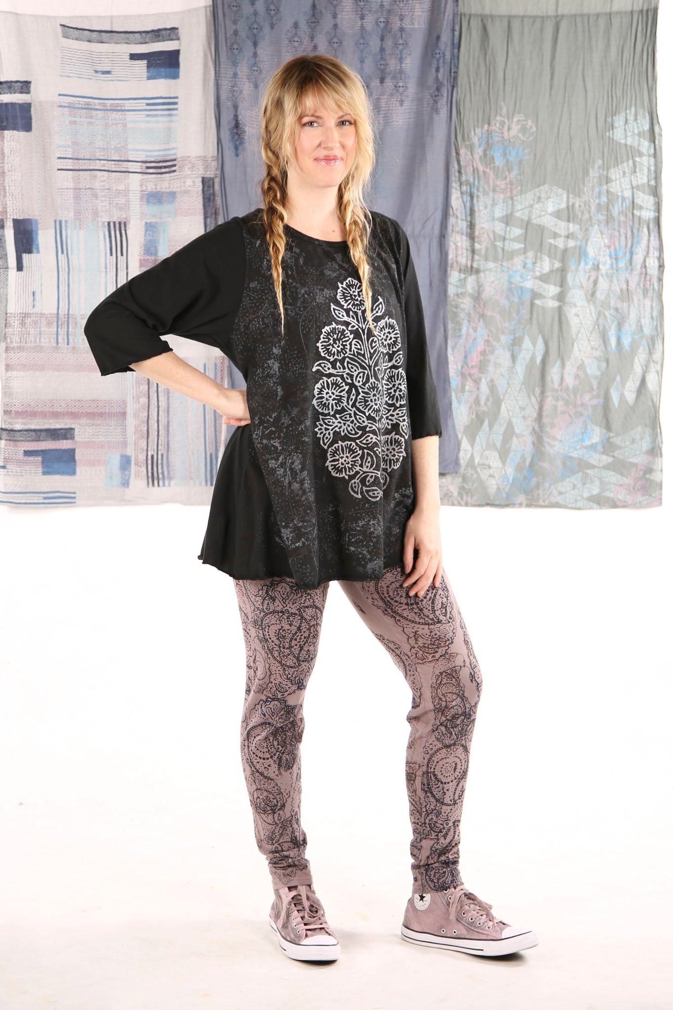 A fabric made just for us from 92% organically grown cotton with 8% spandex, in a nice medium weight. These classic blue fish organic leggings fit great and feel even better, with a substantial amount of added stretch for that extra comfort year round.