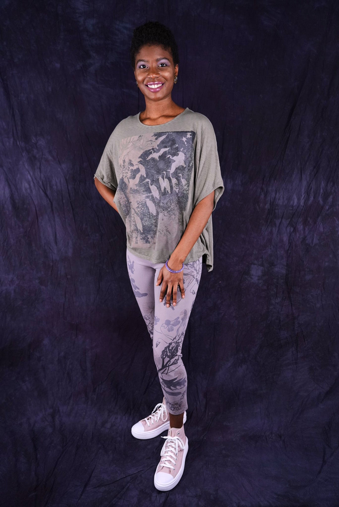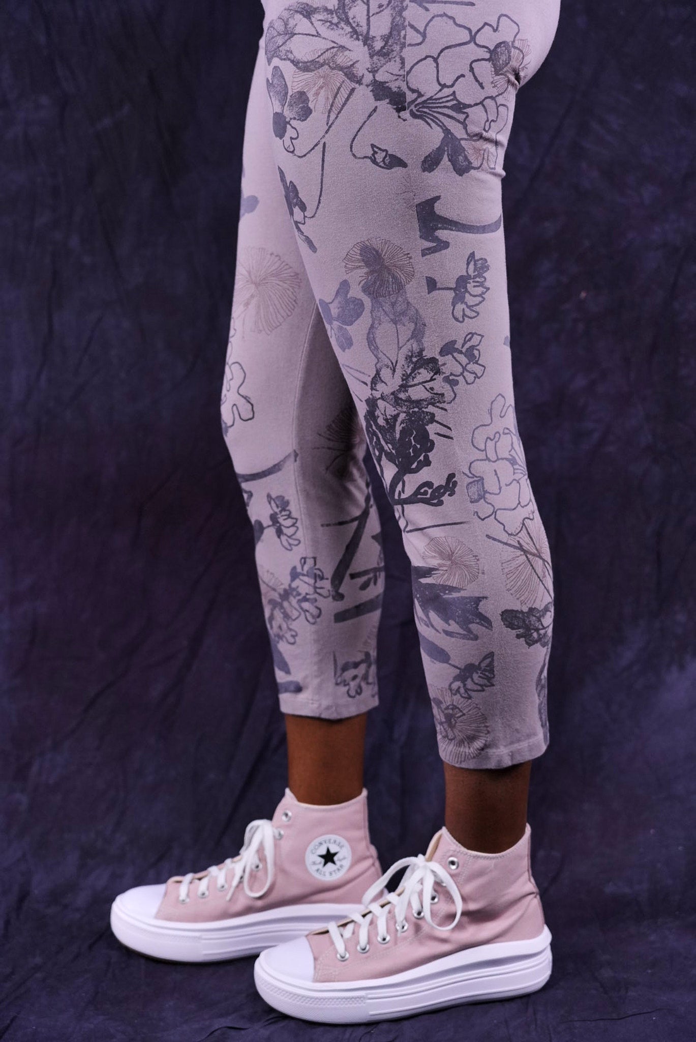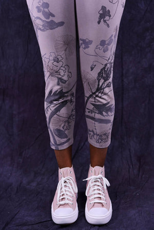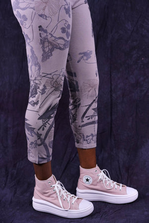 Our incredibly soft organic cotton with just a touch of lycra leggings cropped for the warmer months.  They have beautiful butterfly wing hand-printed designs to mix into your collection. Printed by hand on the front and the back- it takes us a long time to print these!