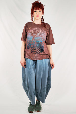Beloved Blue Fish organic cotton in a favorite Four Square pant. This uniquely shaped pant includes POCKETS, hand-printed designs on the front, and an architectural full leg tapered at the hem. The Four Square is a basic in any & every Blue Fish wardrobe... you're bound to reach for them again & again. A must-have!