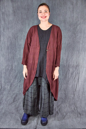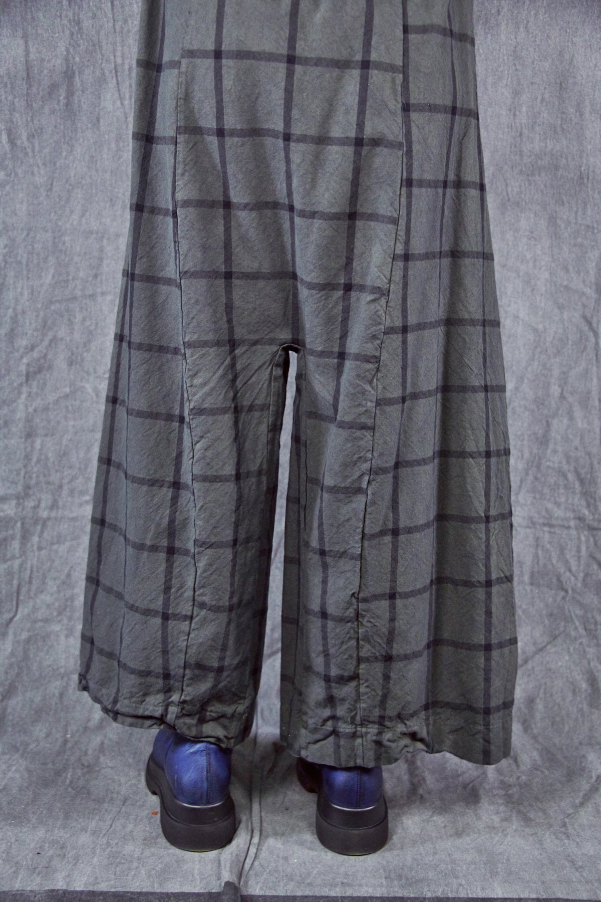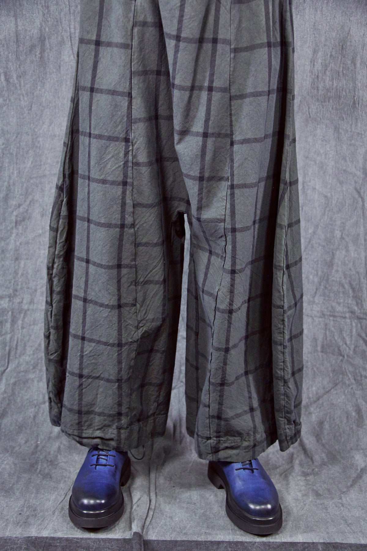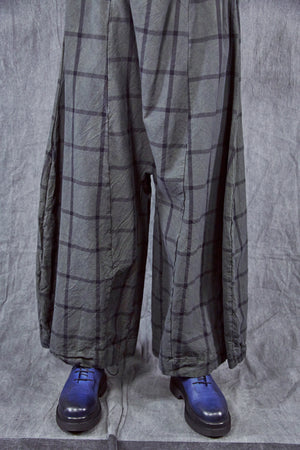 Drop crotch cotton plaid pants. 1inch elastic waistline. Plenty of leg room for movement.