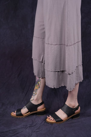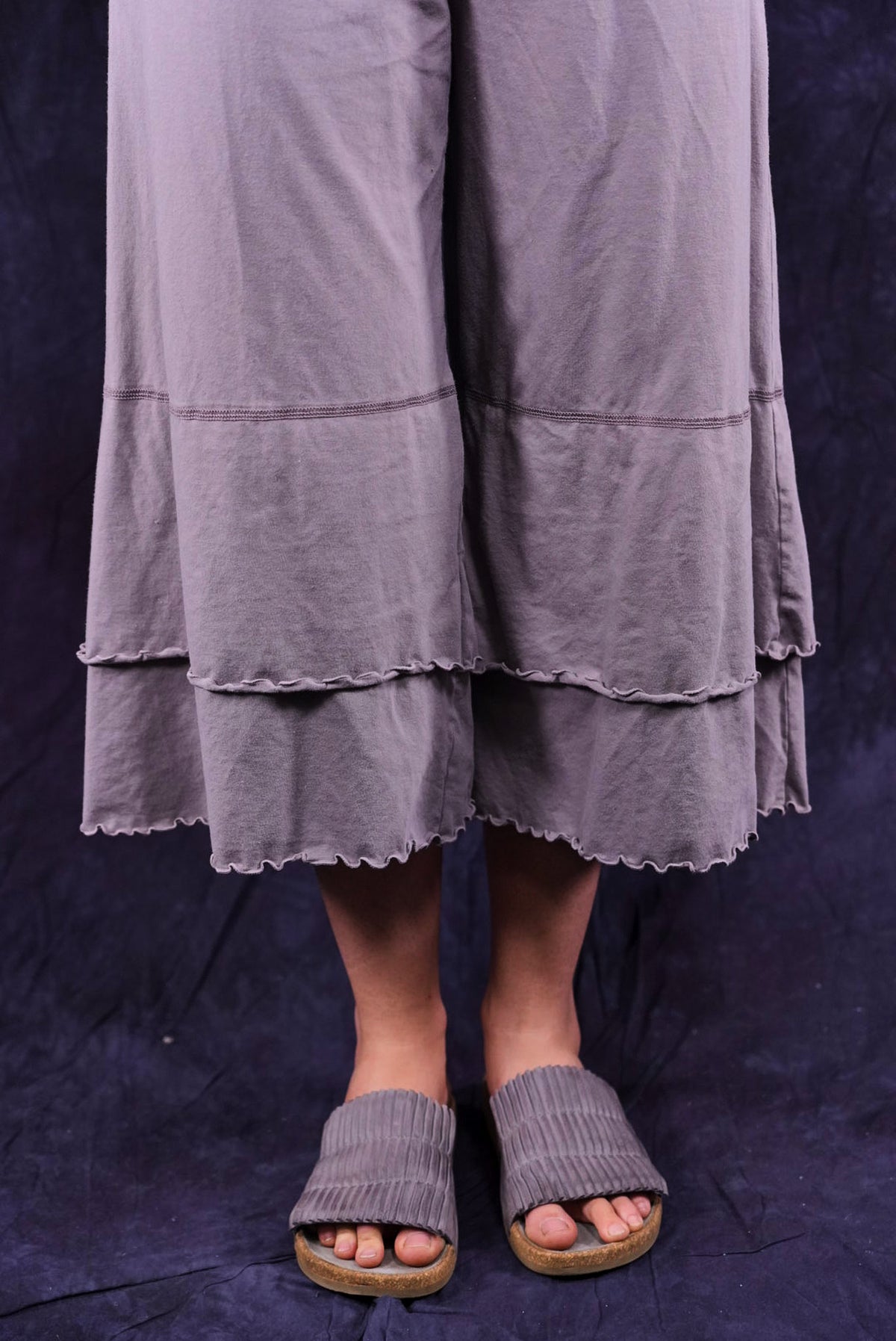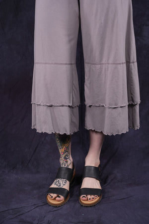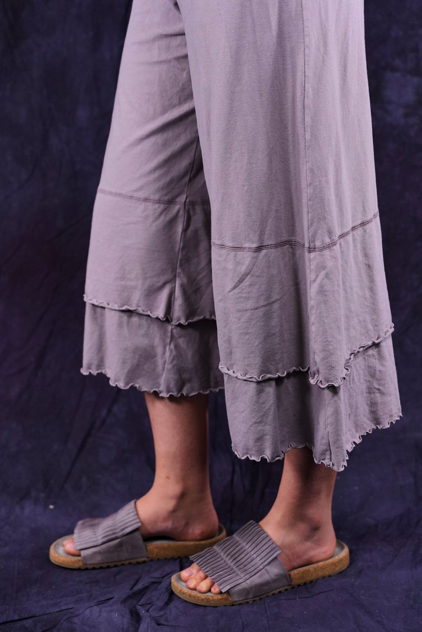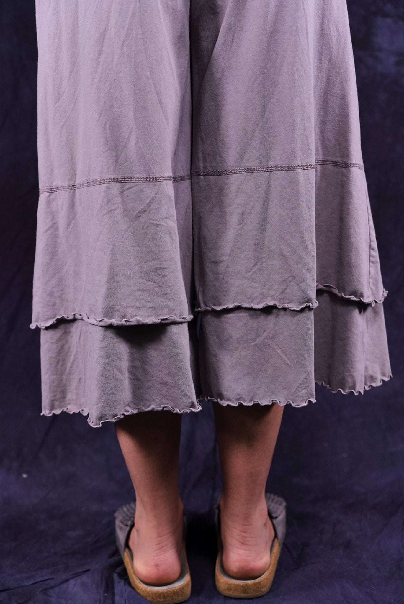 Our favorite Petaloon pants, these have extra wide legs and double layers at the bottom which are trimmed in a feminine lettuce-edge. Made from soft and stretchy organic cotton lycra. The can be layered over and styled many ways. They are a great piece to mix into your wardrobe.