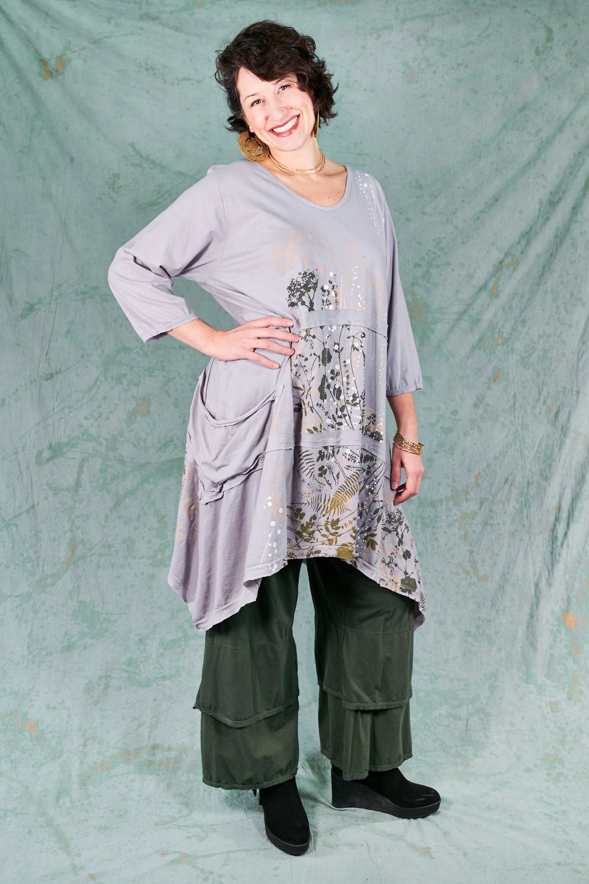 This wide legged design is a Blue Fish favorite that complements our longer tunics perfectly. Tiers are edged with straight hem that adds dimension & flounce (they look so cool when you walk).