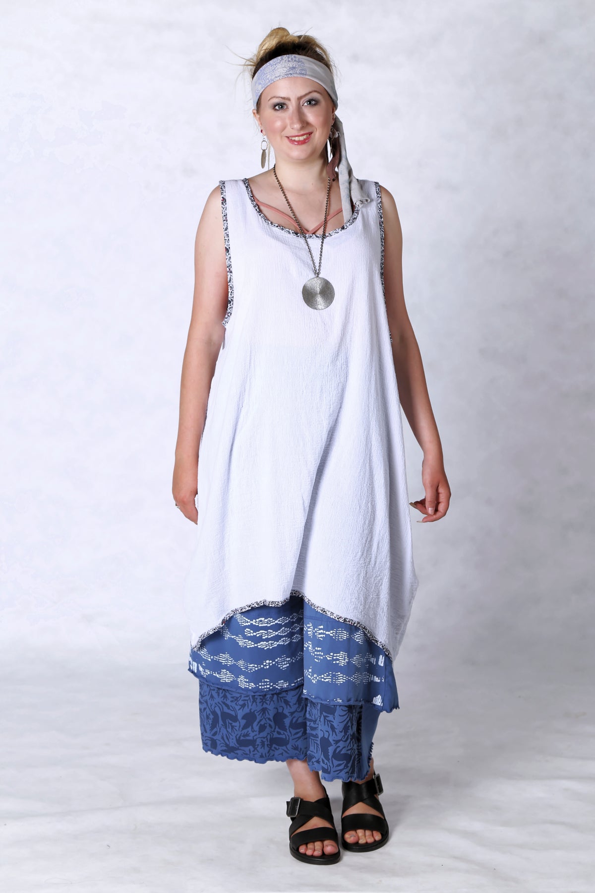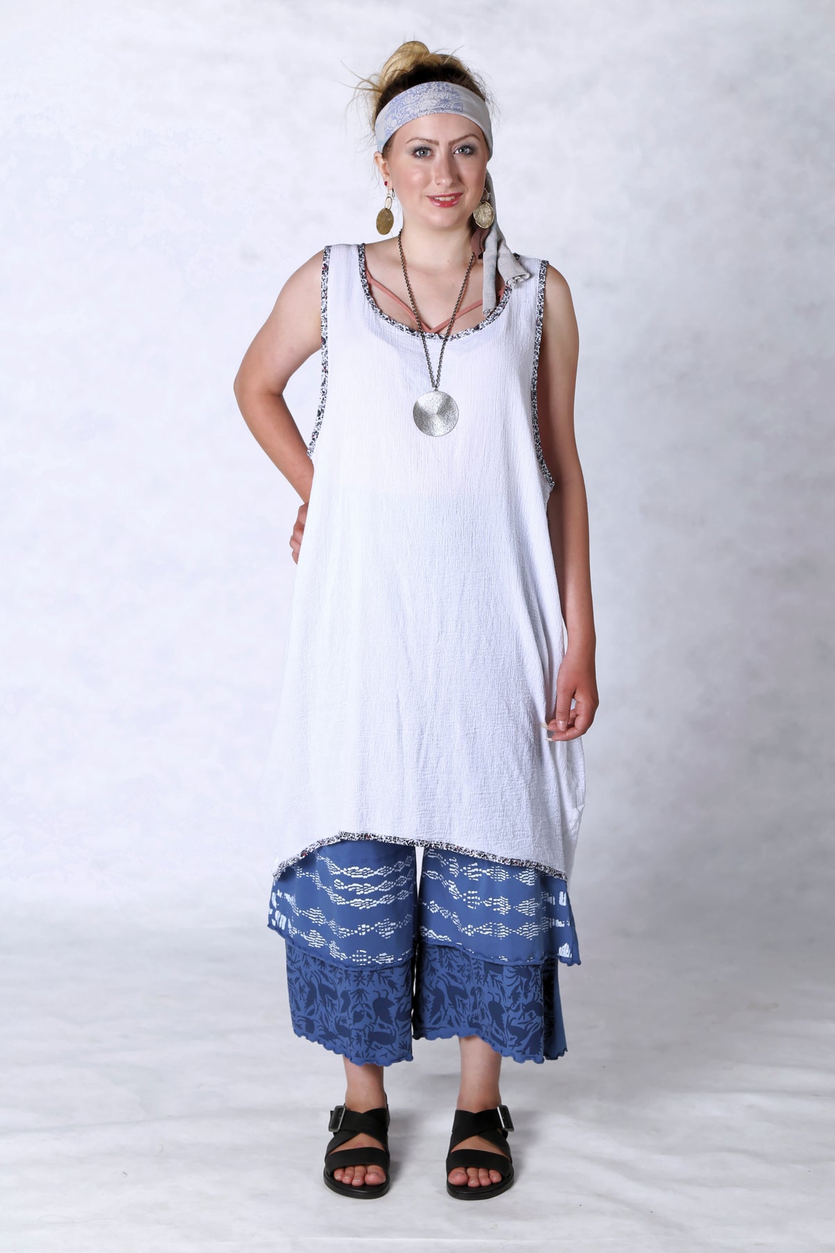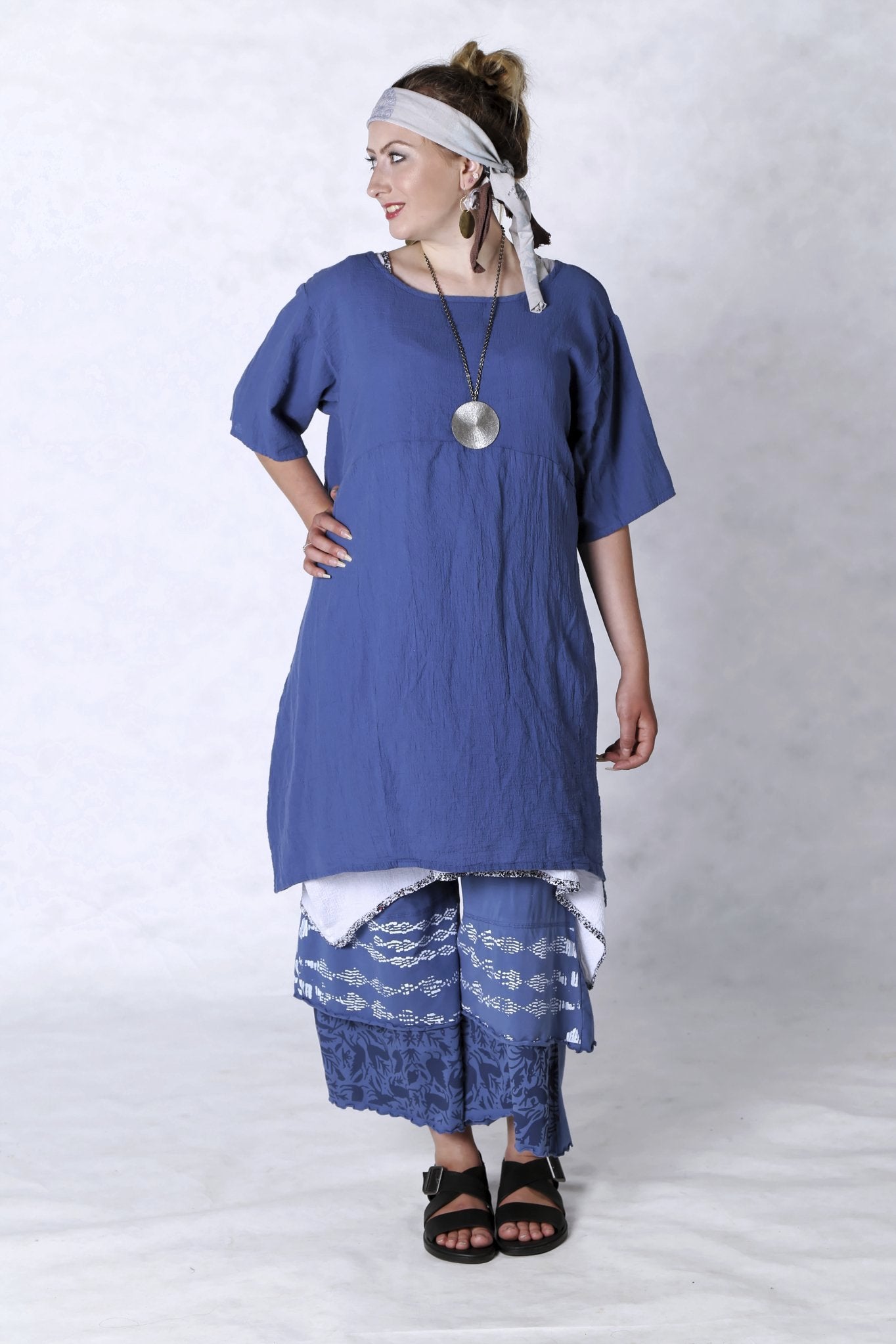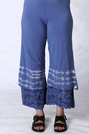 Jen's favorite pants! A wide-legged, petaled tier pant made in organic cotton spandex (the same fabric as our leggings, just a touch of stretch, 92% organic cotton, 8% spandex for comfort). Very comfortable and cute under any of our longer tunics/shorter dresses. Keep in mind, if you have hips (etc.) the length will be slightly shorter. These pants are so comfortable, you'll want to wear them all the time (like Jen).