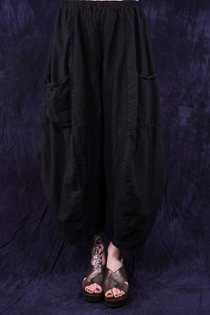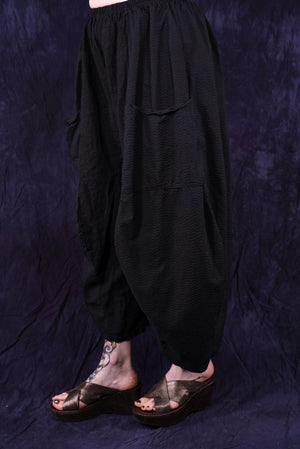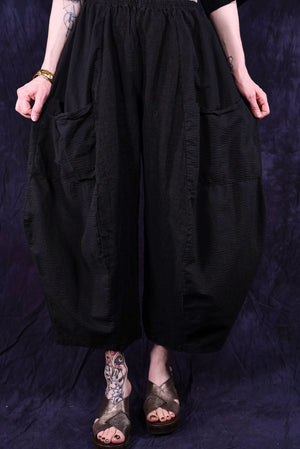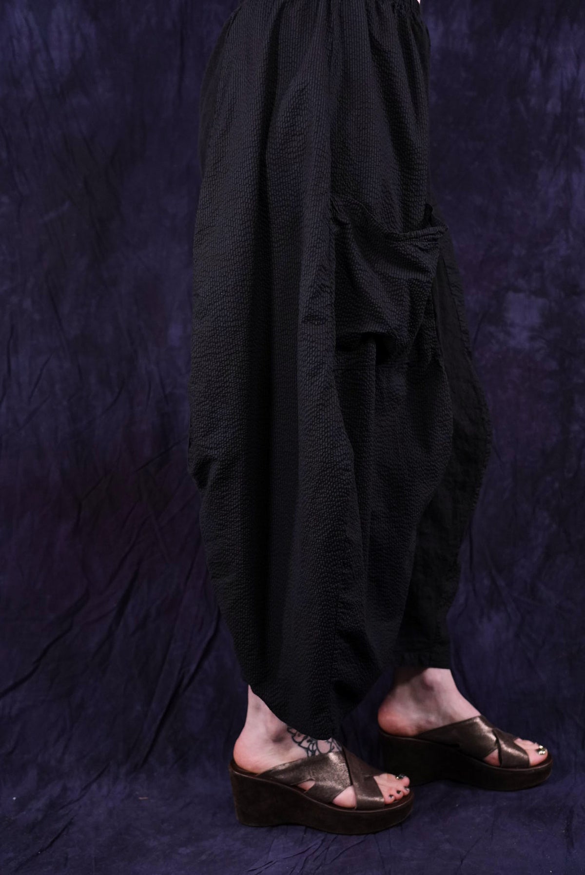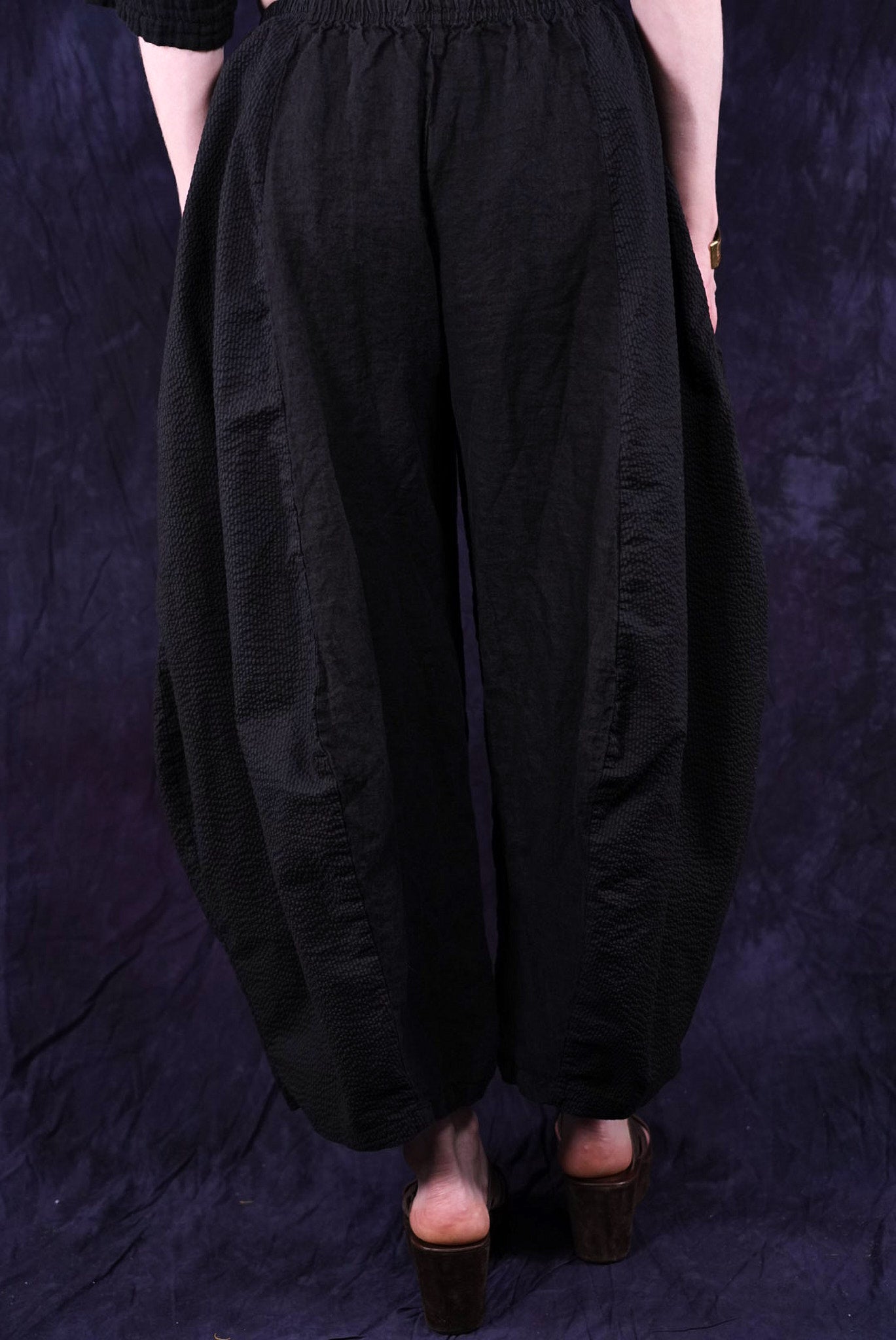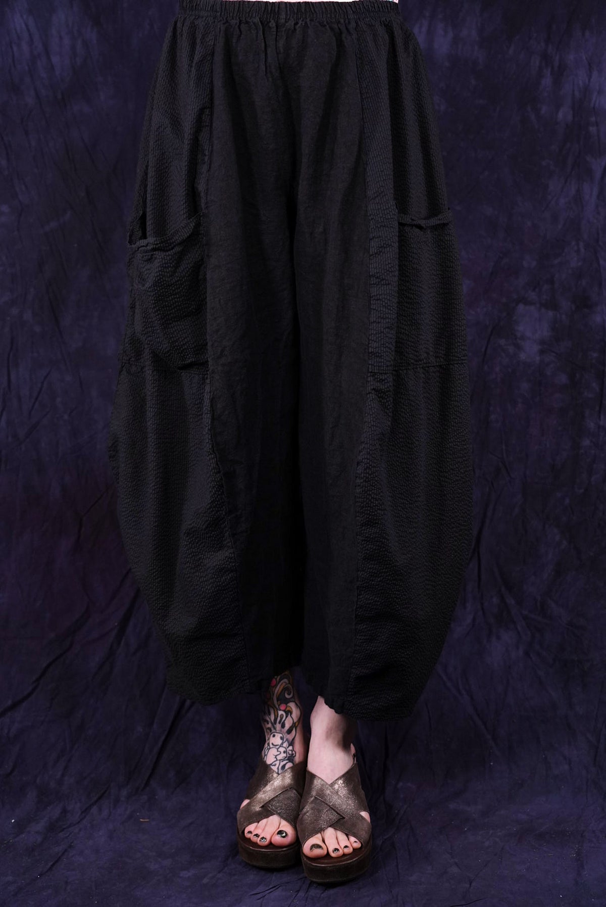 A FAVORITE STYLE - last of the full length Mojo Pants in Linen/ Seersucker, One of our best-selling pants for all occasions, this lightweight full-length version features an extra wide leg and seaming detail that creates a three-dimensional, almost geometric billow in the leg.