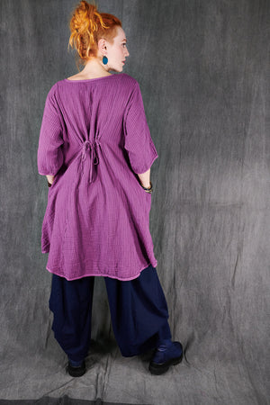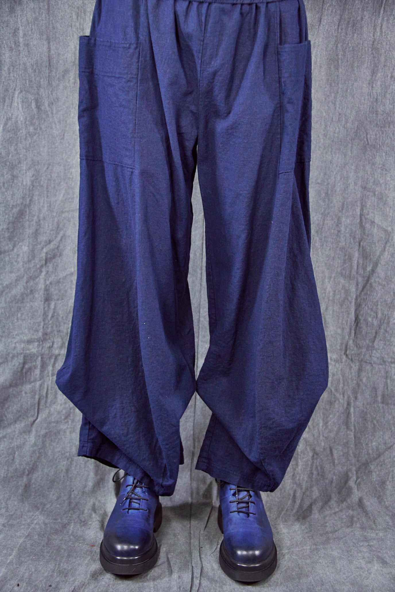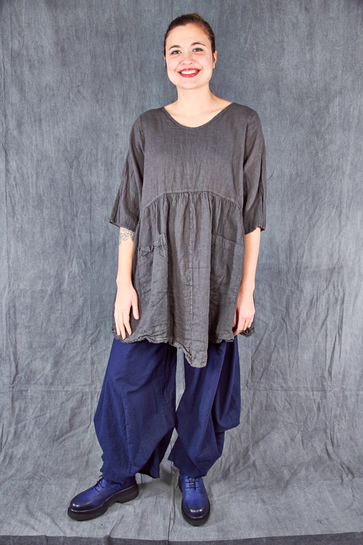 A longer linen pant with a drape and billow of pure luxury! The secret is in the ties located inside the leg hem. You can leave the ties undone and have long full pants, or tie them up and create the billowing bell at each leg. This feature also allows you to adjust the length up to six inches as needed. If you are taller and like a long pant these are the ones for you! Waist runs larger than usual on these by a couple of inches. Easy to fold the waist to take 2 off length.