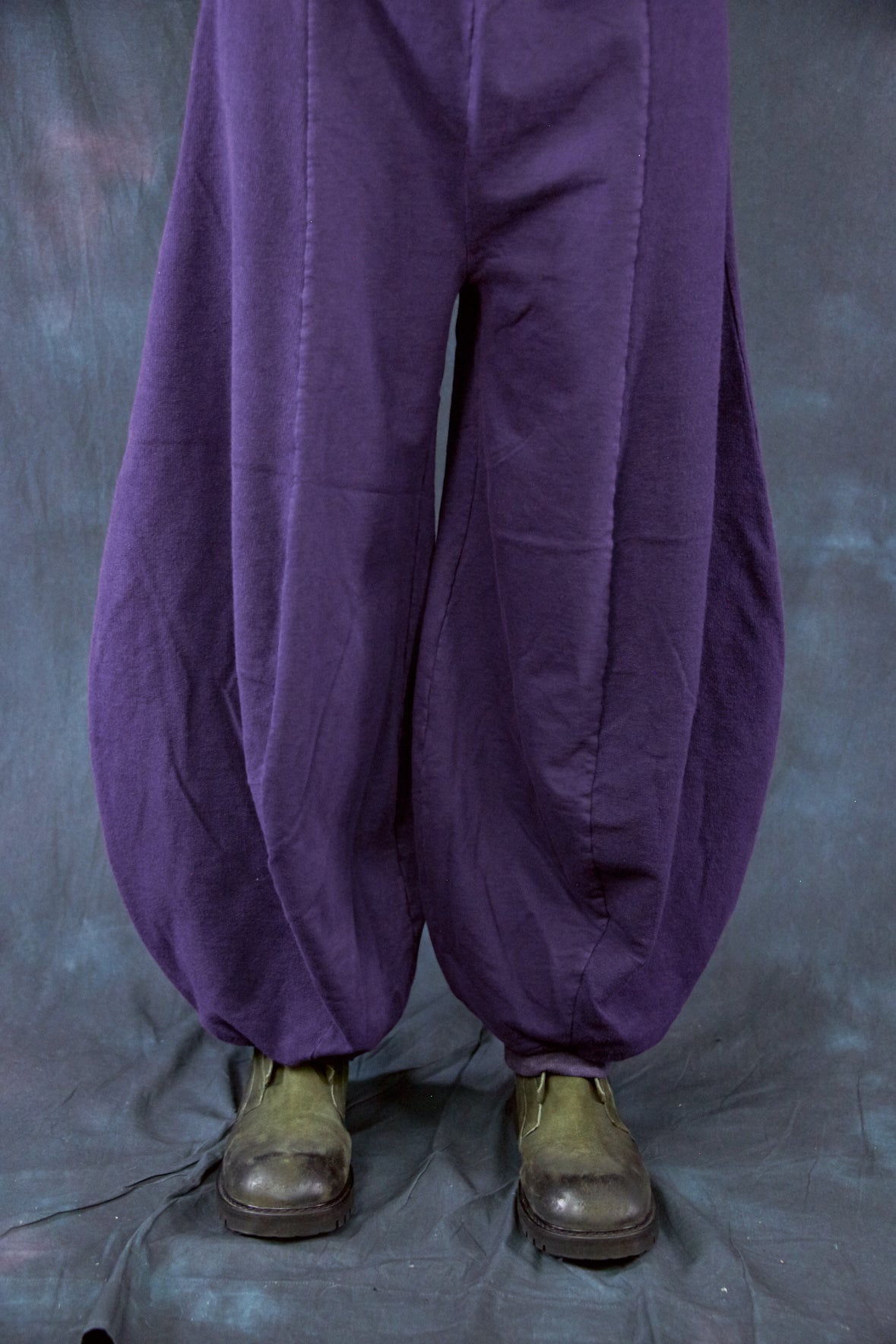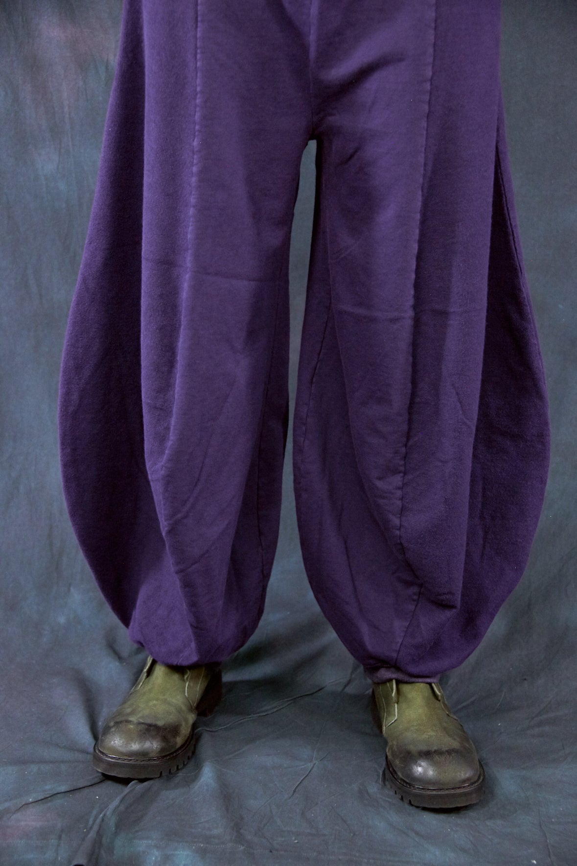 Curved seaming creates an interesting silhouette. 2" waistband, rib cuffs. This thick french terry pant will be an instant favorite! Rolled up these have a completely different look.