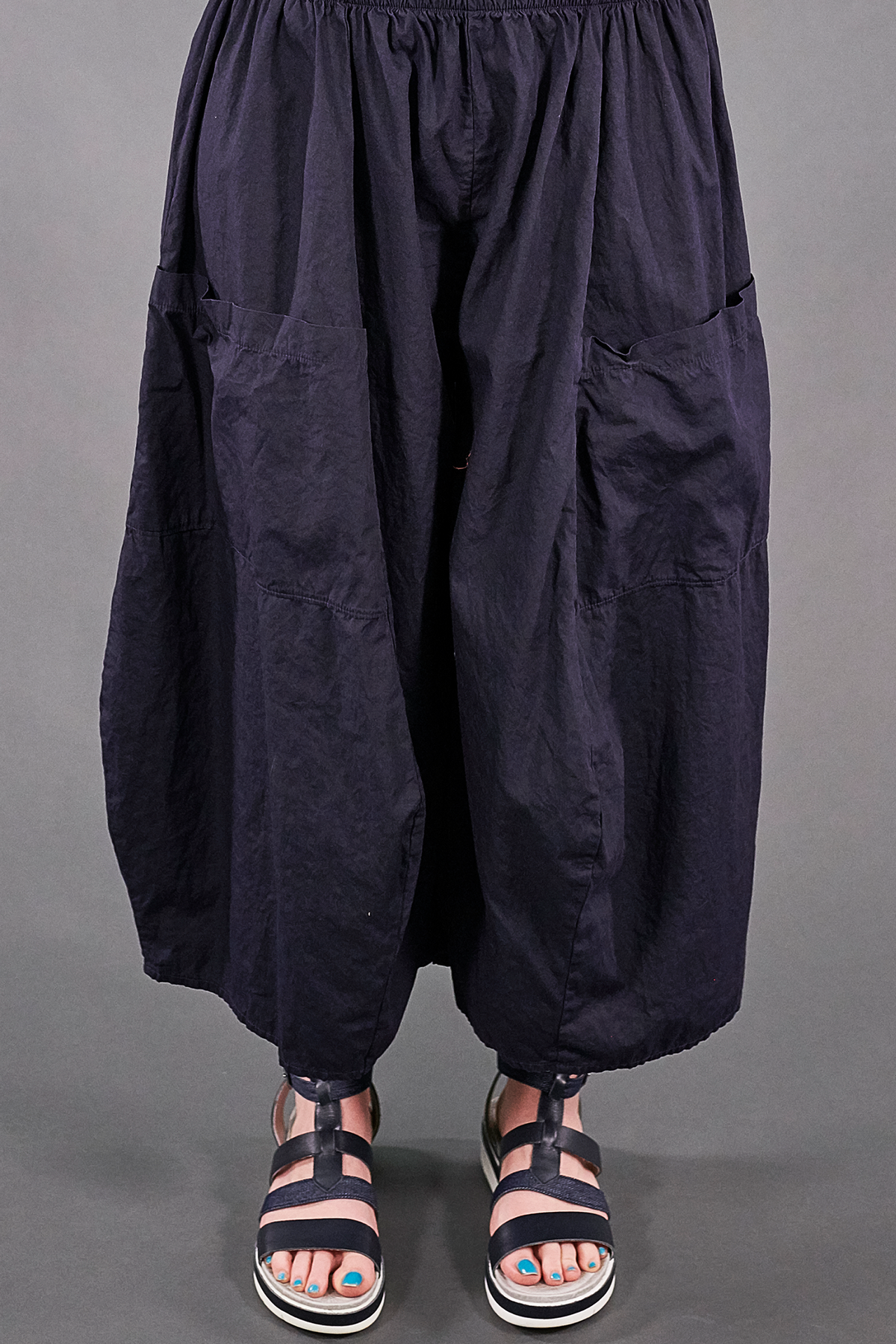 This lightweight capri is full of style, featuring roomy pockets and an extra wide leg with seaming detail that creates a three-dimensional, almost geometric billow in the leg. Wear them with a tee, or try with a tunic to give just a peek of pattern.