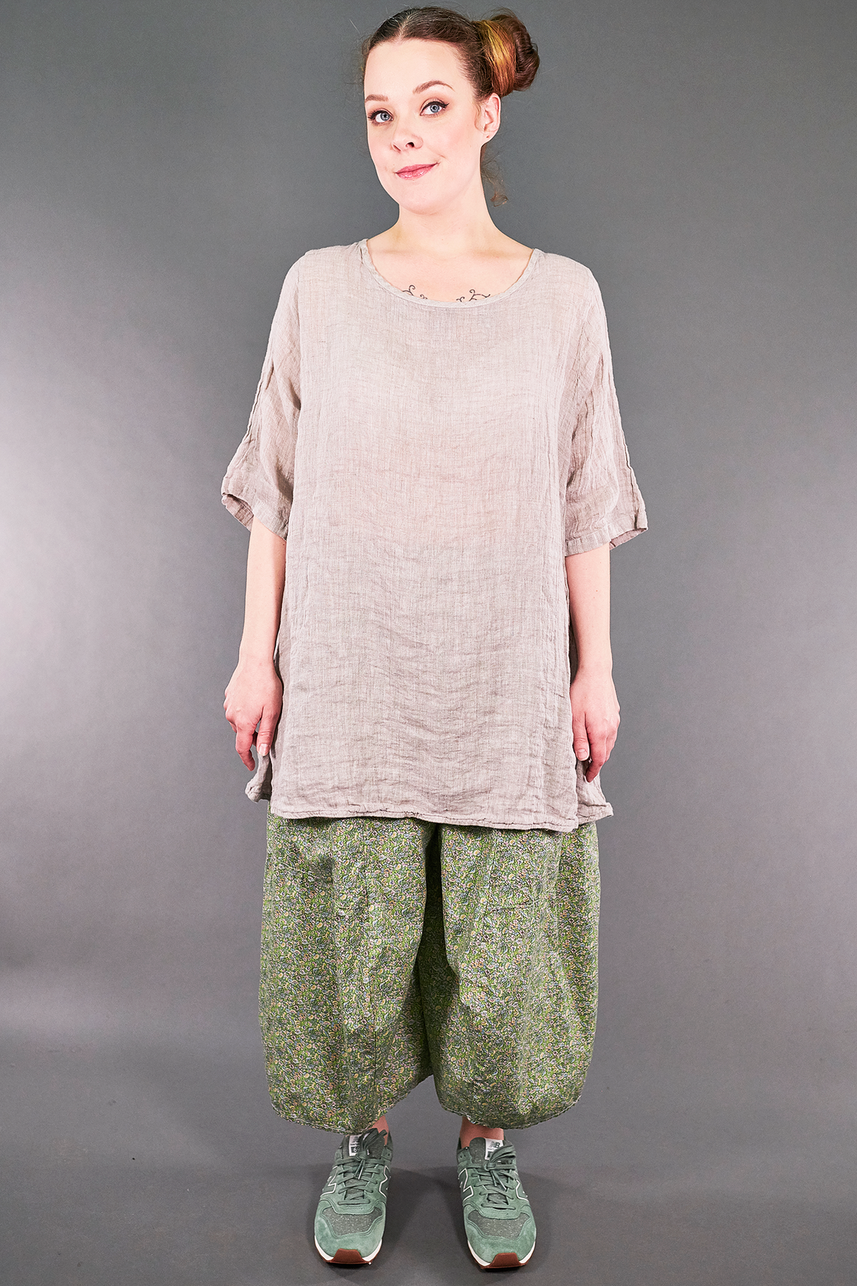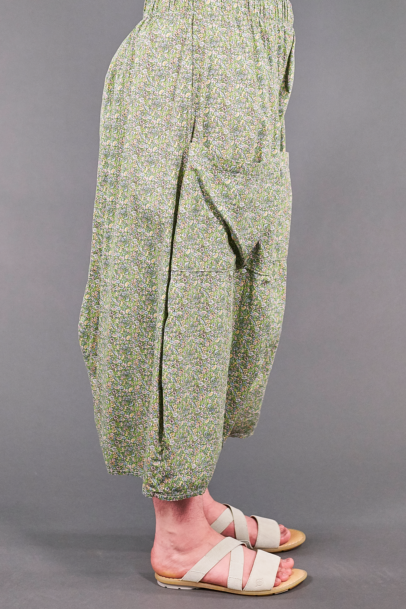This lightweight capri is full of style, featuring roomy pockets and an extra wide leg with seaming detail that creates a three-dimensional, almost geometric billow in the leg. Wear them with a tee, or try with a tunic to give just a peek of pattern.
