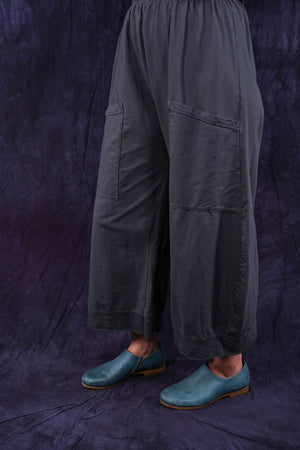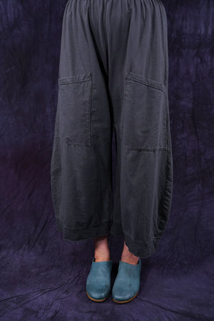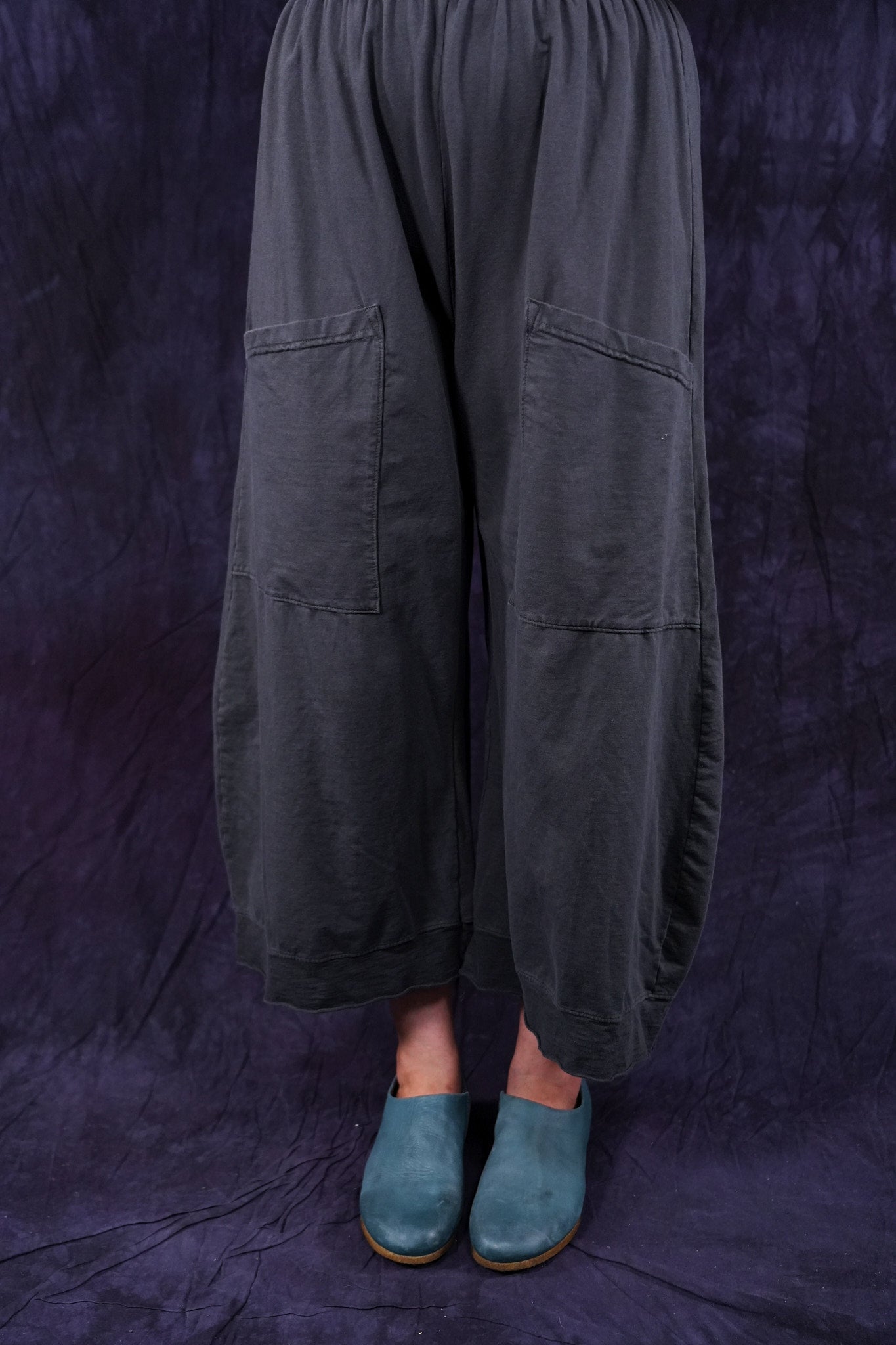 One of our favorite pants in a heavier weight organic cotton spandex fine french terry knit. They will hold their shape and flatter. The pockets are nice and generous and the style will take you from season to season. Wear with the #1618 Seedling Top or one of the #1255 Art Tees.