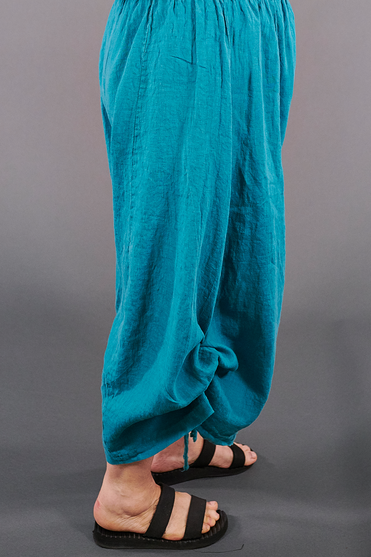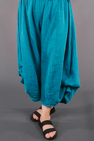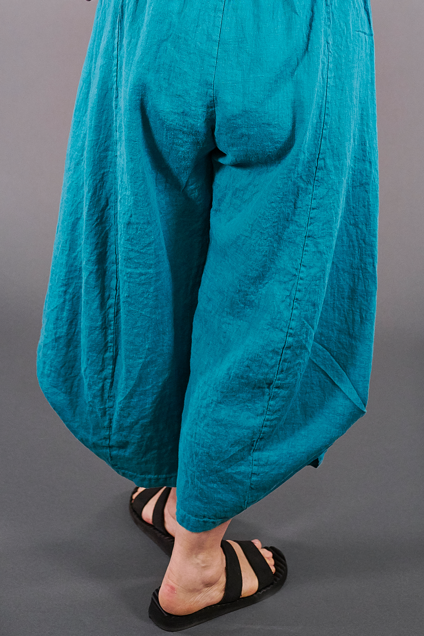 A linen pant with a drape and billow of pure luxury! We made this one in a slightly cropped length that will fit many, many heights.