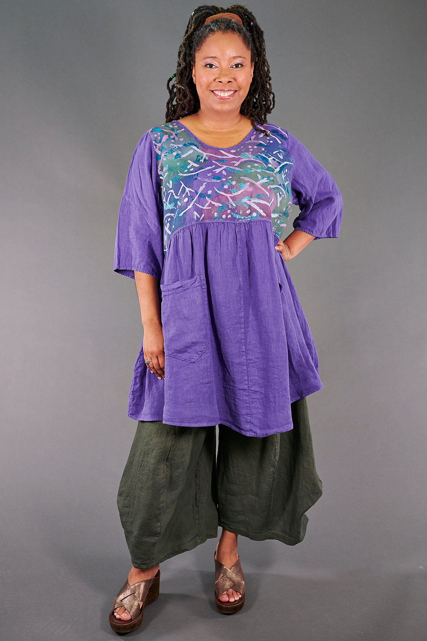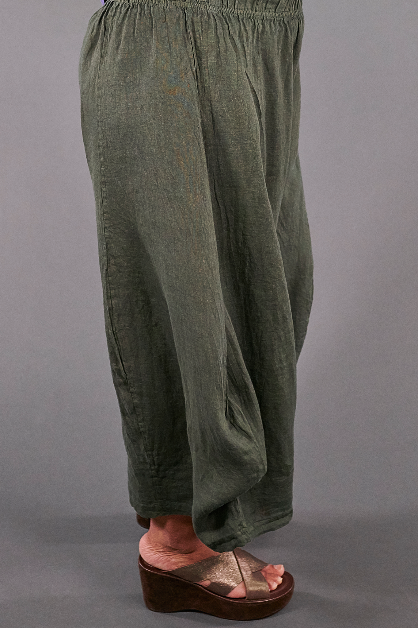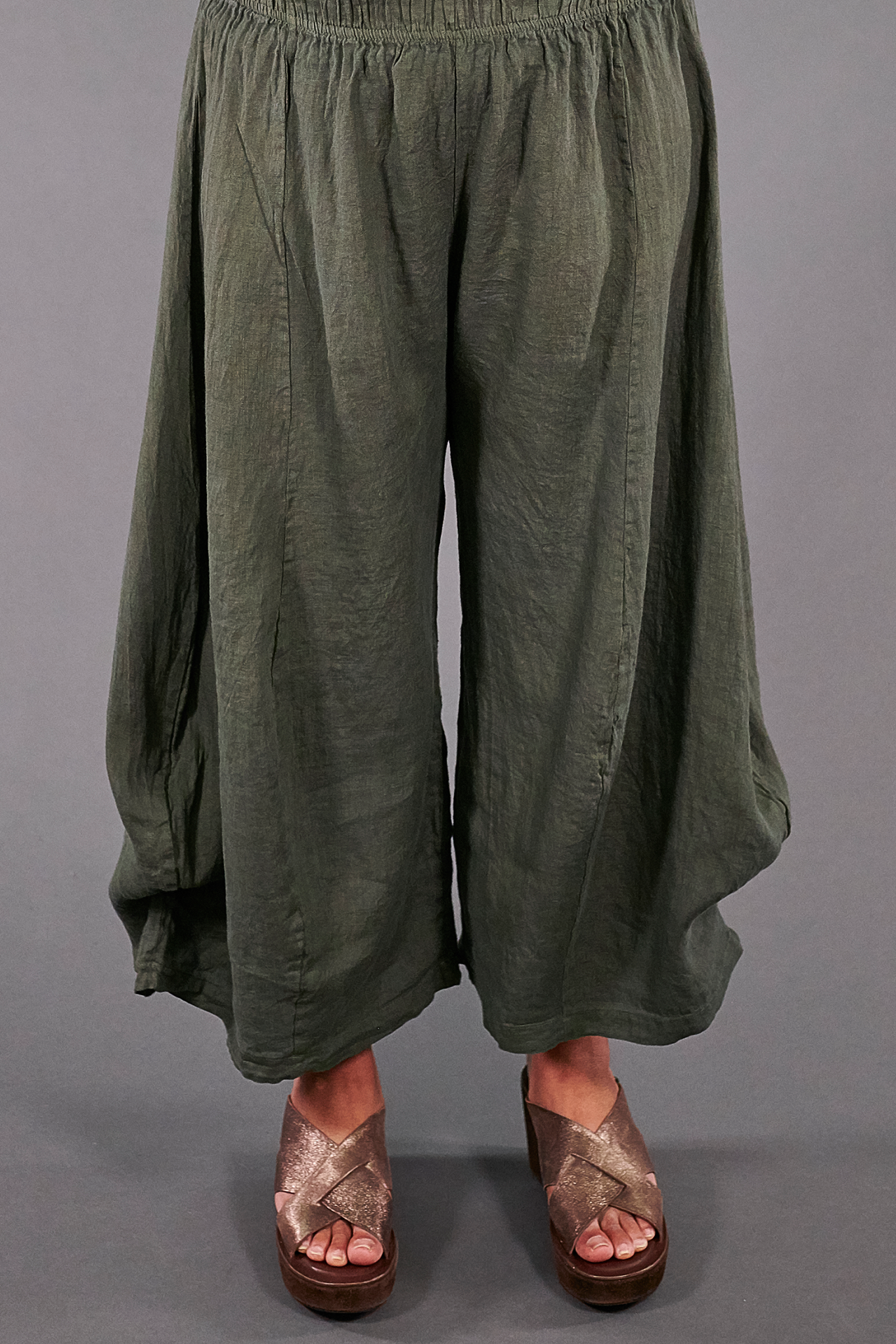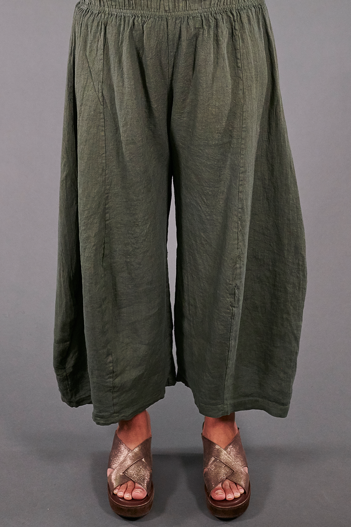 A linen pant with a drape and billow of pure luxury! We made this one in a slightly cropped length that will fit many, many heights.
