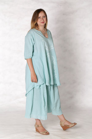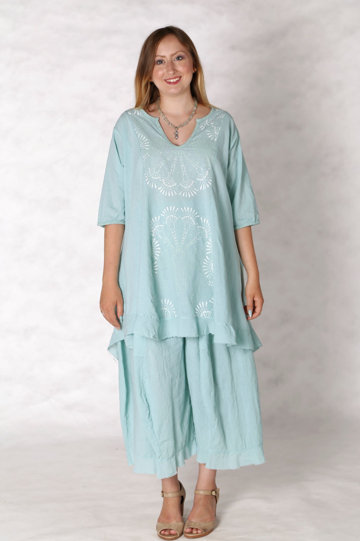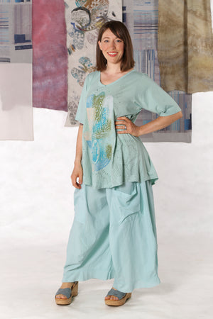 - Pair with the flounced bliss tunic for the coolest ensemble of the season We recommend cold hand washing and line drying. Should you choose to use a machine, please use cold water and the gentle cycle with a delicate laundry liquid. . Always line dry ( however: a short 10 min tumble on low, not mixed with other fabrics will help get wrinkles out) to ensure long life for your blue fish!