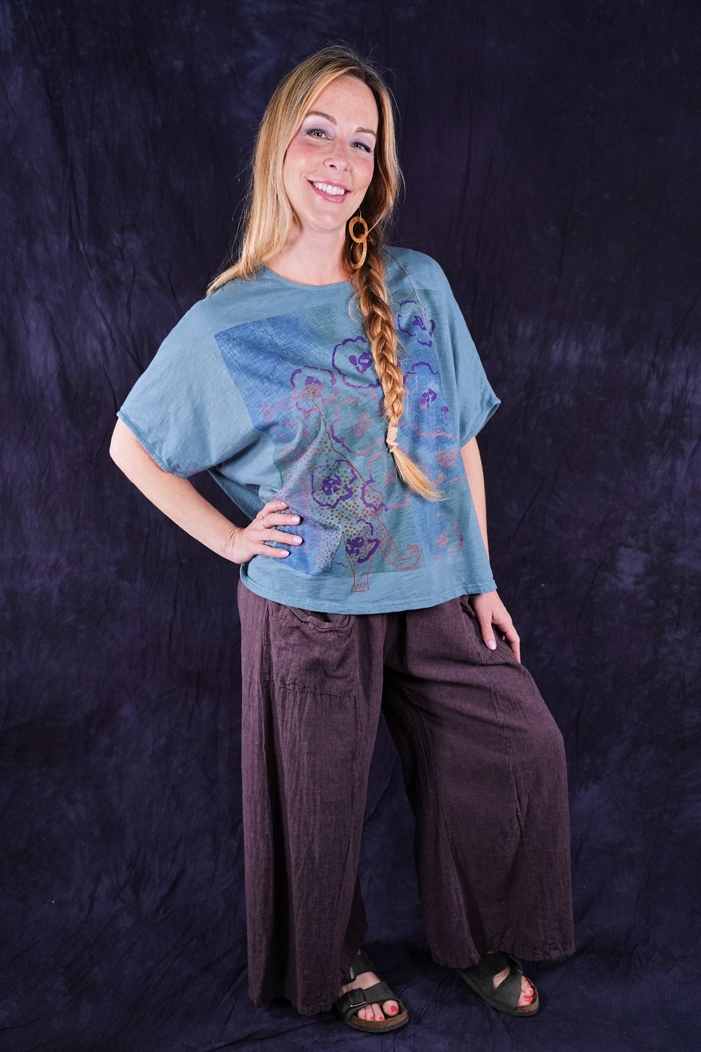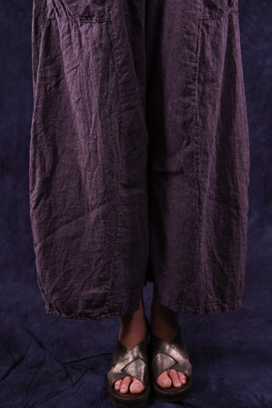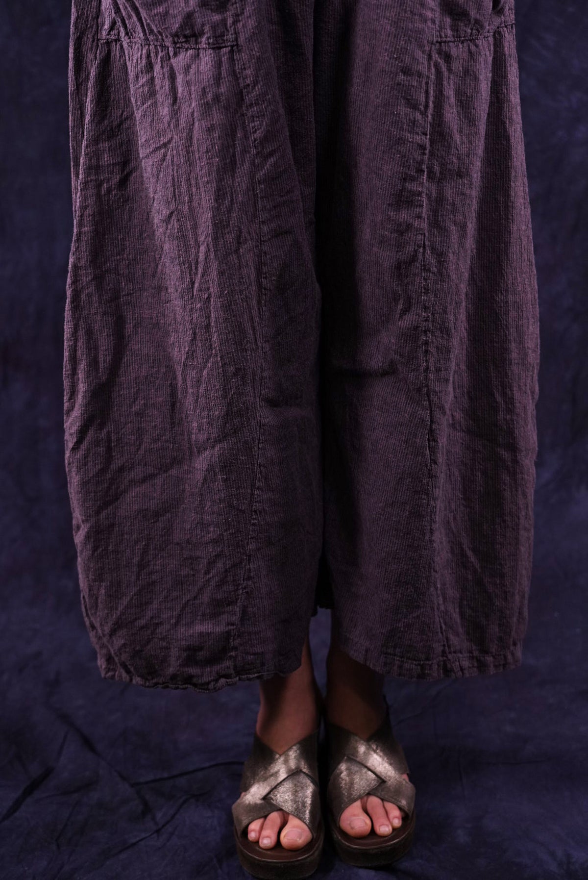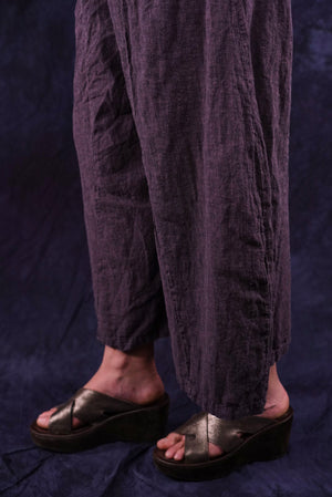 Striped hemp/cotton woven cotton Klee pant, soft and light -feels like linen.  These pants look great with everything and have 2 excellent pockets and a wider elastic waistband that can be turned once to adjust length. They can go with tunics, tops and under dresses. Hemp is a highly sustainable fabric.