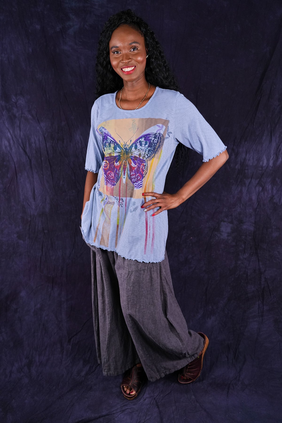 Striped hemp/cotton woven cotton Klee pant, soft and light -feels like linen. These pants look great with everything and have 2 excellent pockets and a wider elastic waistband that can be turned once to adjust length. They can go with tunics, tops and under dresses. Hemp is a highly sustainable fabric.