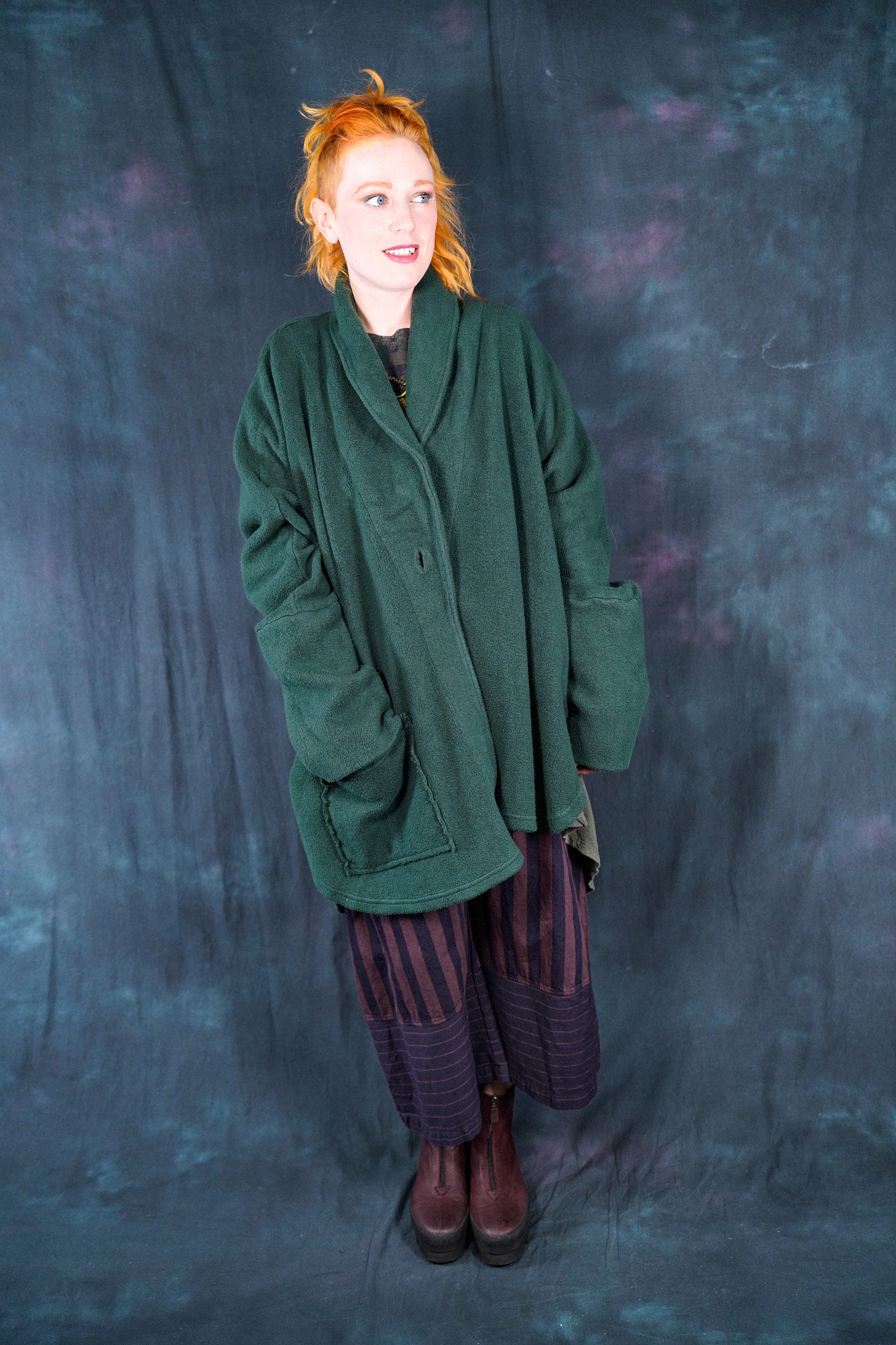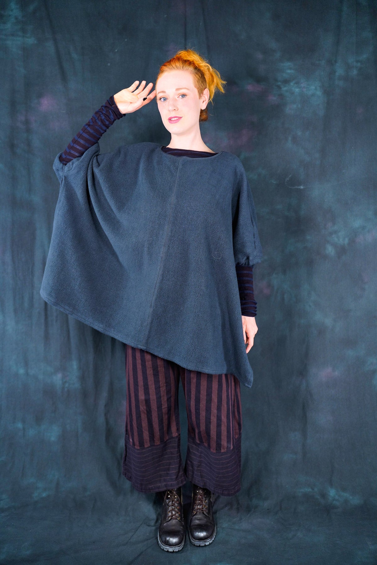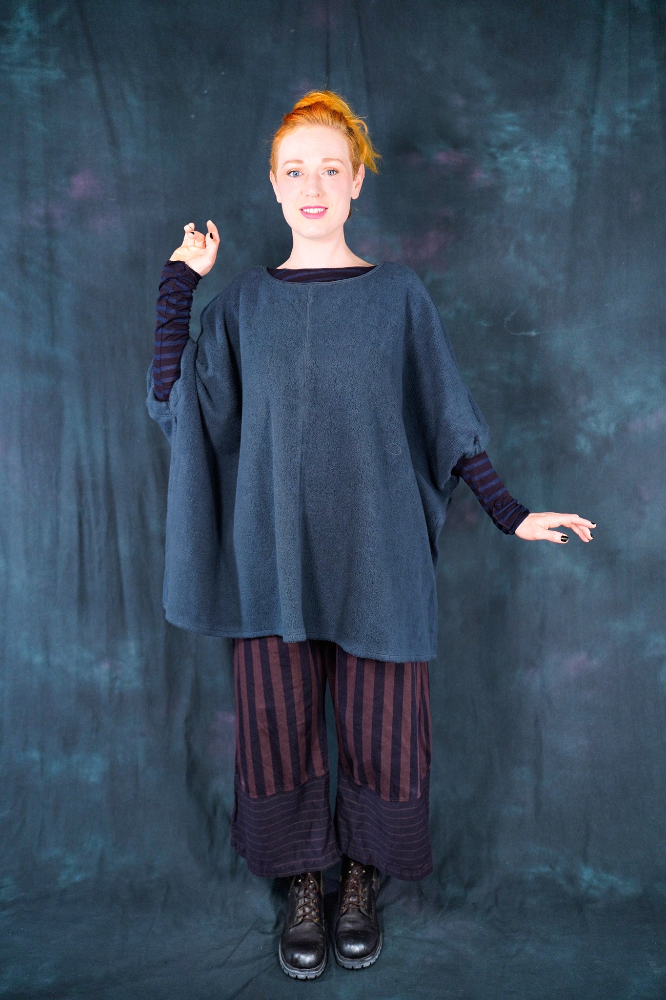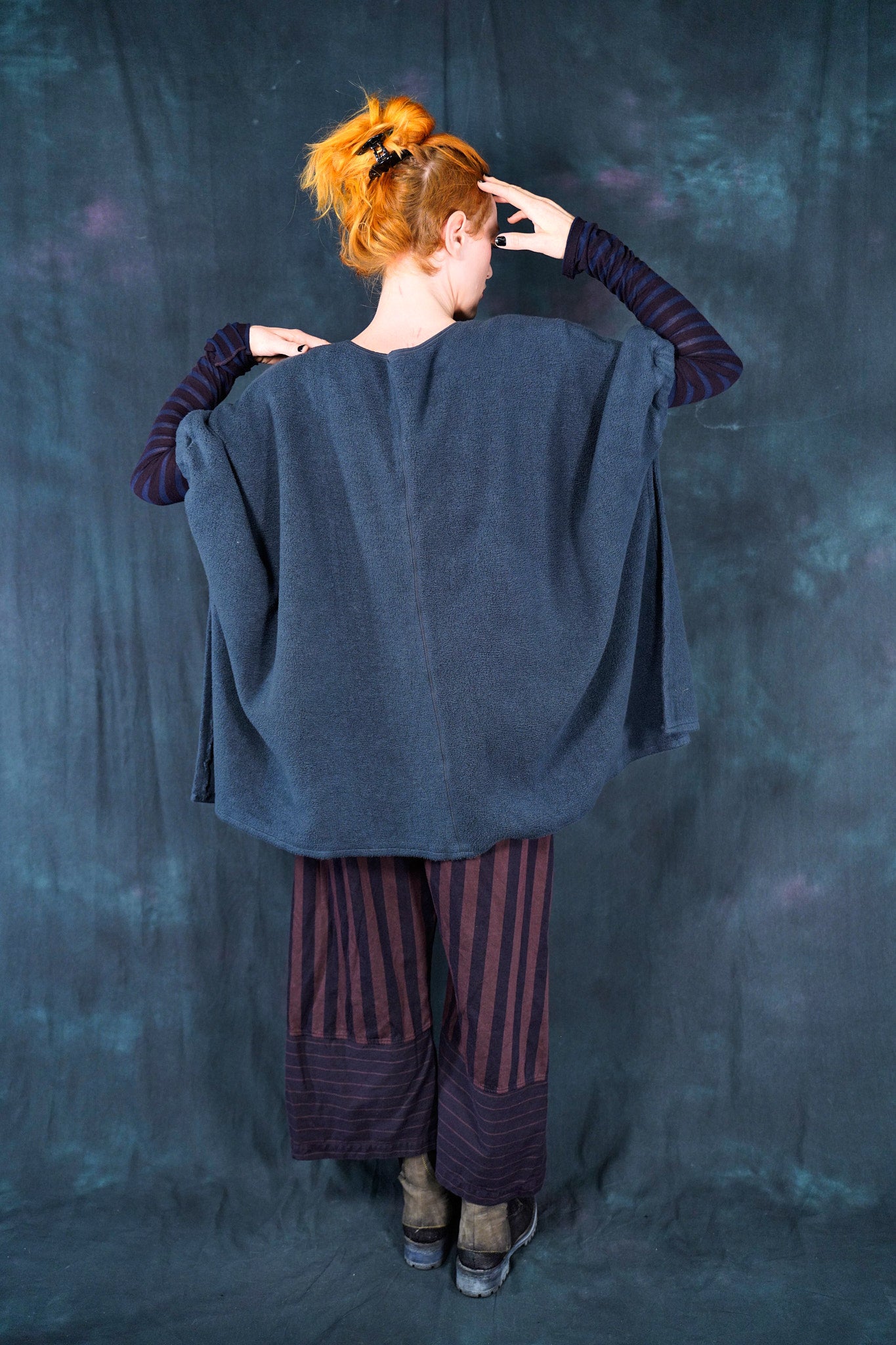There is a comfortable elastic waistband on these cotton denim over-dyed stripe pants. Once you put them on you will not want to take them off. They are super cool and fun to wear, without being too colorful.