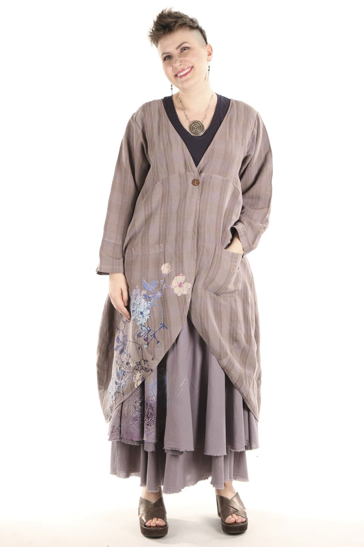 NOTE: This fabric exactly matches the fabric of the Tonal Antq. Tourmaline 1245 Organic Cotton Stretch Layer Top. It is tonal to the other Tonal Antq. Tourmaline color styles but does mix beautifully as we have included the tonality in the printing. ( FYI: This occurs because the fabrics are slightly different colors before we dye them, in this case organic cotton which is a natural creamy color, vs. the pale wheat color of the Rayon Linen plaid. It is no different than what we have been doing forever- various fabrics dye a bit differently).