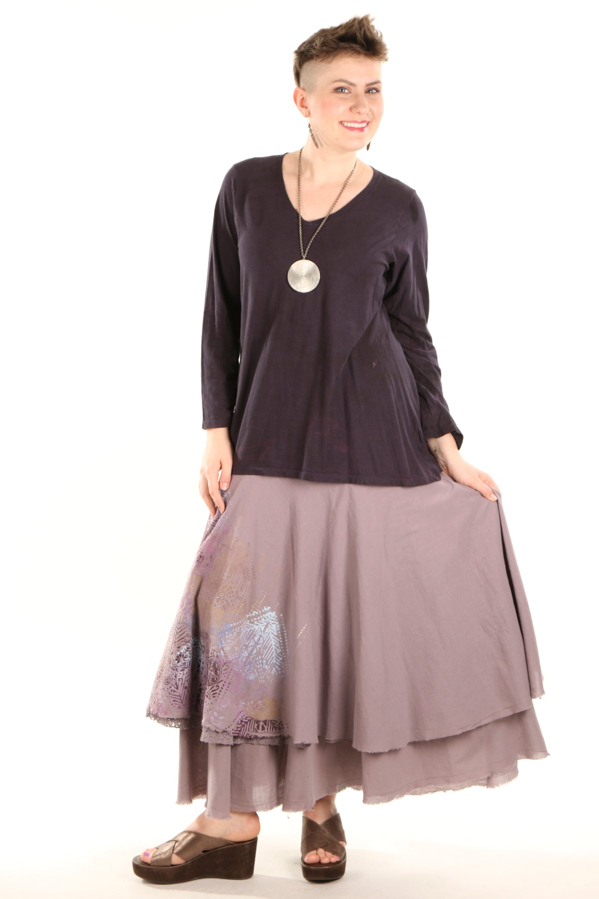 PLEASE NOTE: All of the tiers are purposefully unfinished and raw edged- cut not sewn- making them slightly and subtly frayed in a modern and interesting texture. The "fringe" will deepen a little bit with washing, but will stop at a certain point as we have put a stay stitch on the hemline. Whenever I wear my 'fringed' edge garments, i get a lot of positive comments!