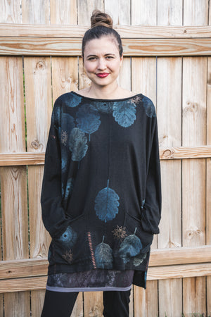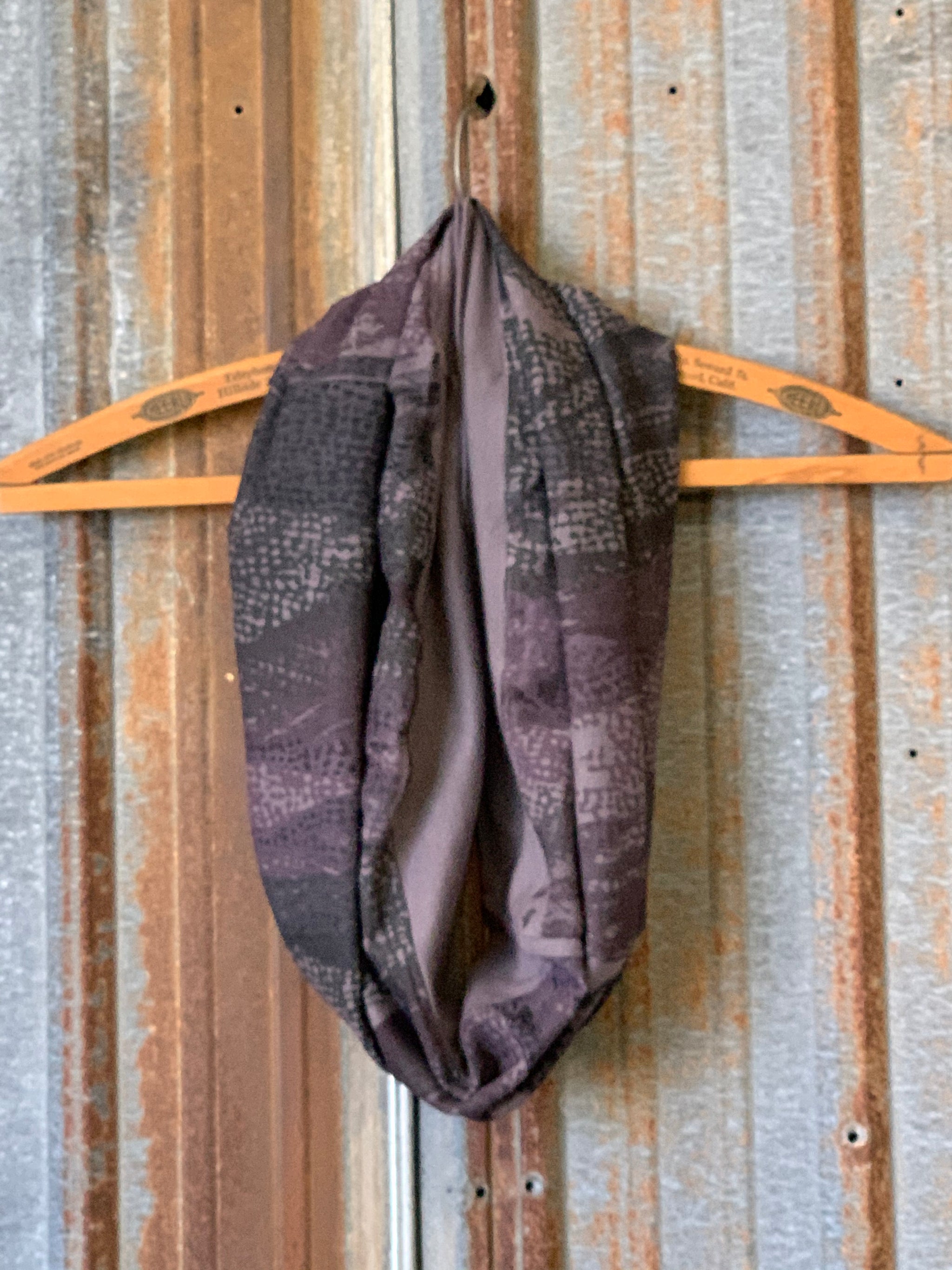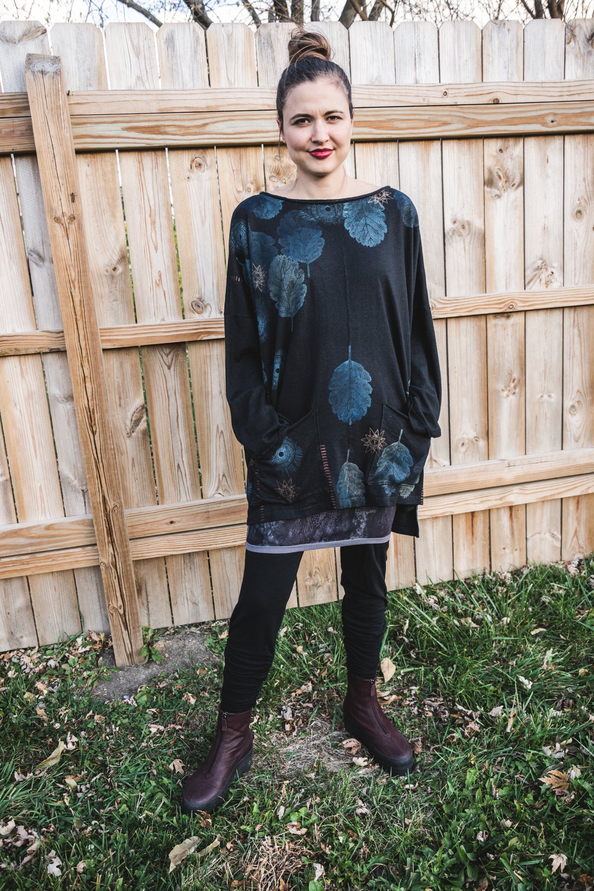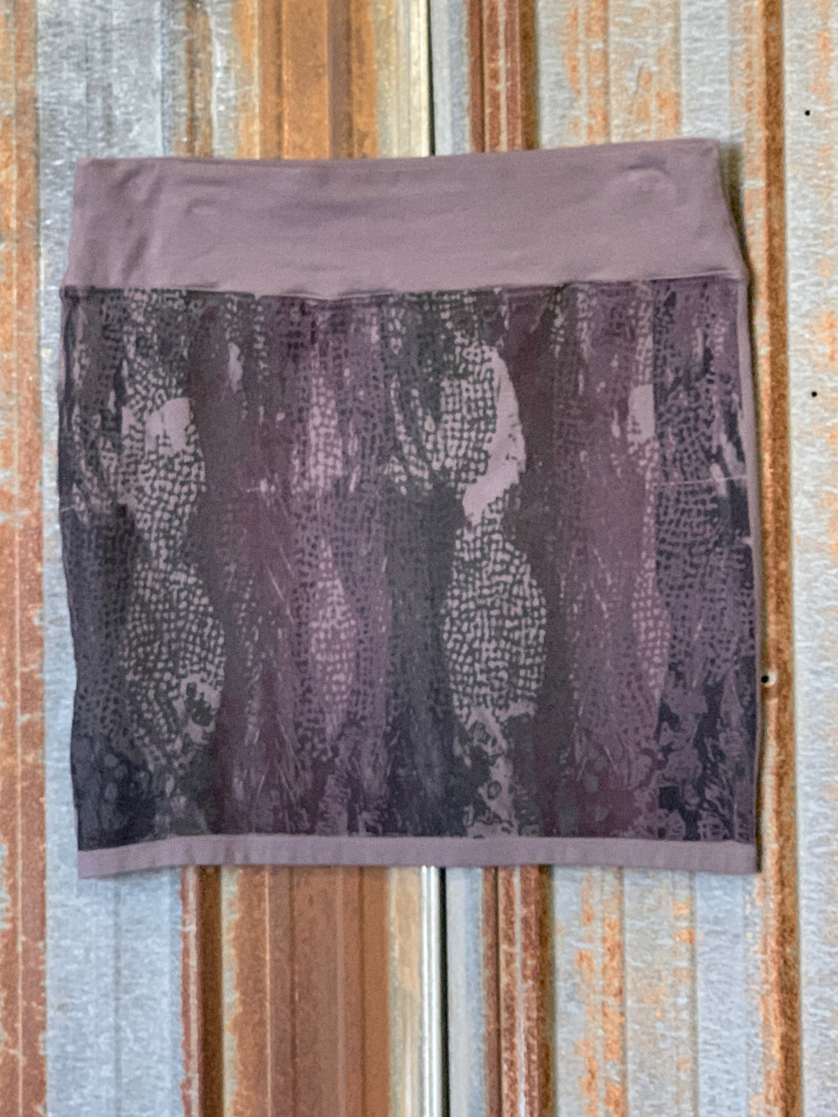 Wonderful layering skirt or cowl for splash of color or subtle contour. This fitted (and very stretchy) layering skirt is perfect over the #3295 Branch Pants or add a layer under your favorite tunic. Versatile and beautifully printed on both front and back. Stretches far beyond the sizing chart dimensions.