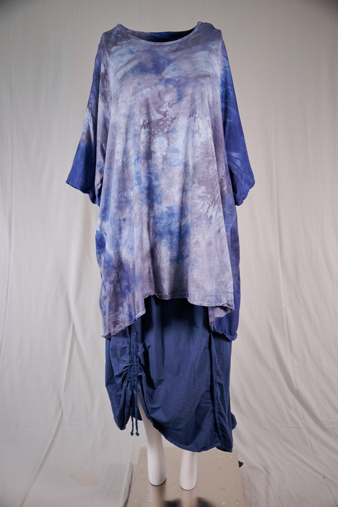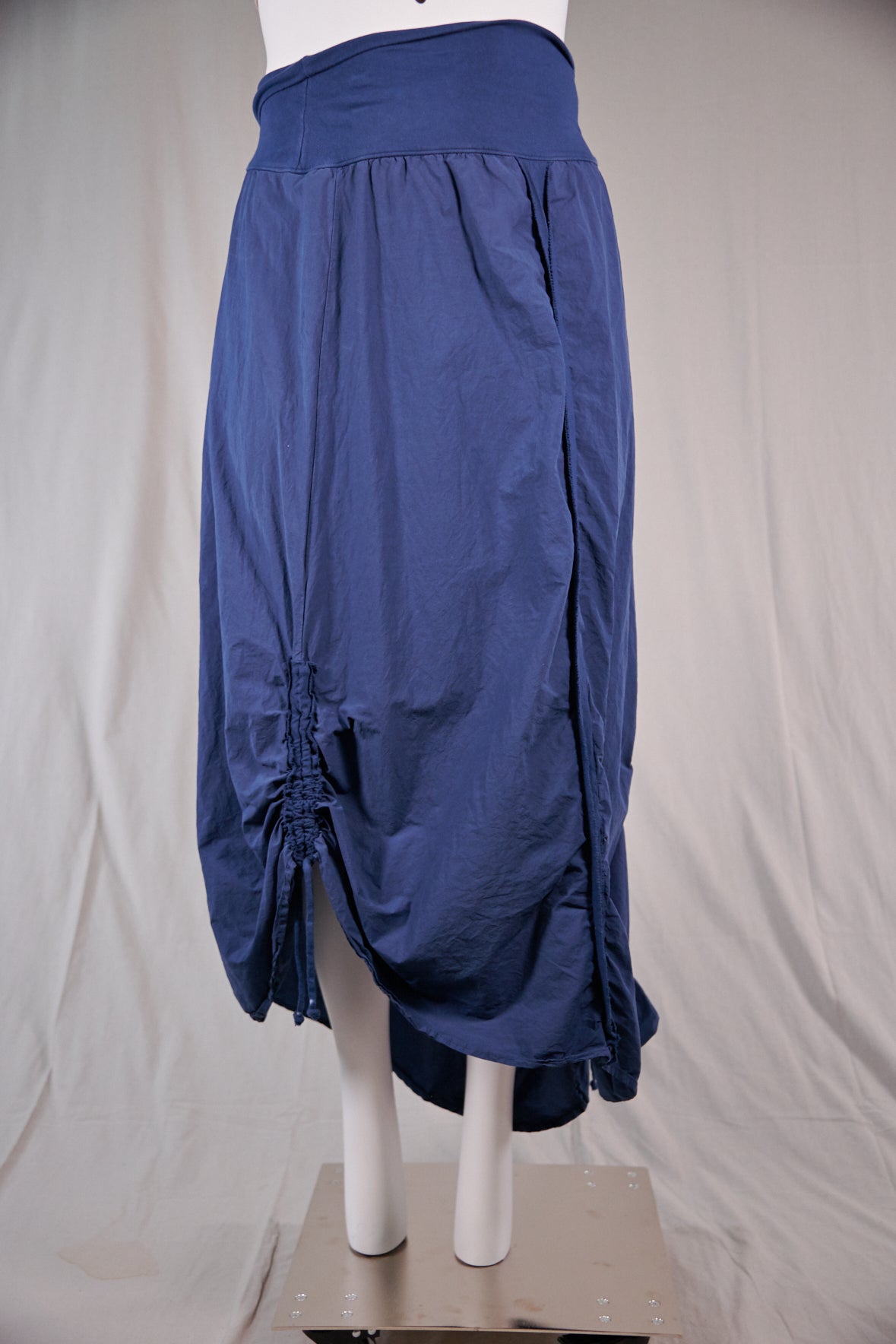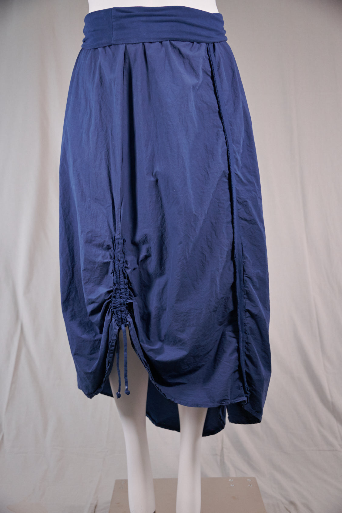 Foldover waist is comfortable & allows for height adjustment. Two ties allow for adjustable ruching--unfurl them to wear it long, or tie them up to create a draped effect. Turn it around & wear it sideways... pull it up higher so it appears short... This is THE skirt for adventurous dressers. Don't be afraid to get in there and create! Twist it, turn it, fold it... the sky is the limit.