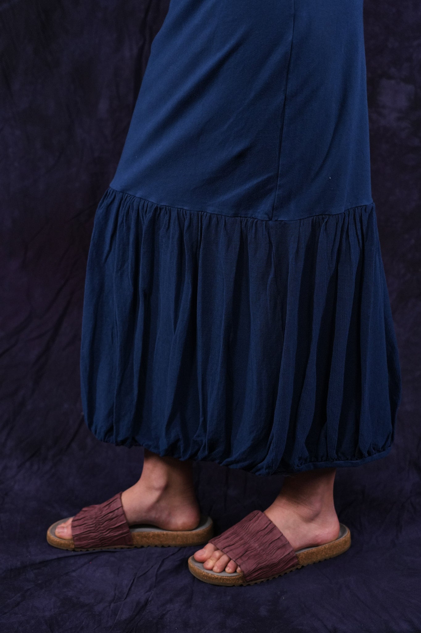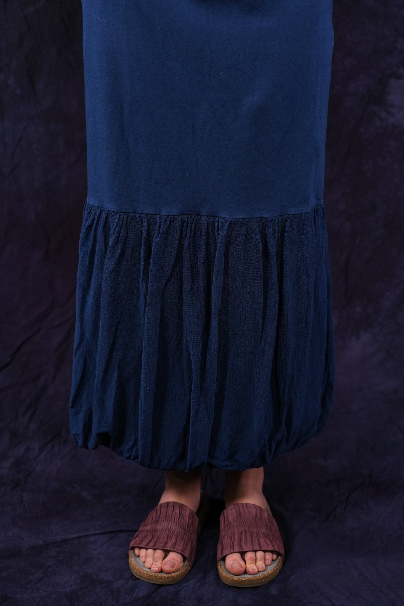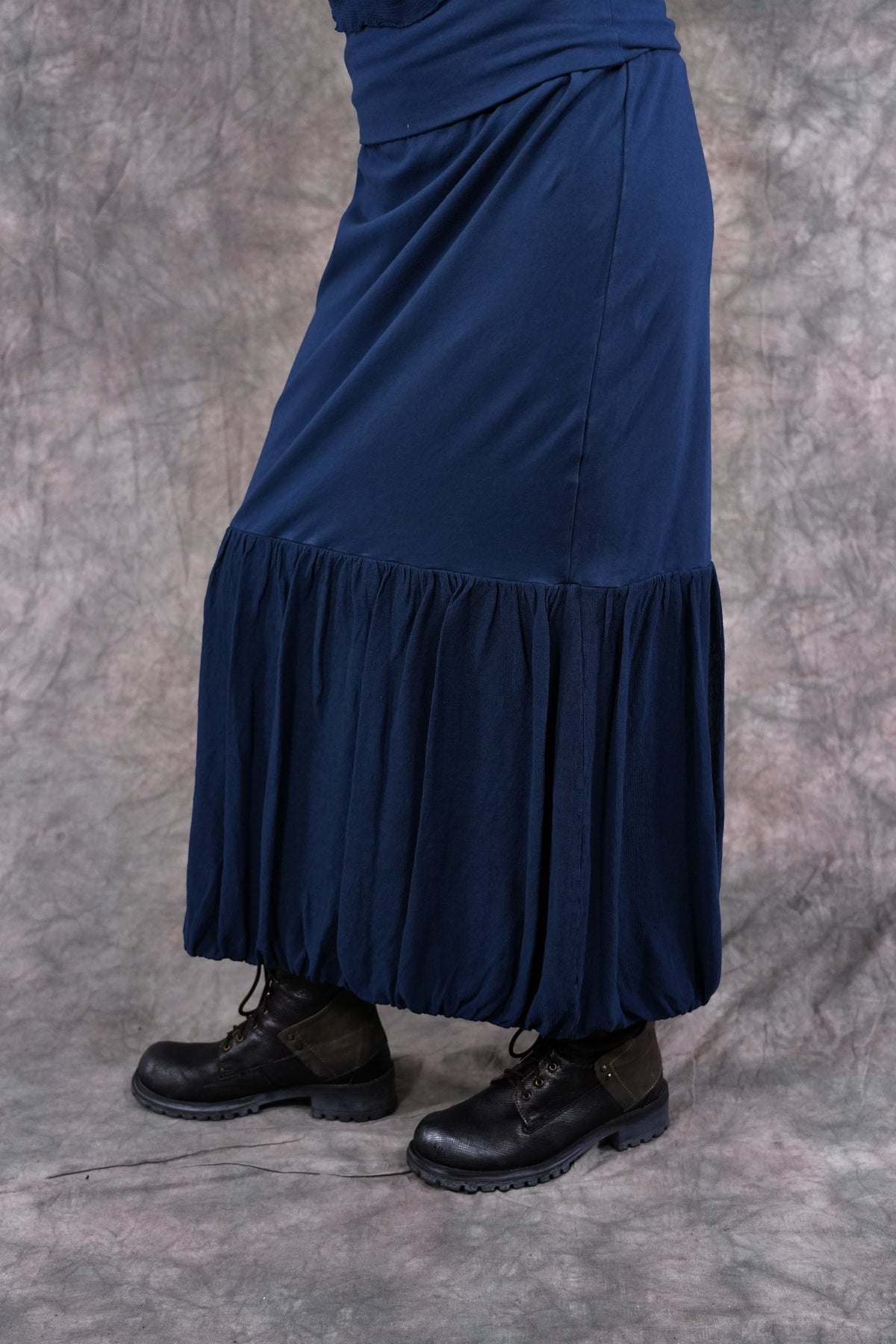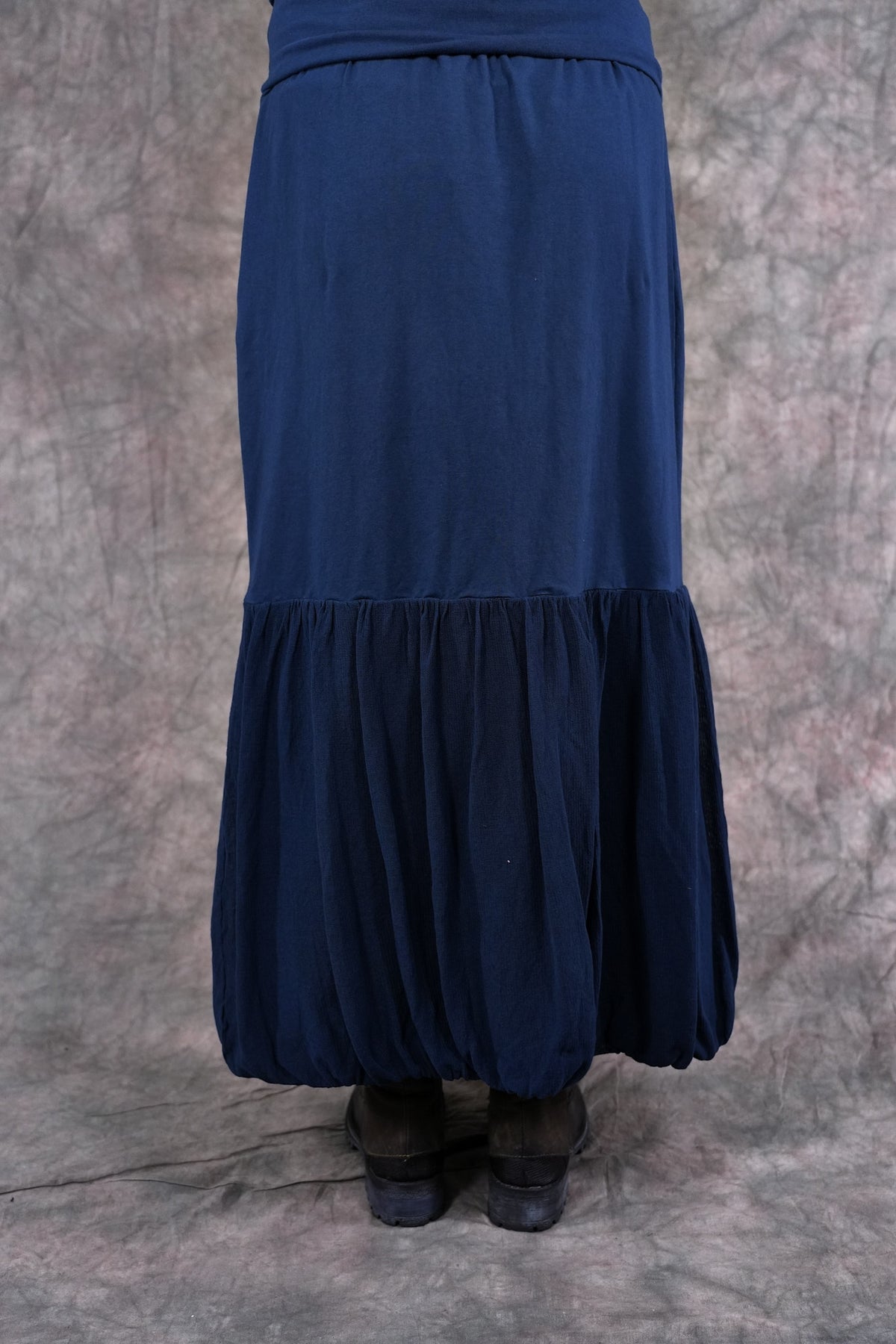 This skirt is a fabulous layering piece that will add some drama to your look with a gorgeous layered, unique cotton mesh bubble skirt. The skirt is in stretch cotton/lycra with a 4 inch fold over cotton/lycra waist. Wonderful layered under dresses, tunics and other skirts to create your individual style. 38 inches in length.