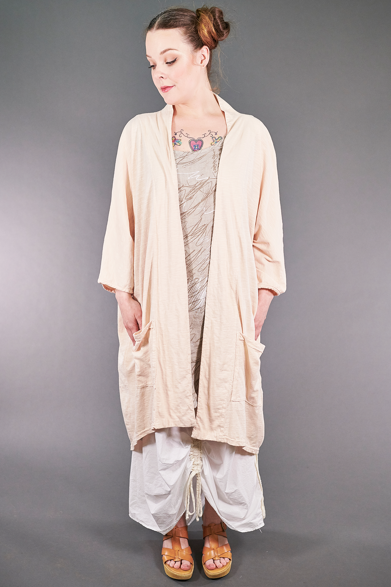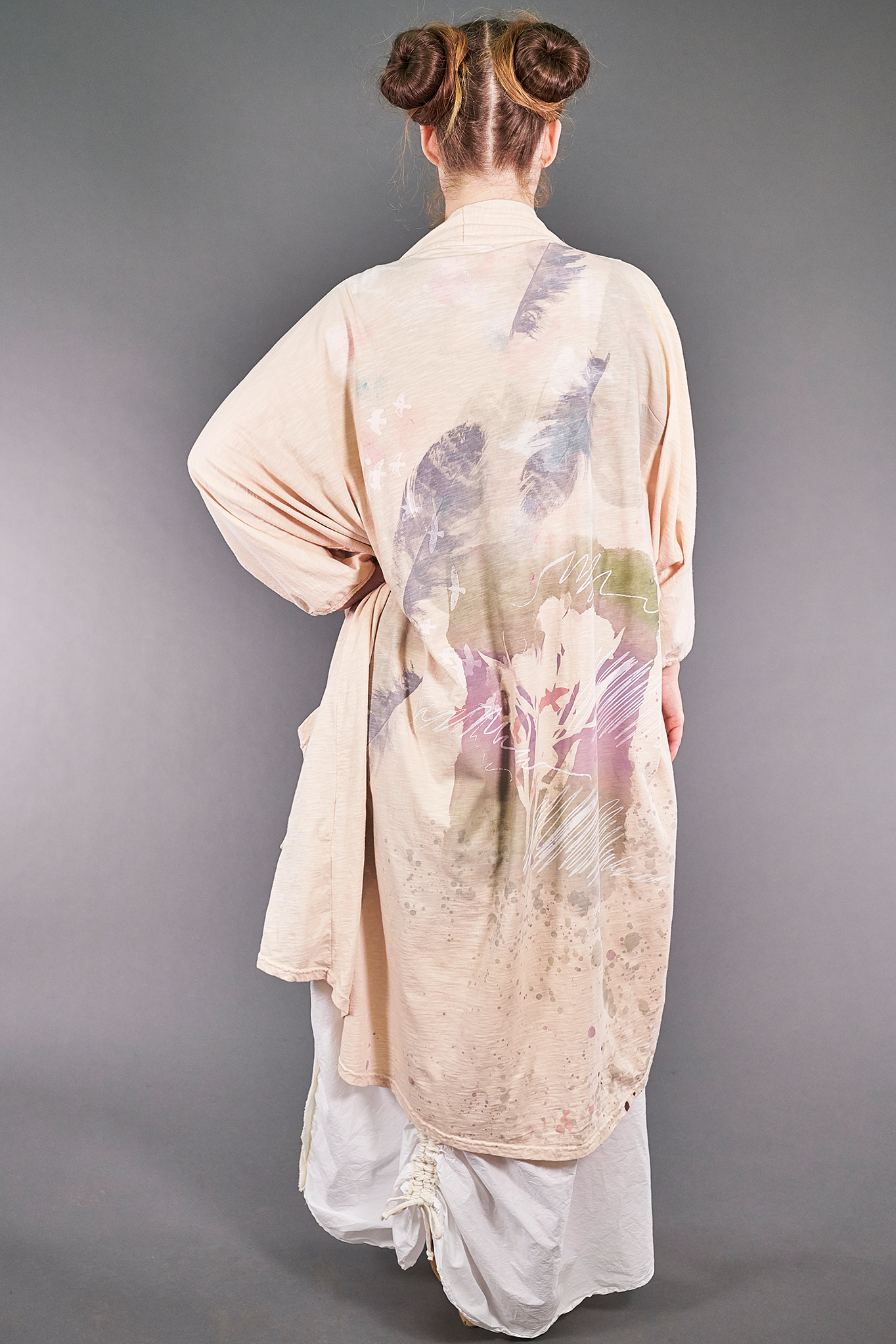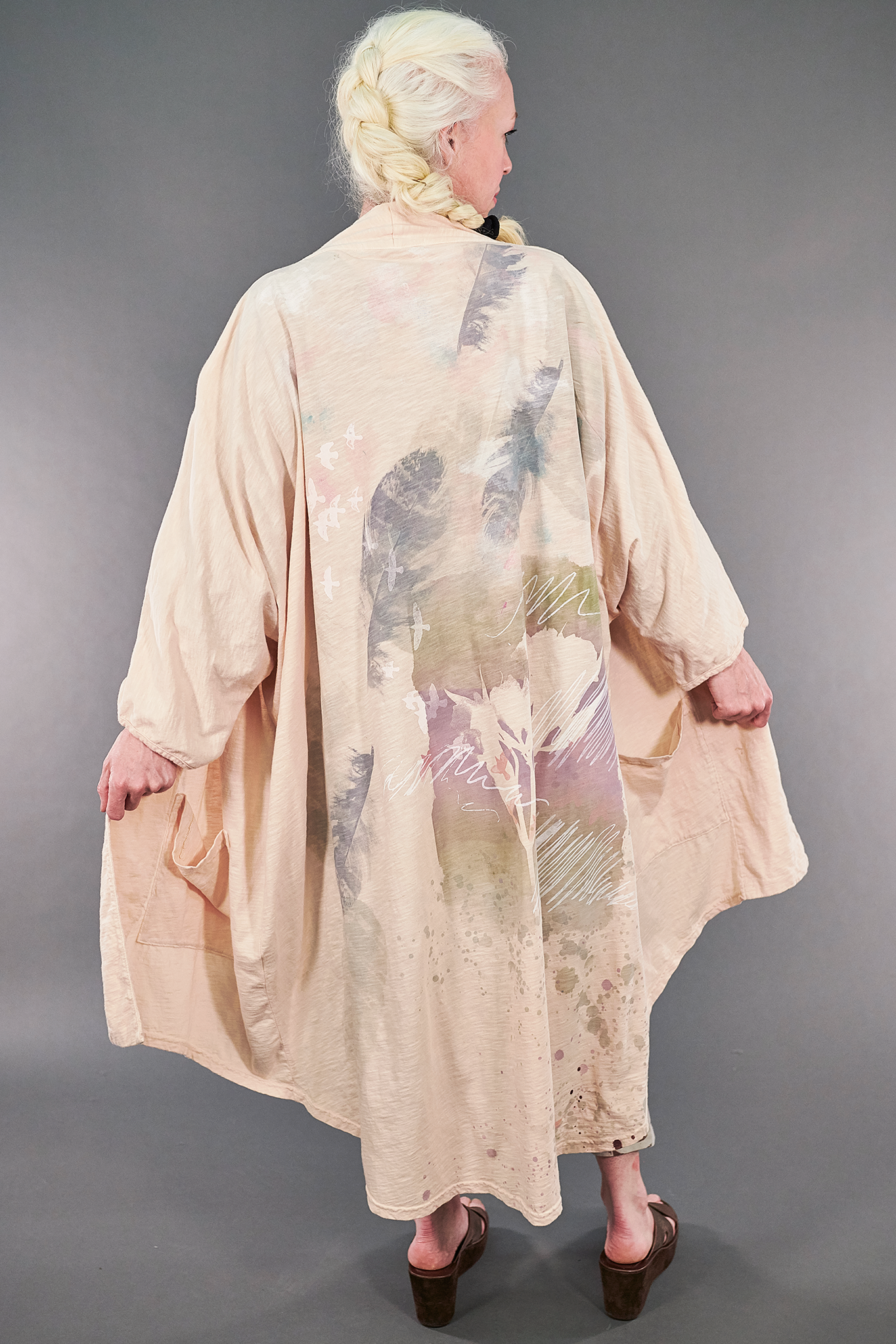 This softest slub cotton kimono is sure to add a layer of romance to any outfit! We cut this piece generously so that it is perfect for layering, and the shape flows beautifully on any body type. Two big pockets on the front add practicality & style. Cotton fabric is so soft & beautiful (zoom in on the picture to see the slub texture). Each one is hand-printed with an incredible dreamscape of design by our studio artisans.