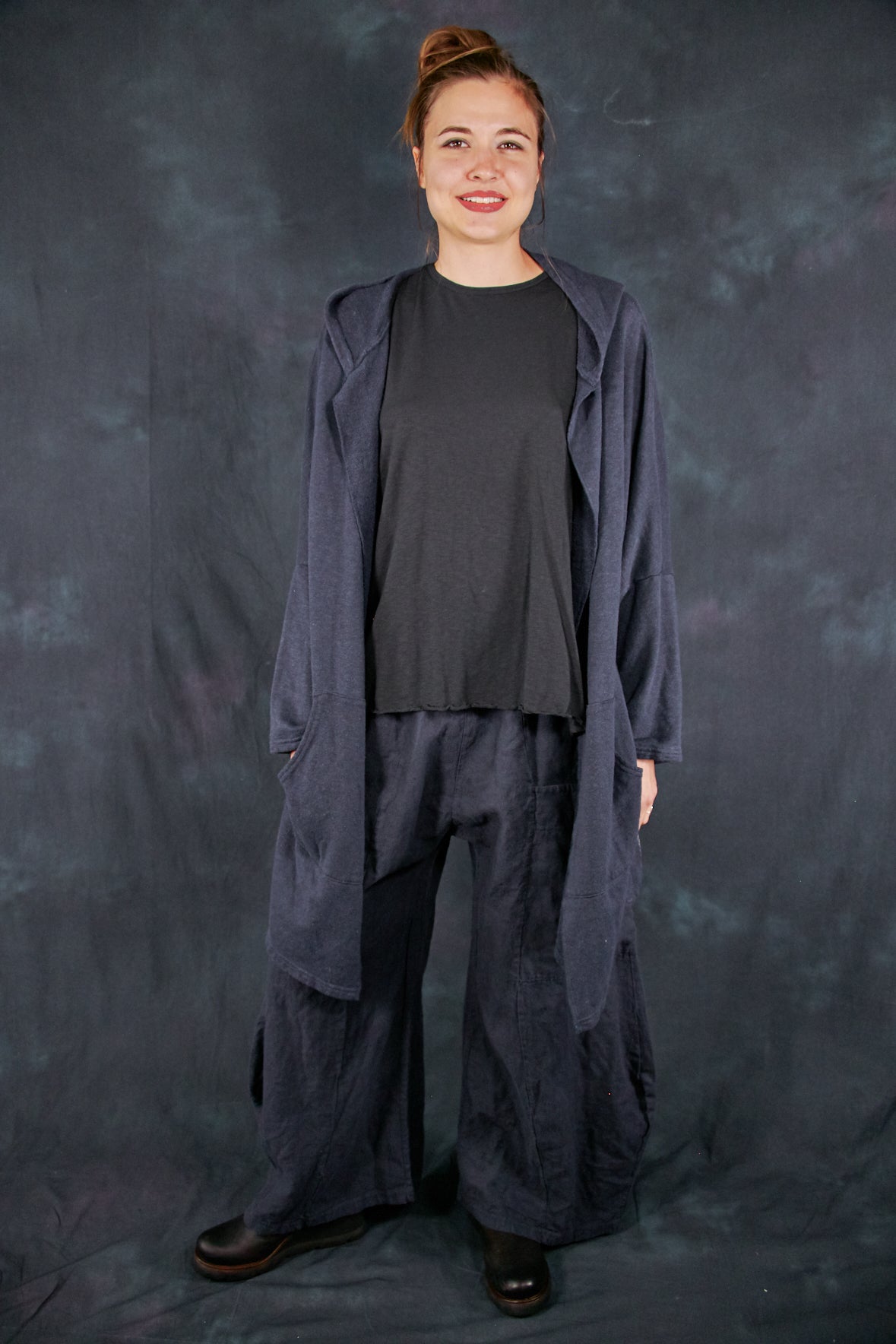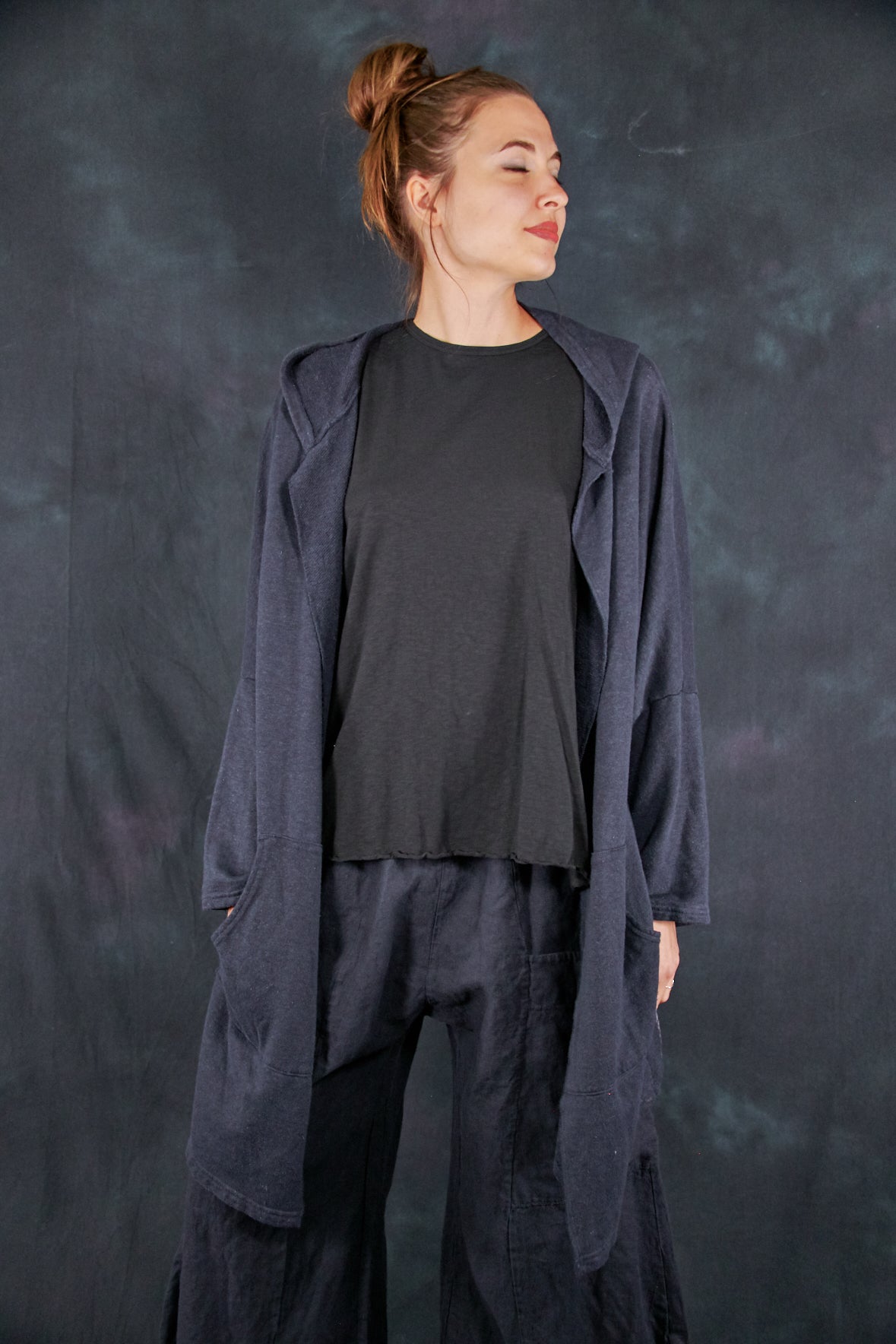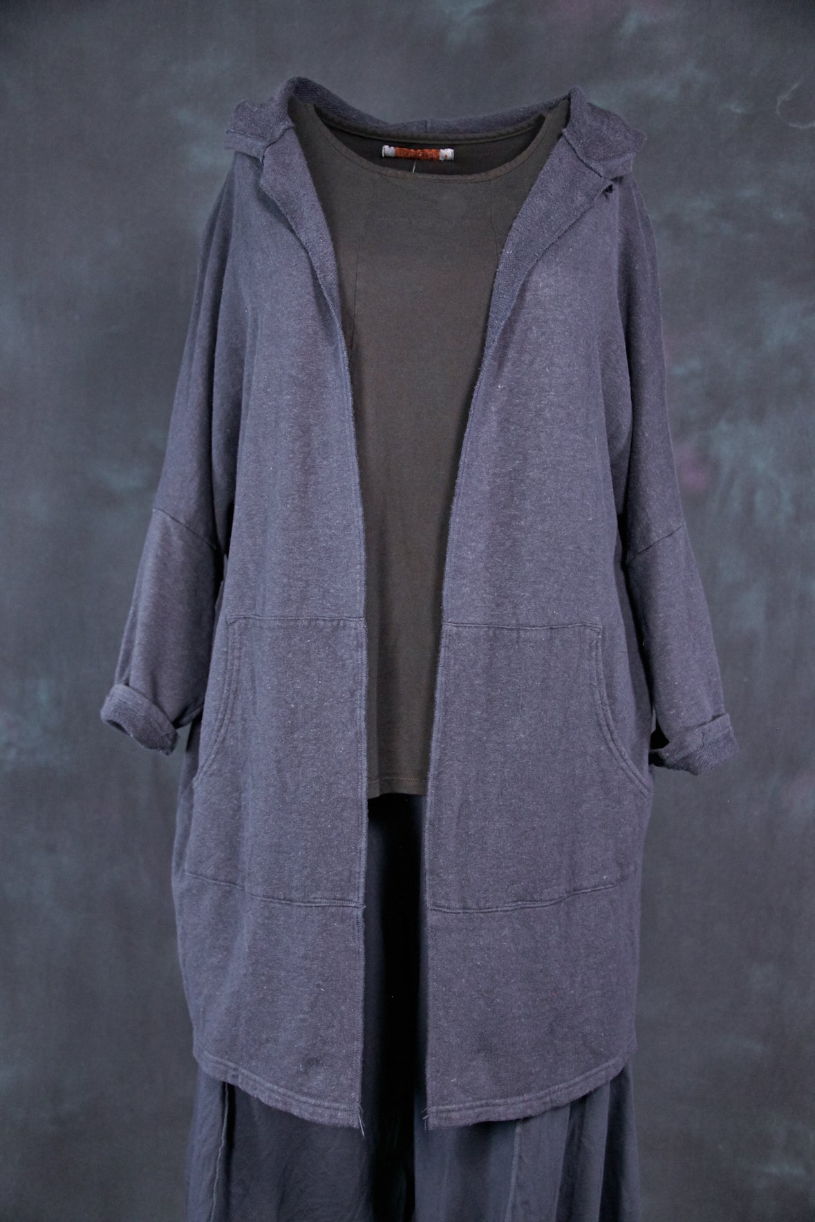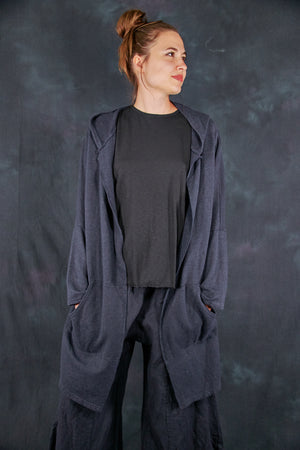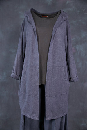 The star of every ensemble. We made these from a textural, cozy hemp/cotton blend that provides the perfect layer of warmth for cool fall nights. This open-front hoodie features two pockets on the front.