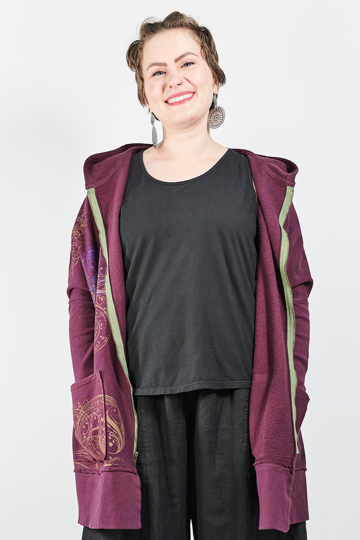 A perfect warm thick organic cotton stretch zip hoodie to layer.