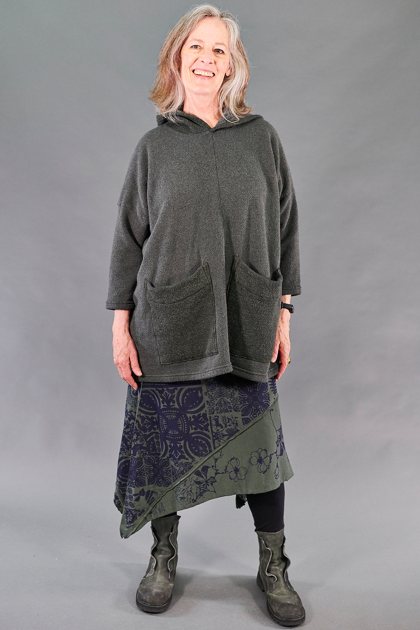 This is your new treasure from Blue Fish-the perfect throw over to keep you cozy as the temperatures drop. Made of plush cotton sherpa with two practical, big pockets. Roomy arms & body will suit all of your fall/winter layering needs.