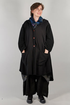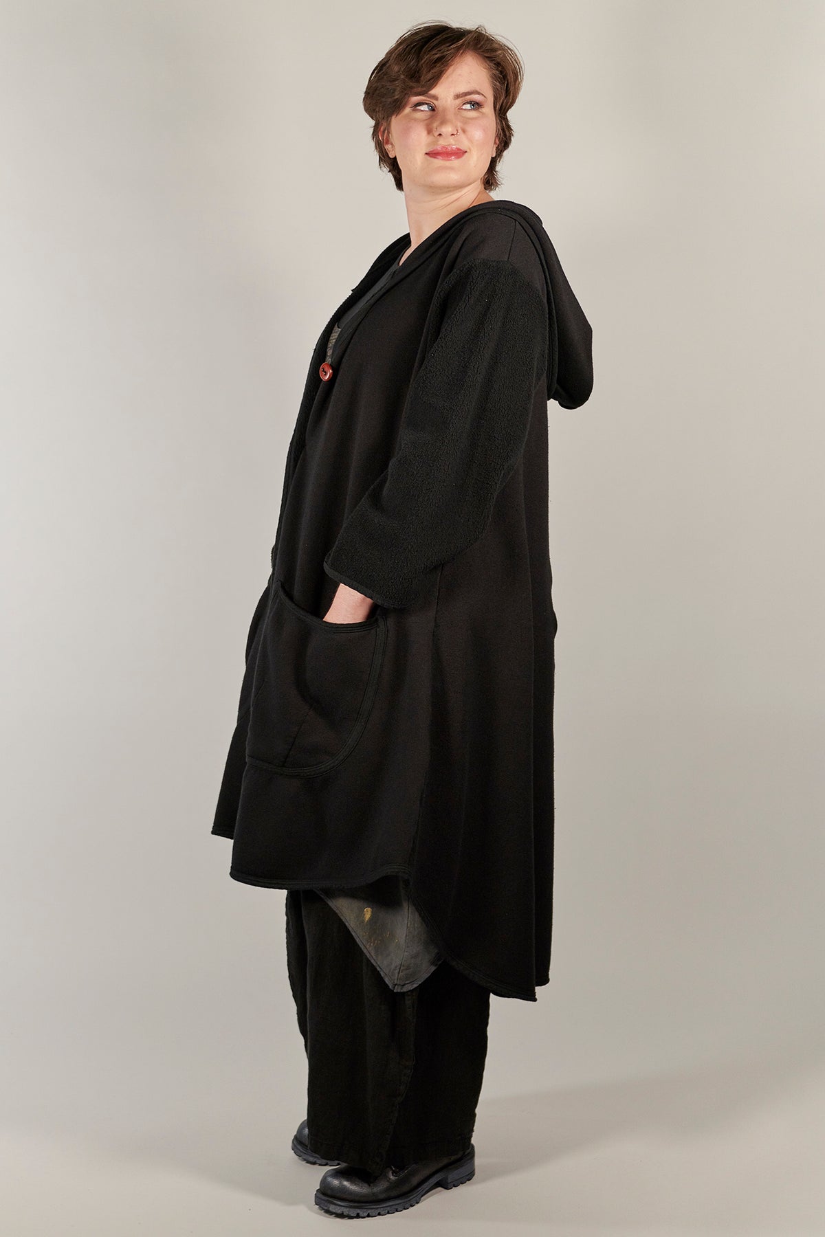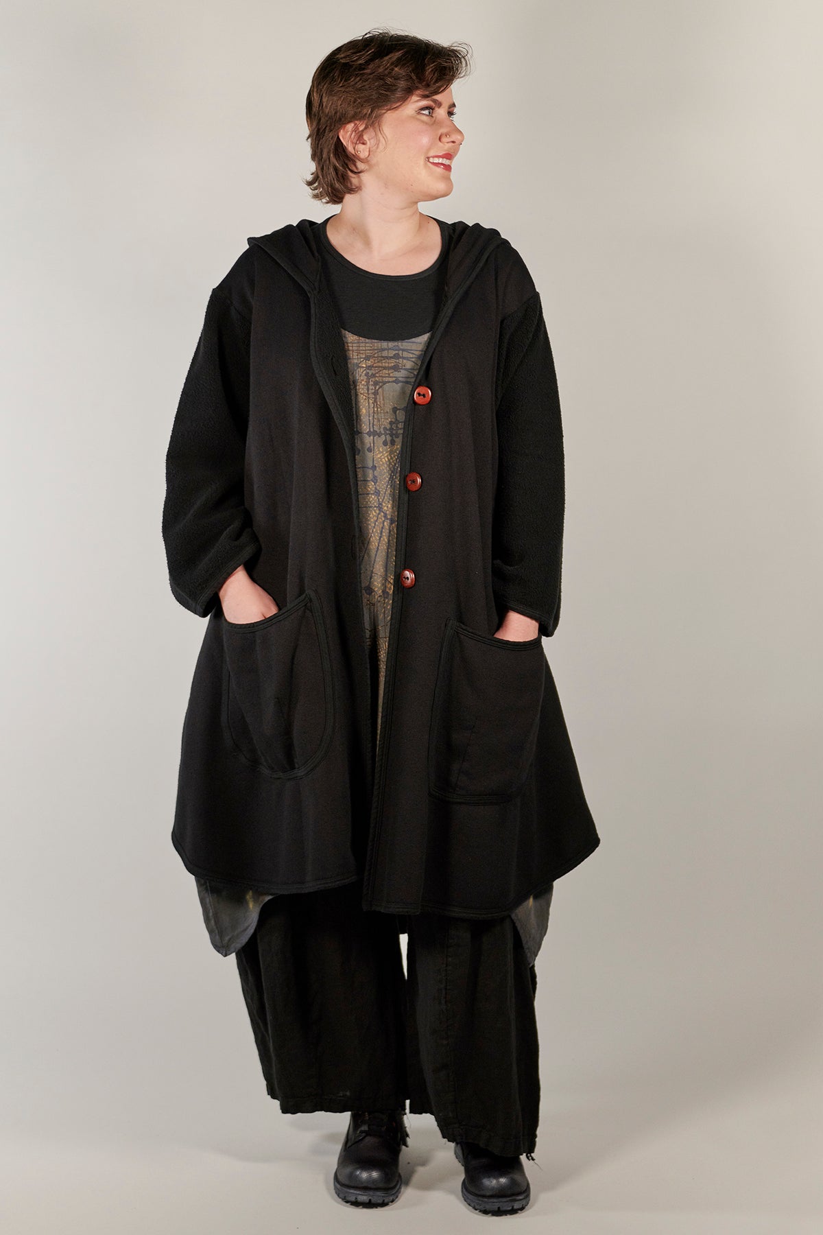 A work of art! Made of our thick, dense organic cotton sherpa that will keep you toasty without suffocating you. Binding on pockets & around hemlines accentuates unique Lagenlook shape.