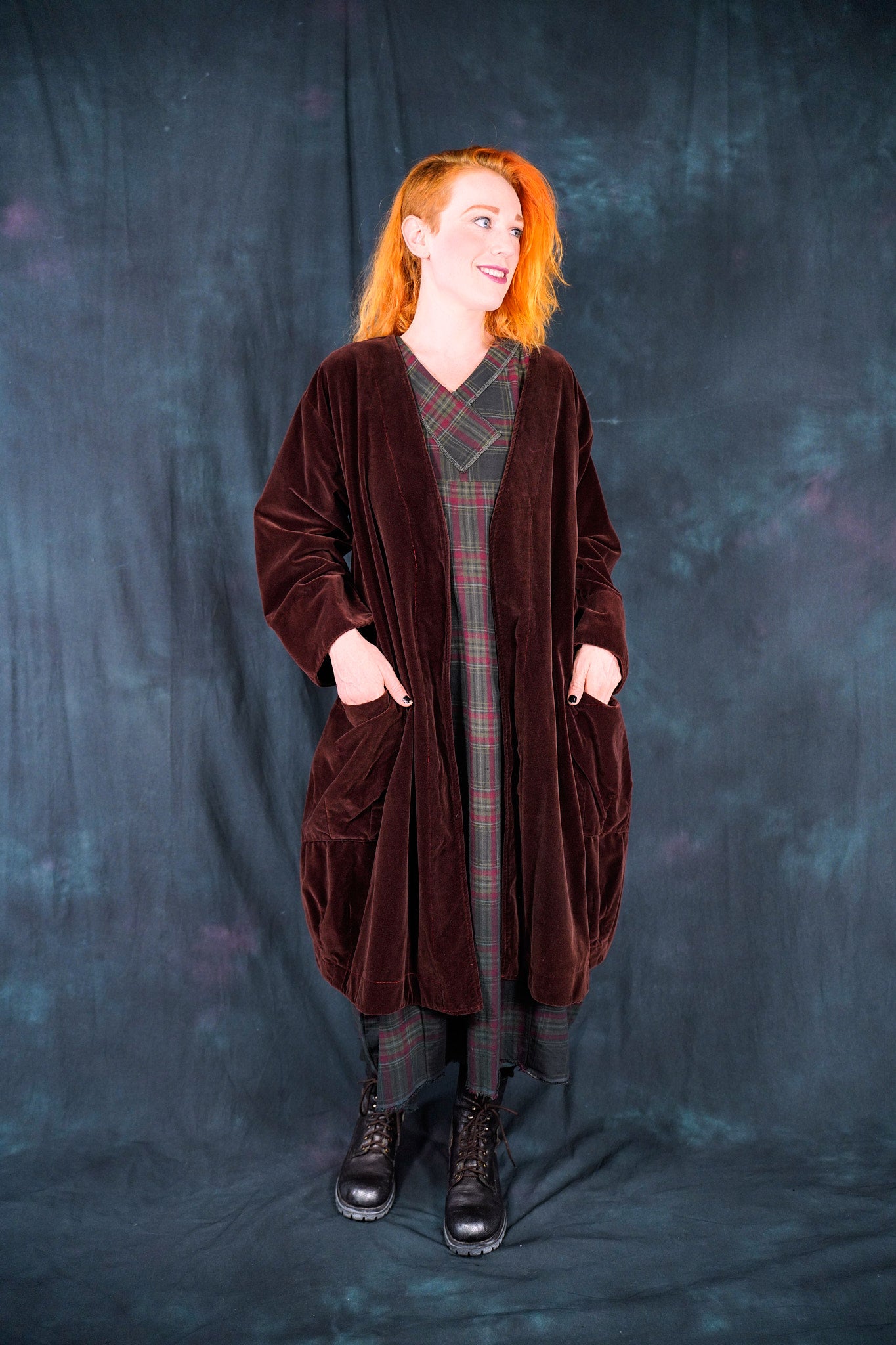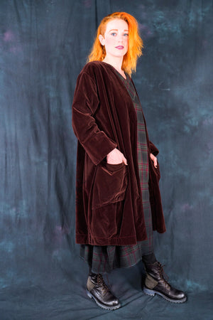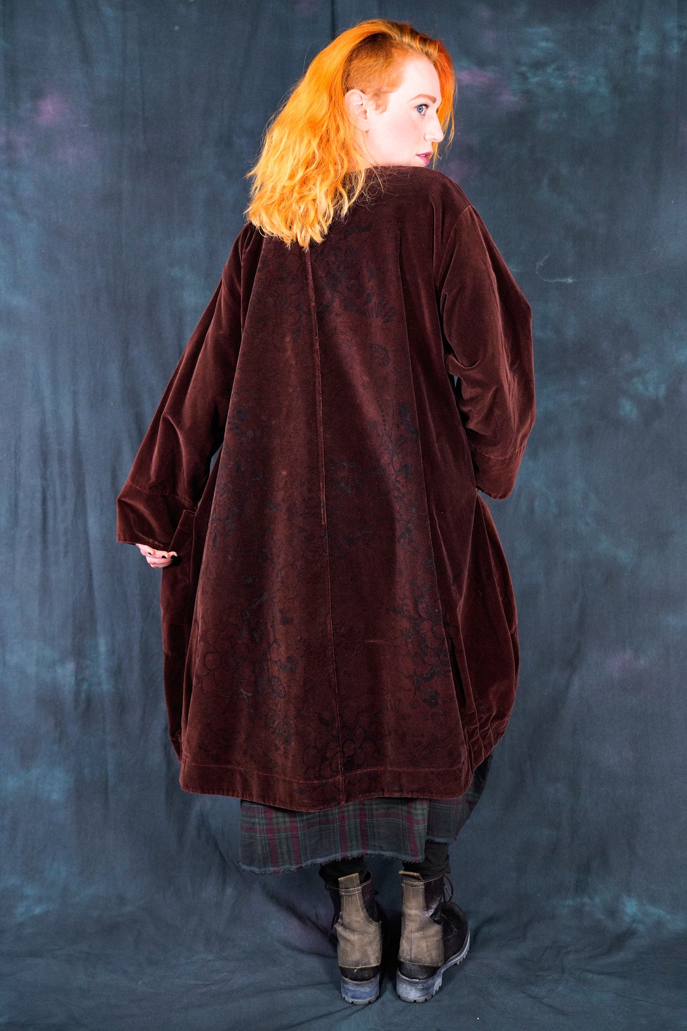 5282 Handprinted Cotton Velvet Coat-Incense Brown