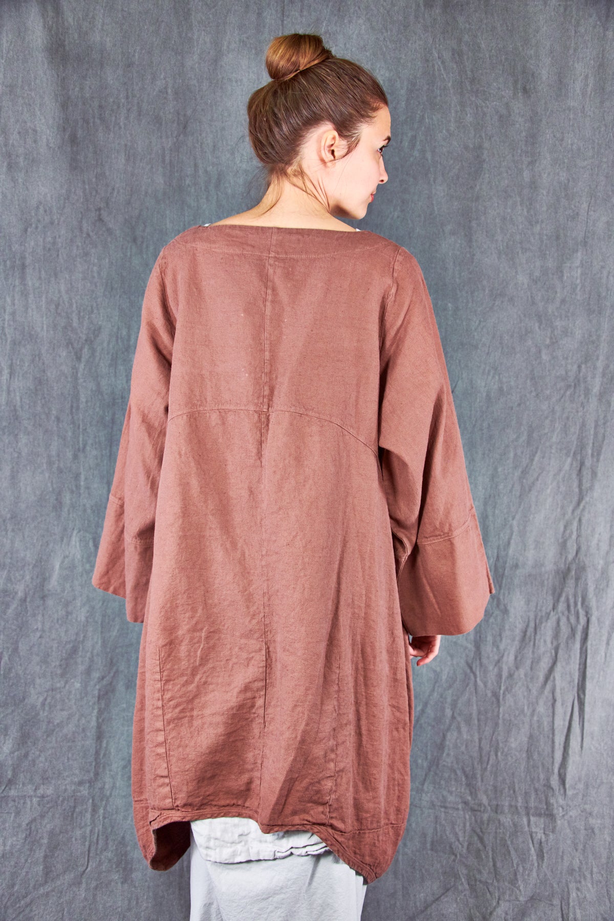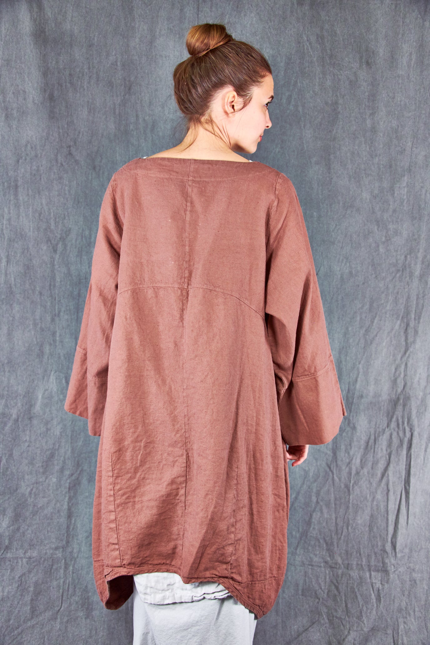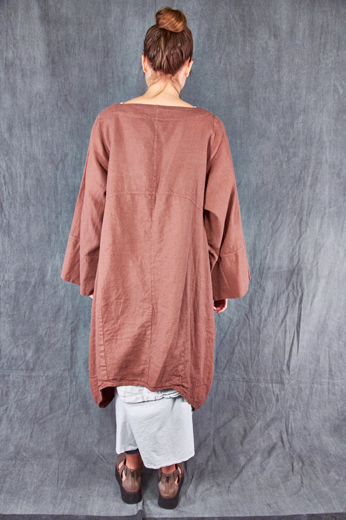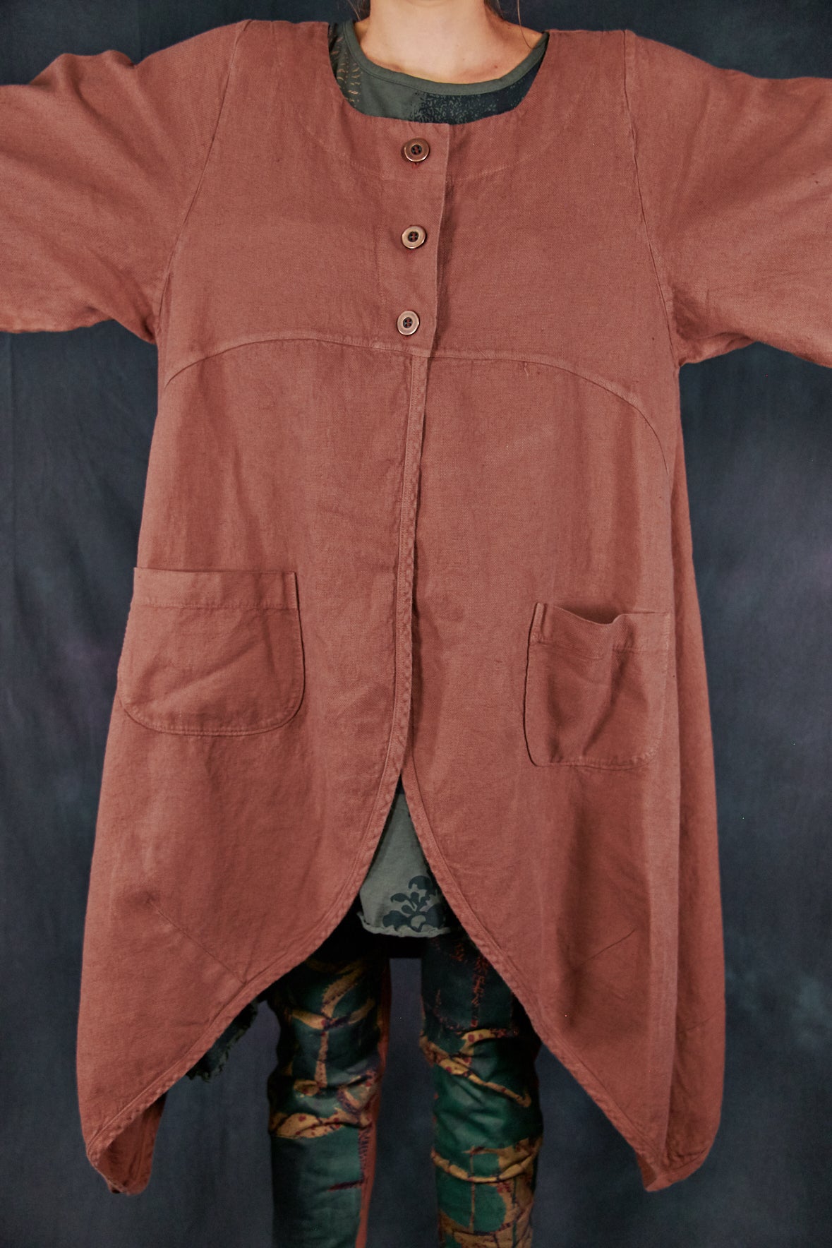 Bell shaped duster jacket Crafted from our signature 100% Linen. Featuring our heaviest weight linen for transitional seasons. Featuring 2 front patch pockets, topstitching at empire waistline for definition and a 3 button closure. The perfect finishing touch for any outfit. MADE IN THE USA.