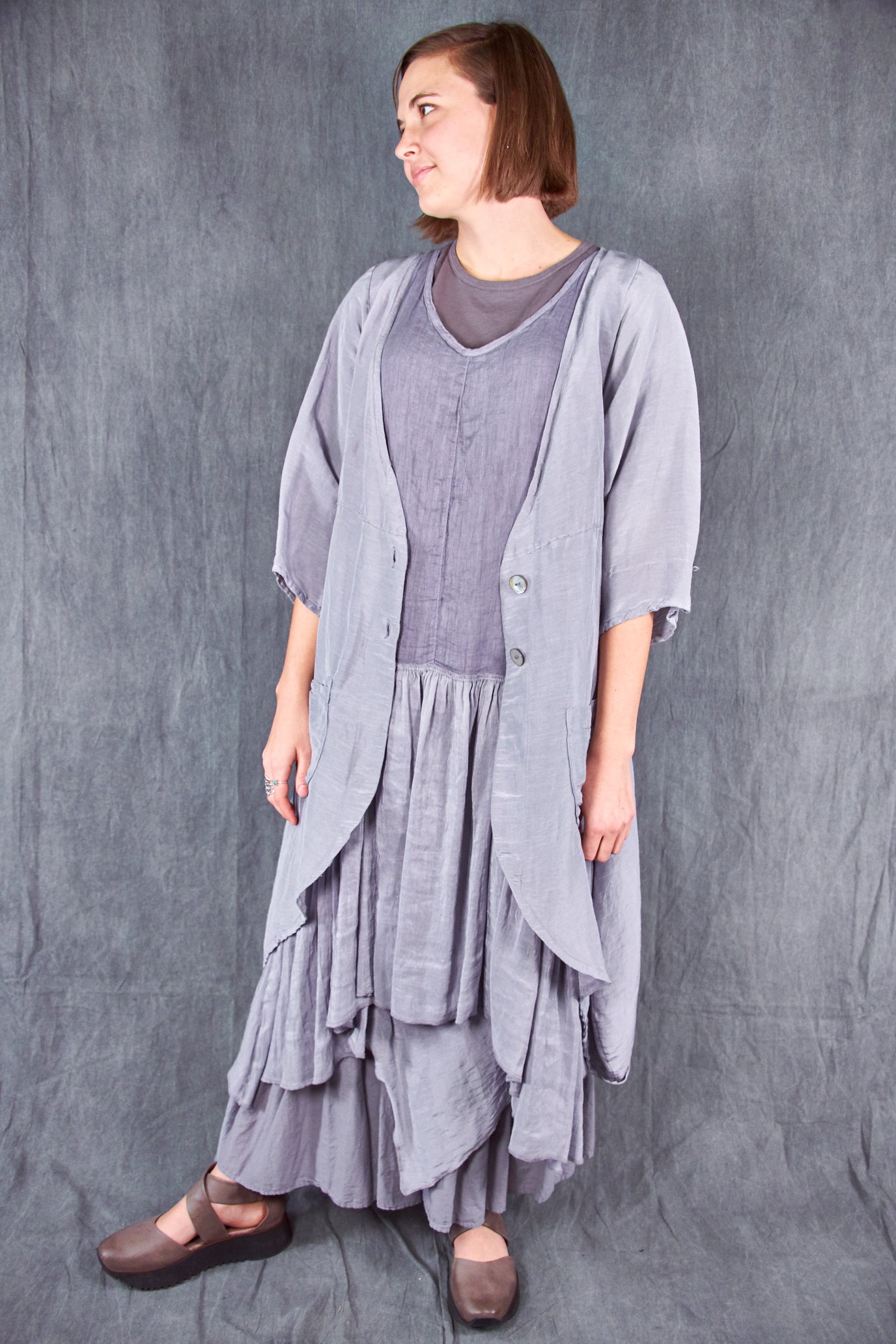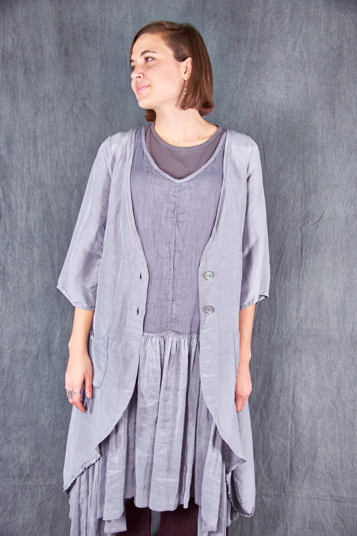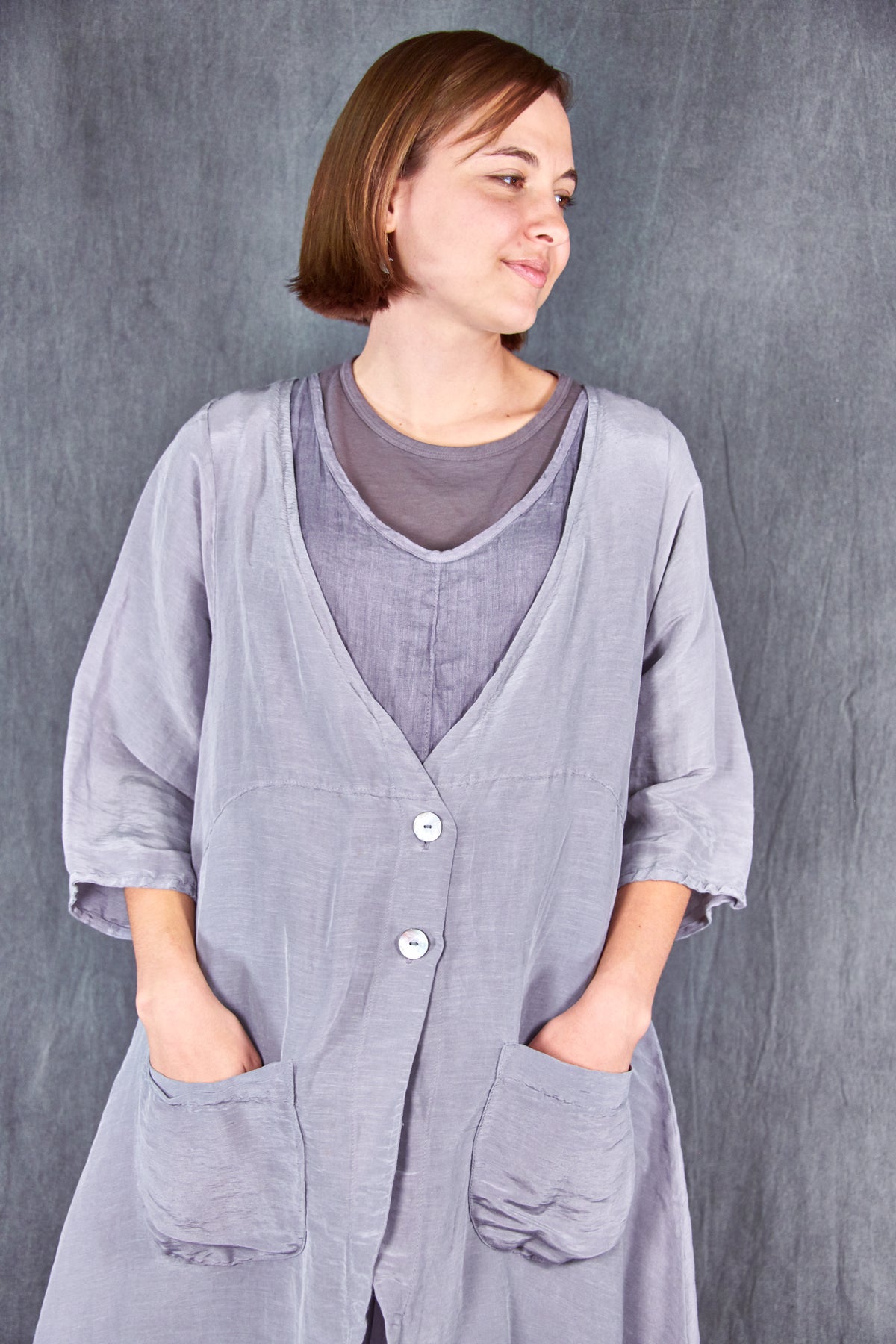 This luxe duster is made from lightweight hemp-silk, and has a subtle sheen.