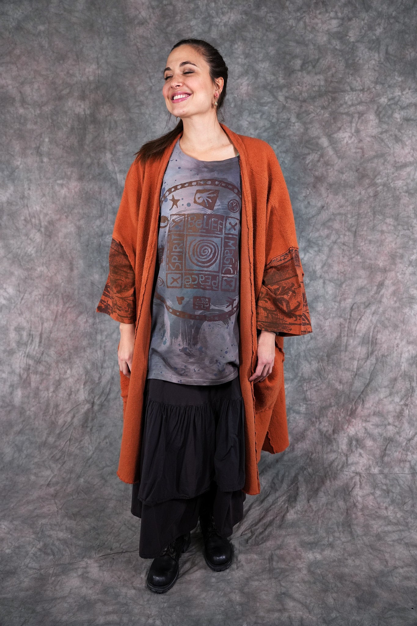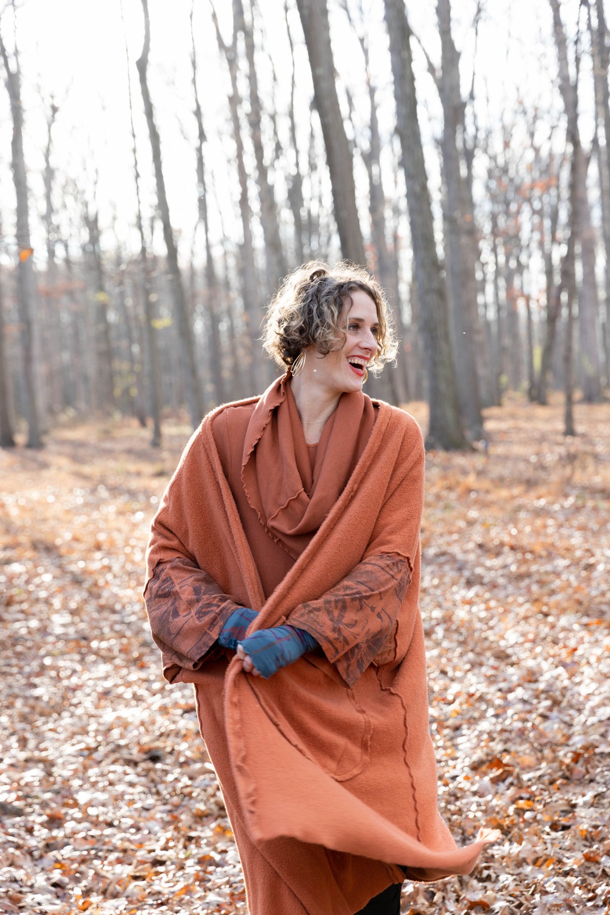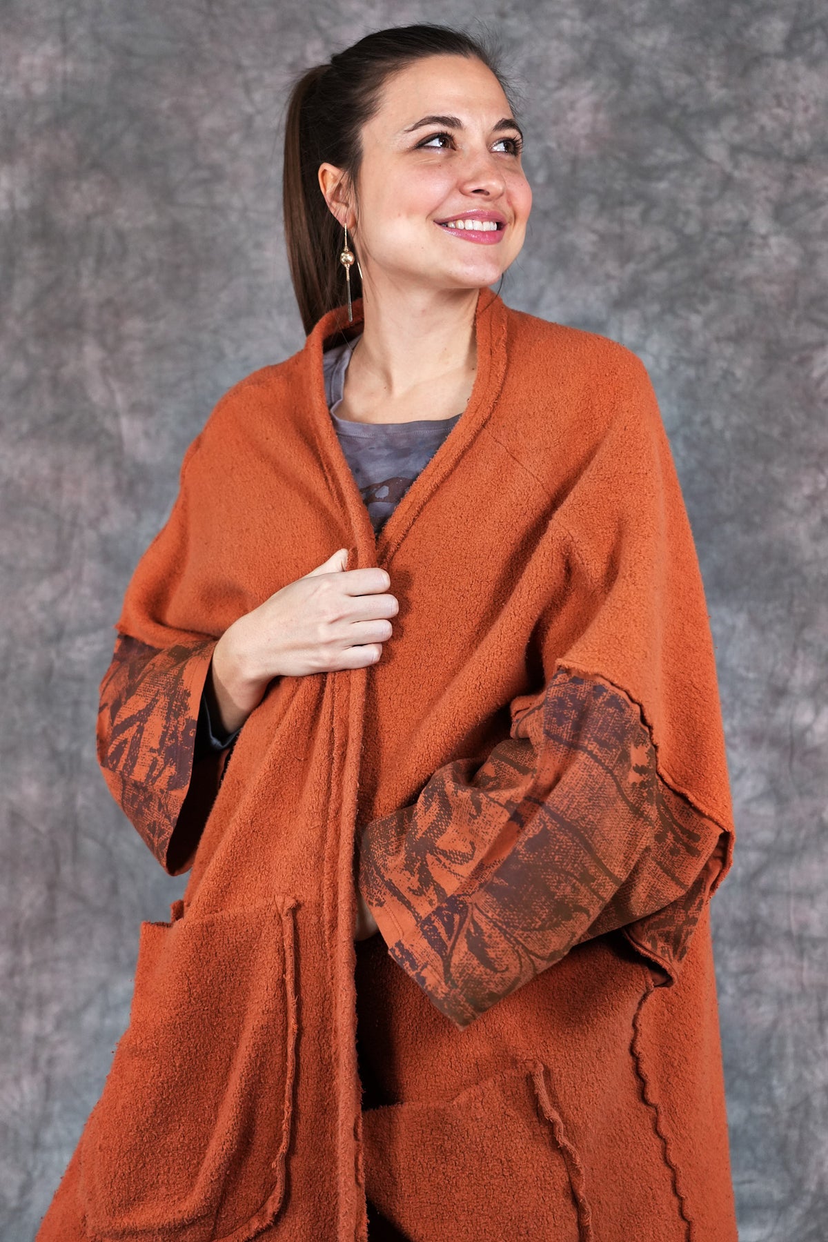 Heavy & substantial weight organic cotton sherpa ( not the light lofty kind) This means warmth. (This is actually a wearable blanket, with big pockets and light sleeves… so you can wear it from the sofa to go get your tea...and to stay cozy all the way!)The thick heavy sherpa is made just for us in the Carolinas. So soft and dense, really keeps you warm! Layers over anything quite easily.