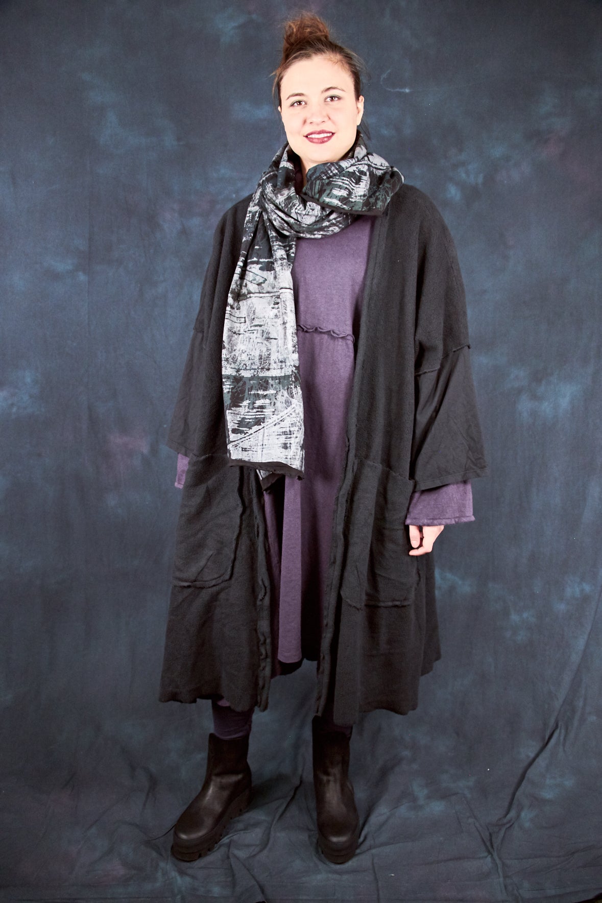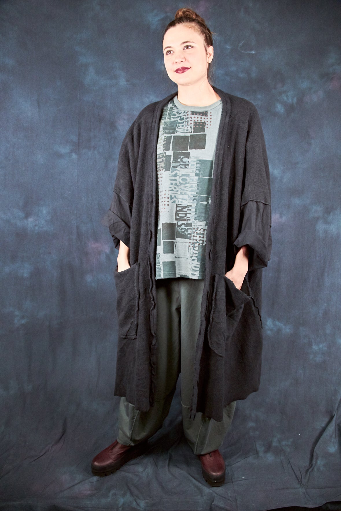 Heavy & substantial weight organic cotton sherpa ( not the light lofty kind)This means warmth. (This is actually a wearable blanket, with big pockets and light sleeves… so you can wear it from the sofa to go get your tea...and to stay cozy all the way!)The thick heavy sherpa is made just for us in the Carolinas. So soft and dense, really keeps you warm! Layers over anything quite easily.