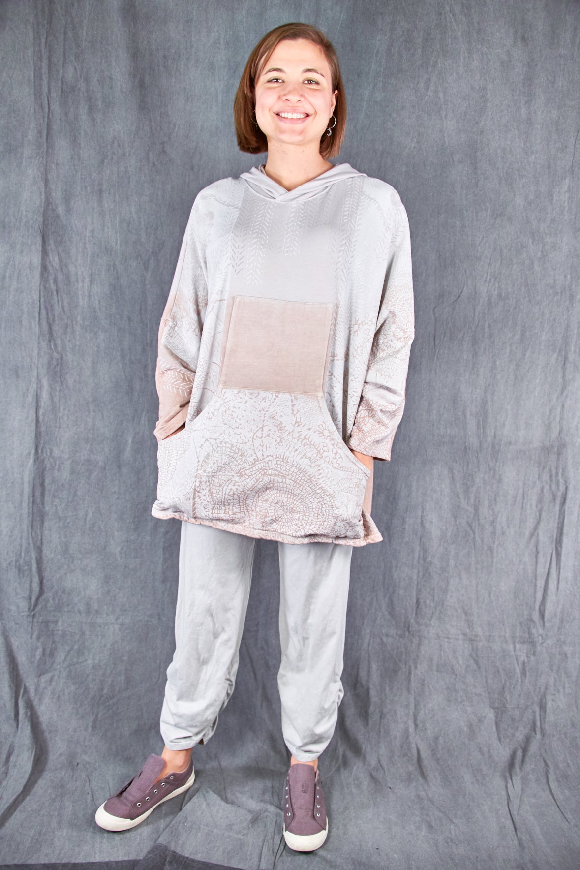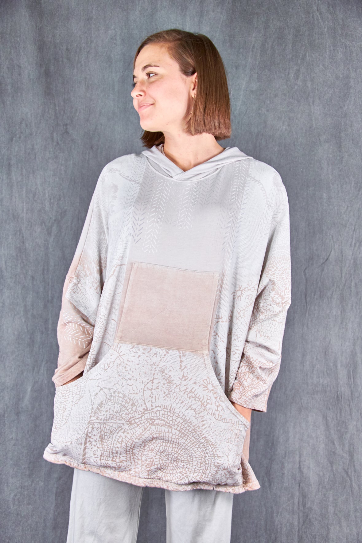 A Spring-Summer lightweight hoodie styled similar to our popular 'hip-to-be-square' hoodie with a little extra length and light summer cotton.