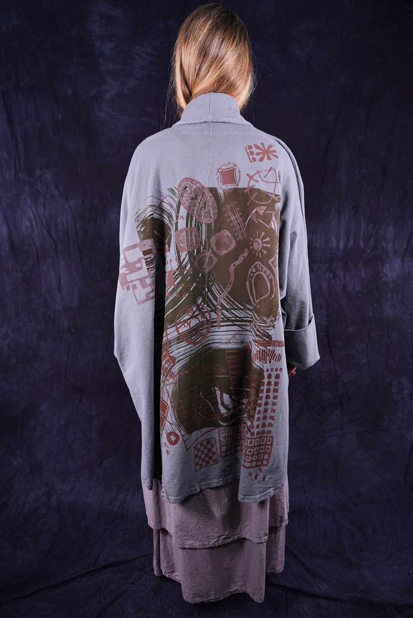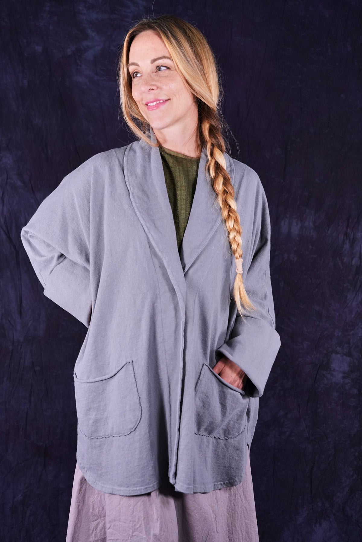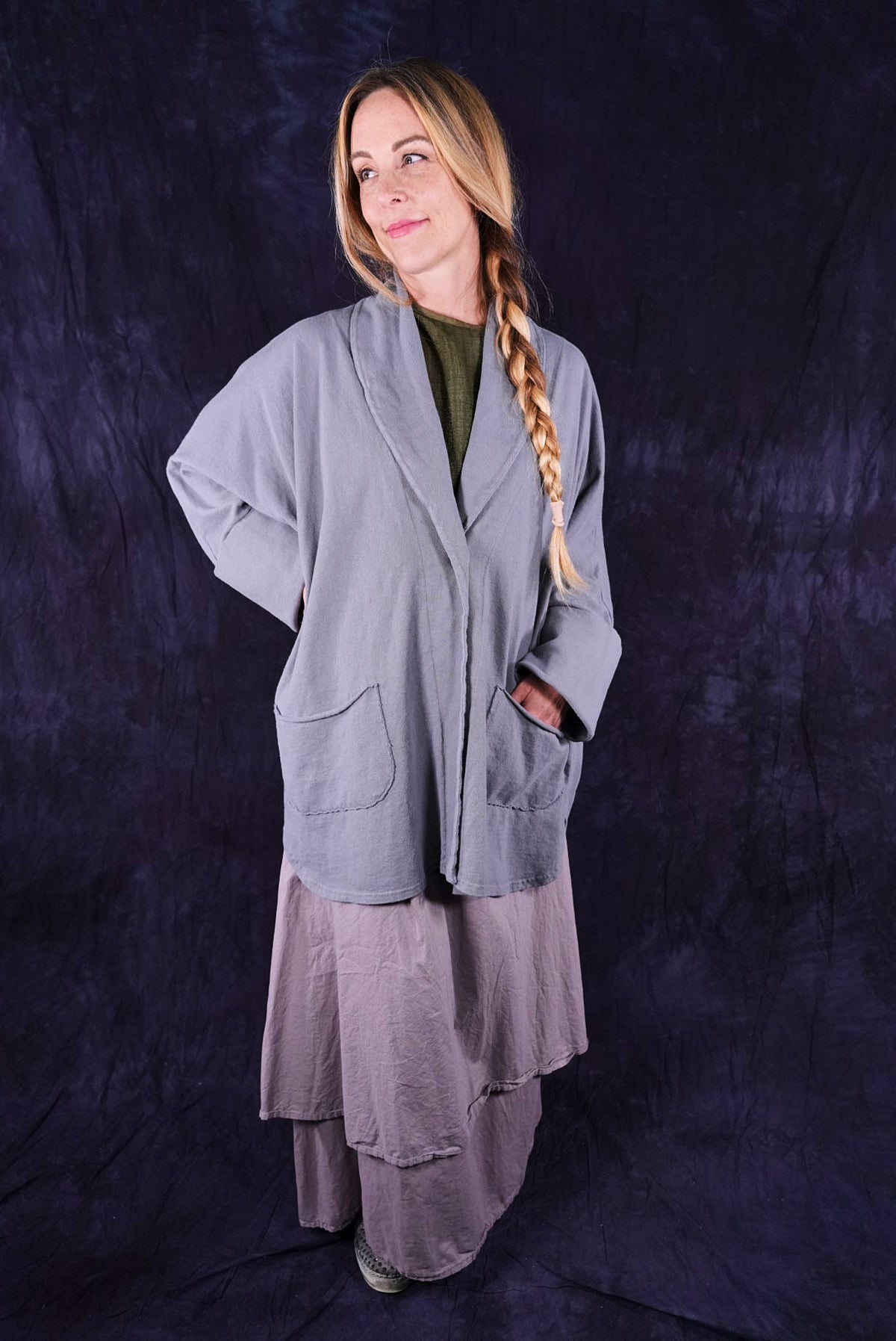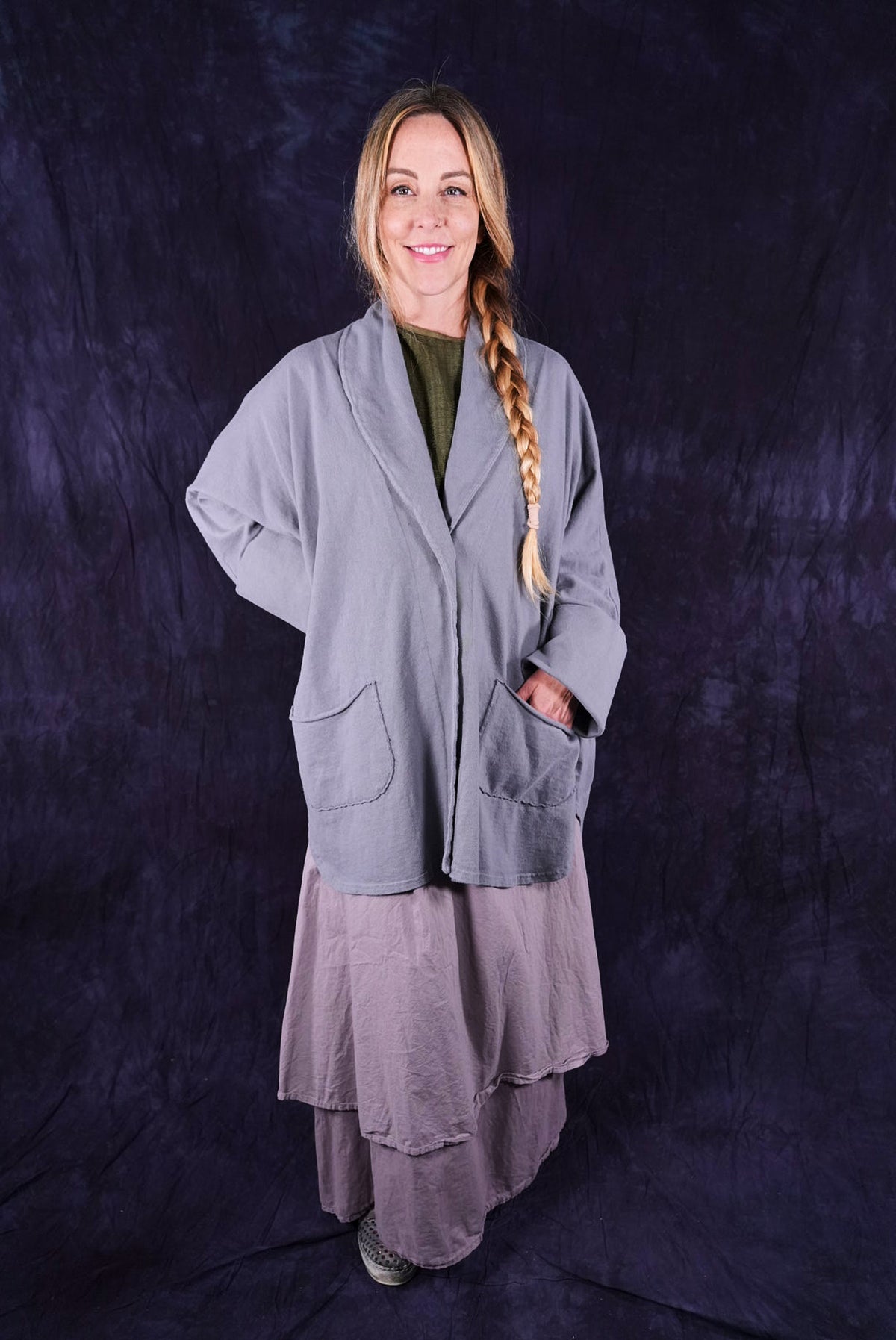 Our Golden Hour Cardi is made from soft organic reprocessed cotton with a beautifully shaped collar to compliment all styles. This one size coat is flattering to all sizes. An incredibly versatile layer to enhance your wardrobe.