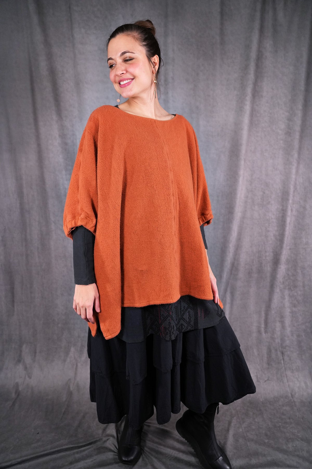 Lush sherpa vest with loose gathered sleeves and open sides. Perfect at home cover or drape over any Blue Fish outfit