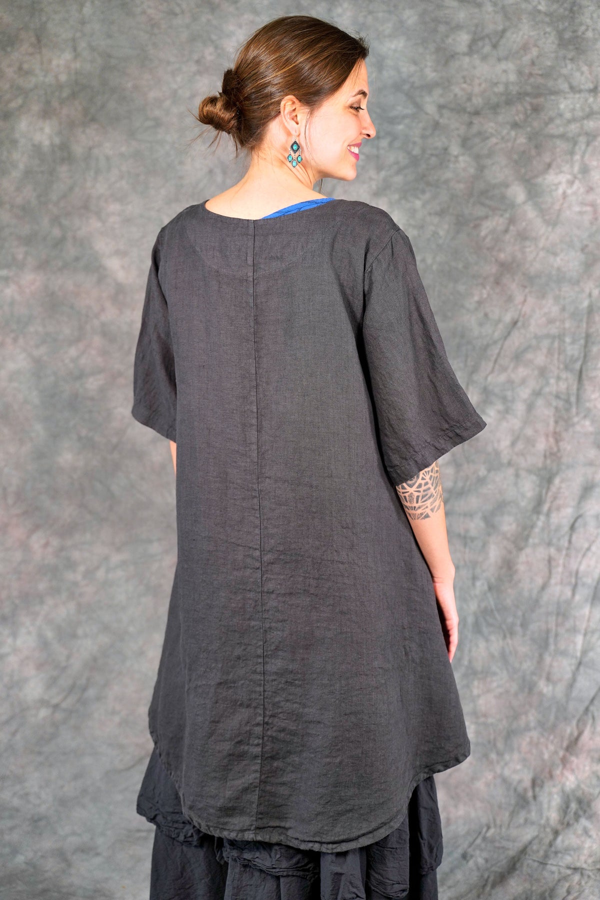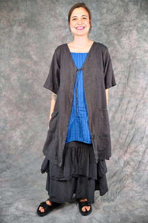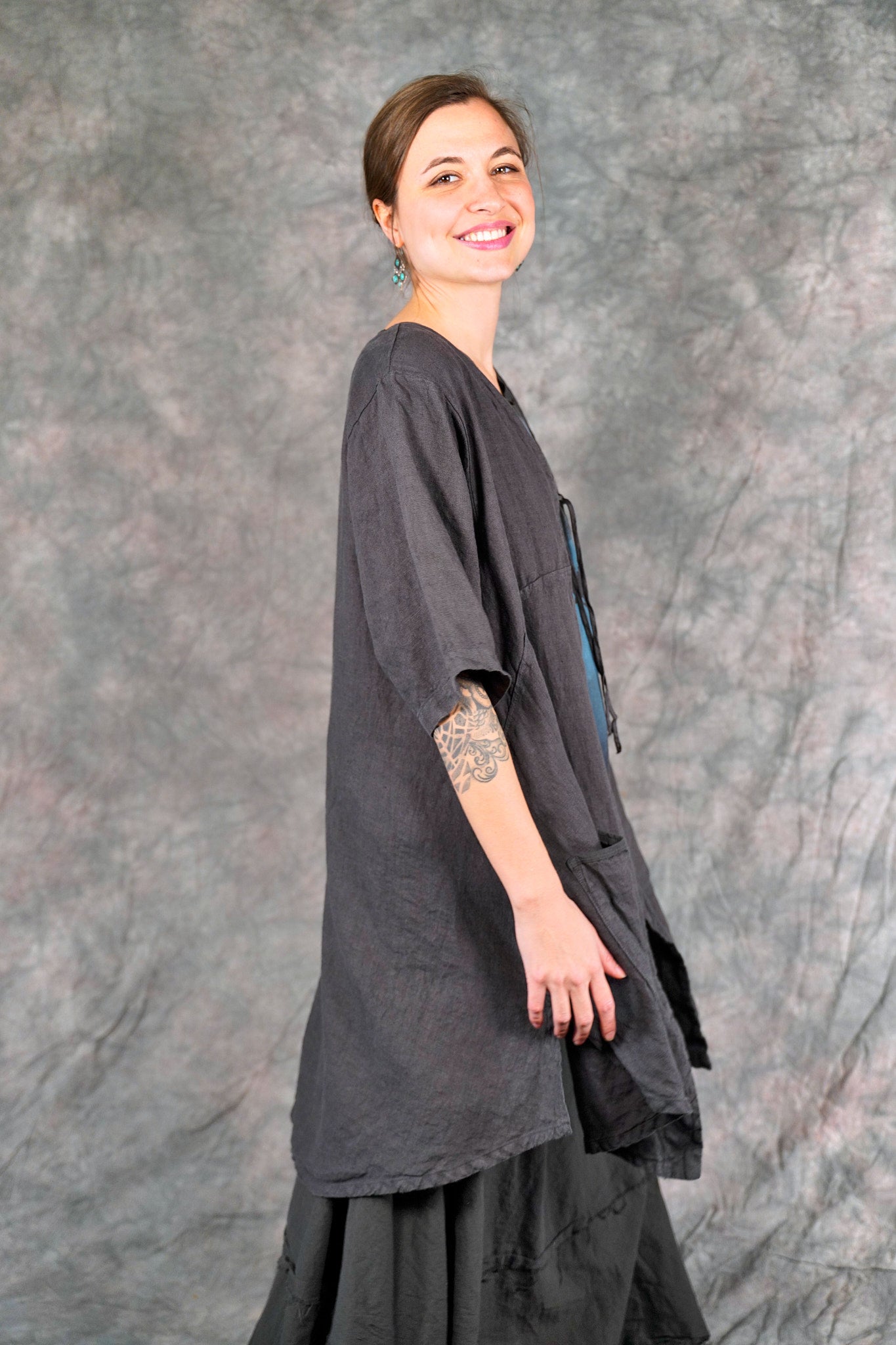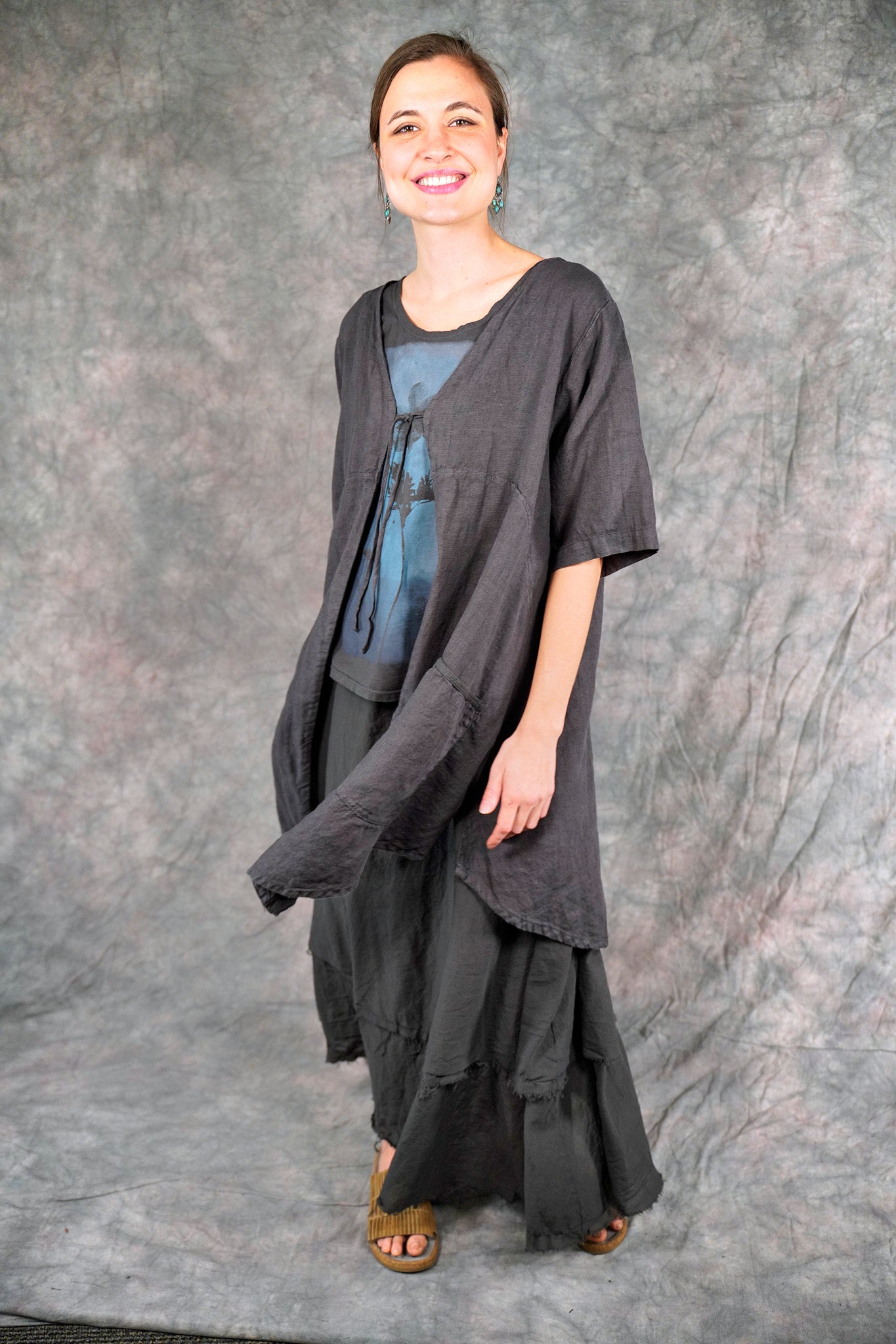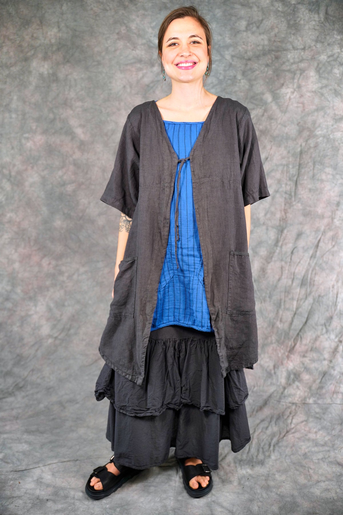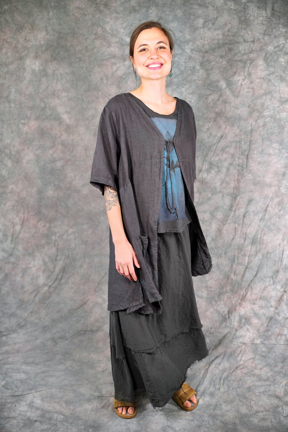 Soft 100% linen to wear open or optionally closed with a simple tie closure. Throw it on over a #1210 tank top or dress. The pockets make it a perfect for travel or a walk in the park.