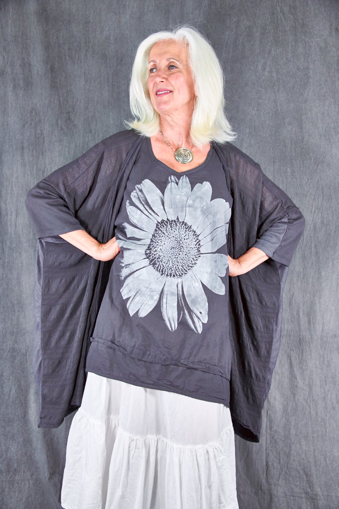 5309 Cabana Breeze Kimono Cardi Black Sand