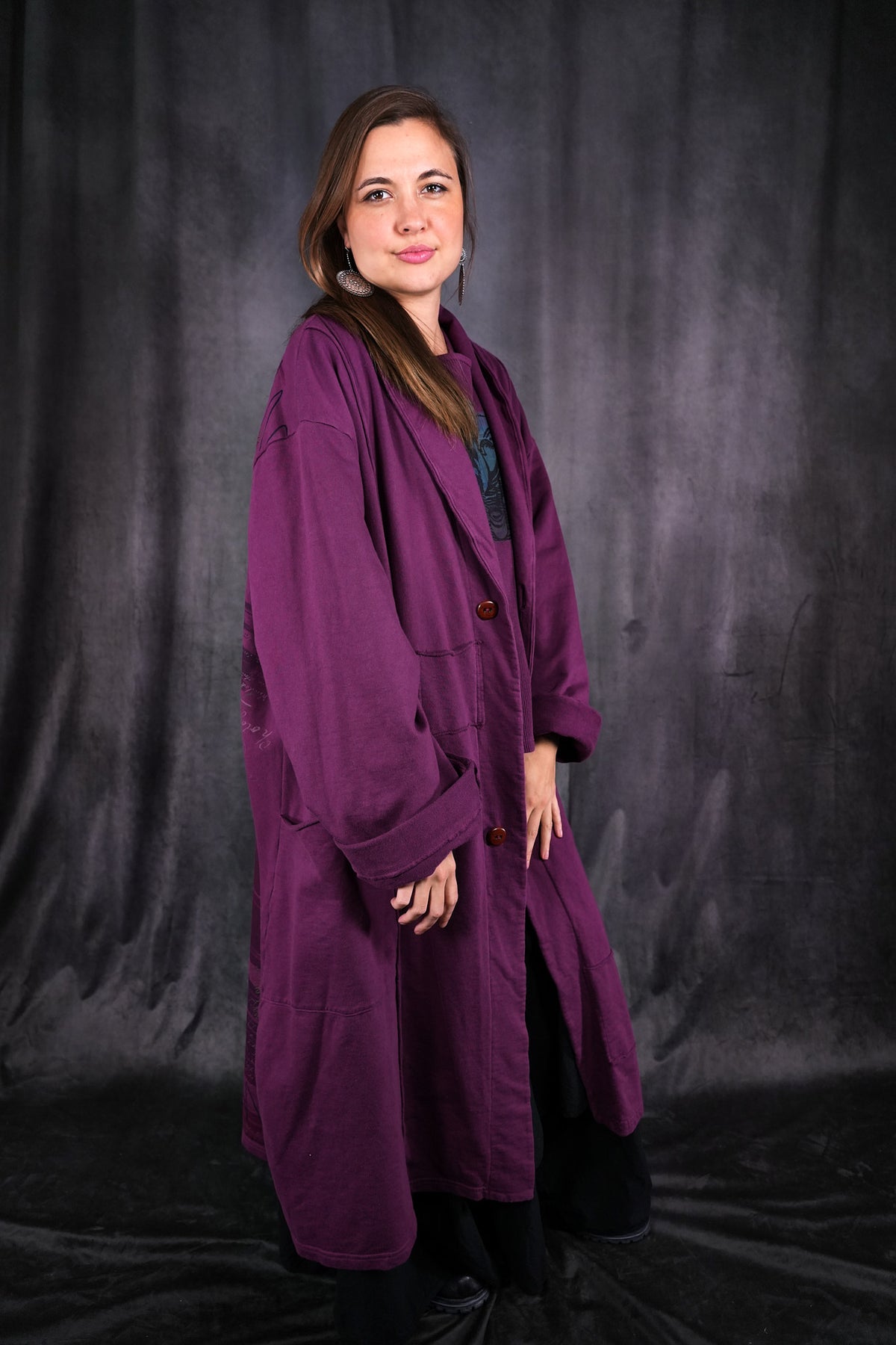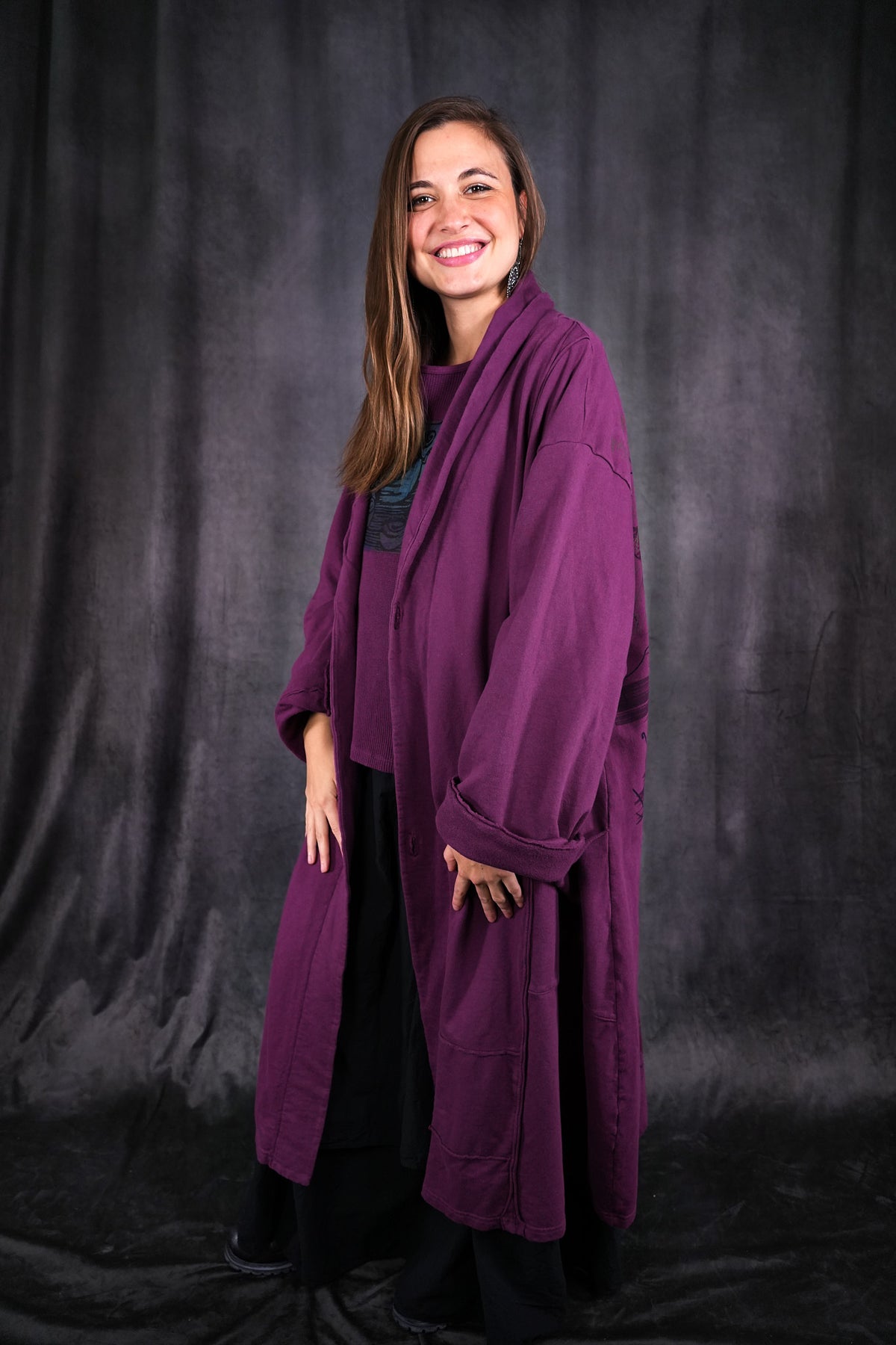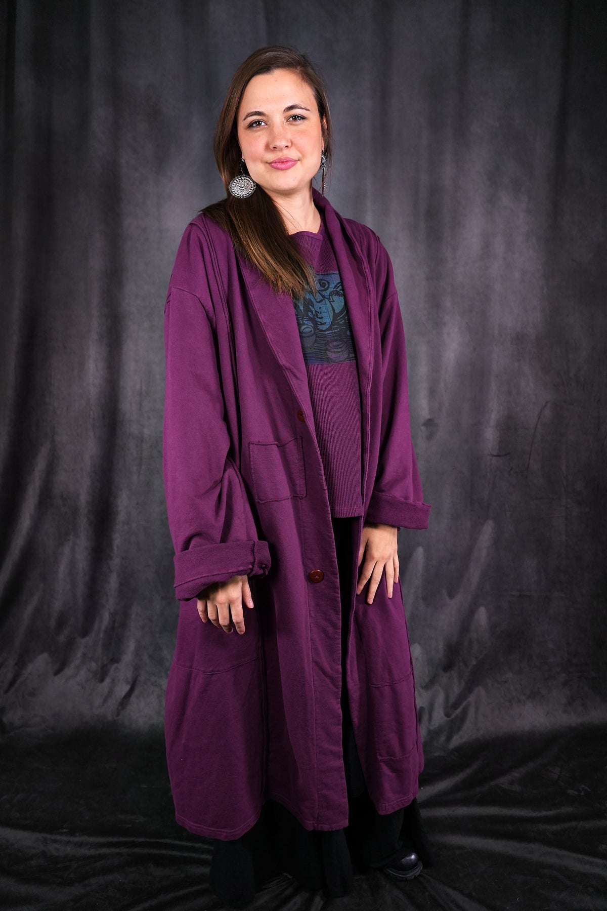 The Coat for every season. Made of beautiful organic french terry cotton which has a gorgeous drape. There is a shawl collar, beautiful print and pockets, goes almost to the ground for warmth and travels well! O/S(3)