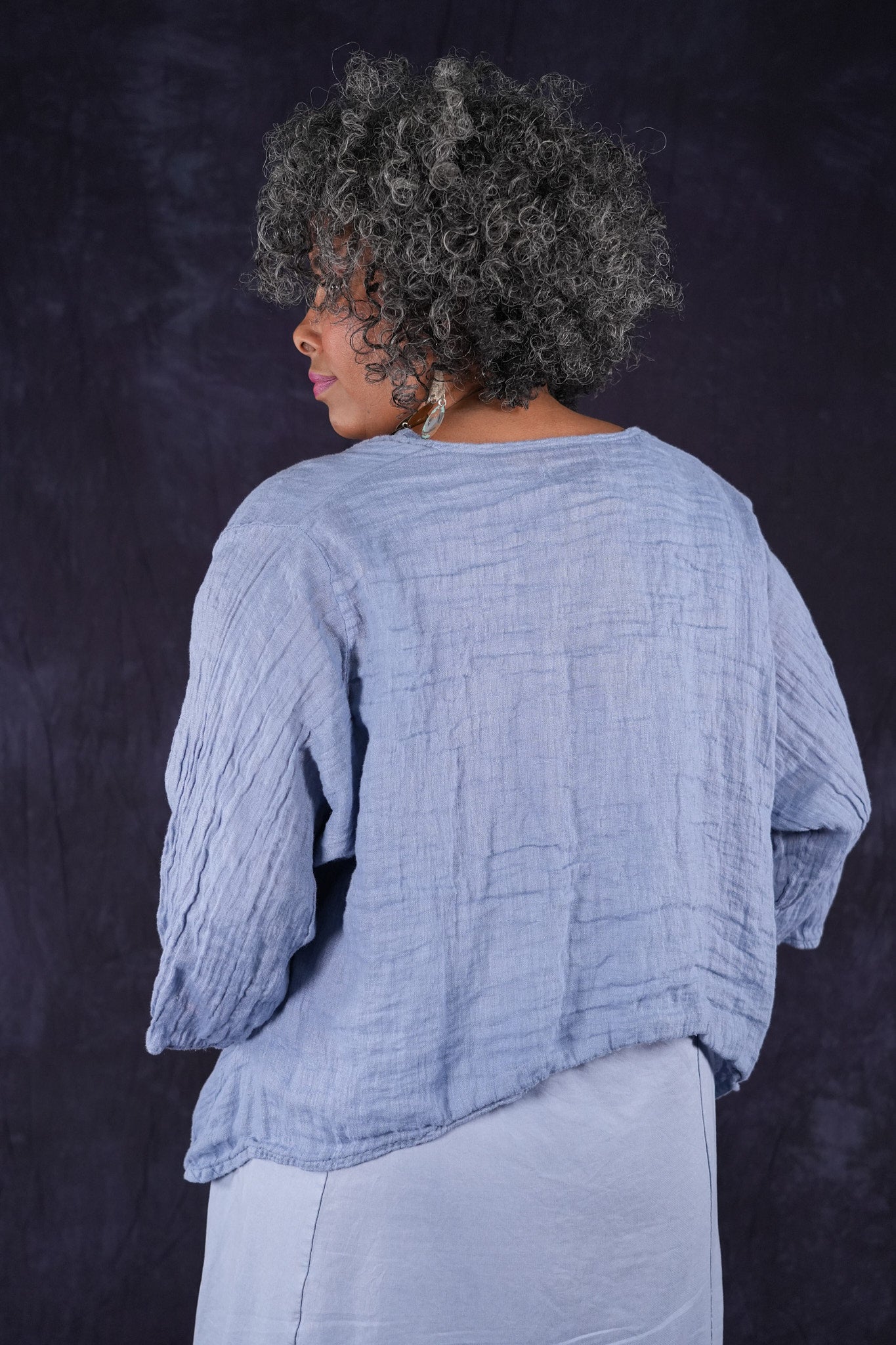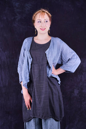 The best summer layer for those times when you just need a bit of warmth to keep out the chill. Its made to wrinkle and travel.  Roll it up and carry it with you where-ever you may go!  Layer over tops and sleeveless styles.  You won't want to leave home without it!