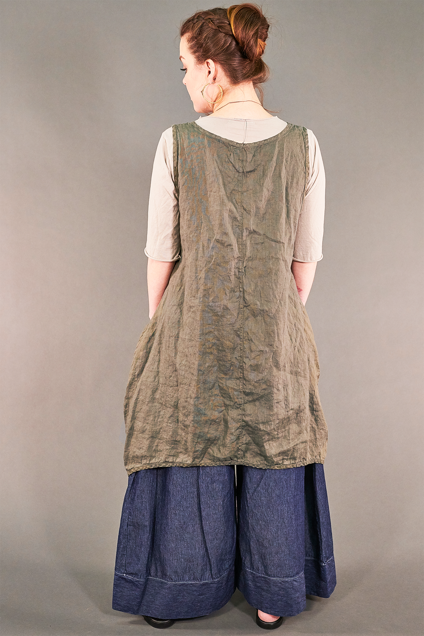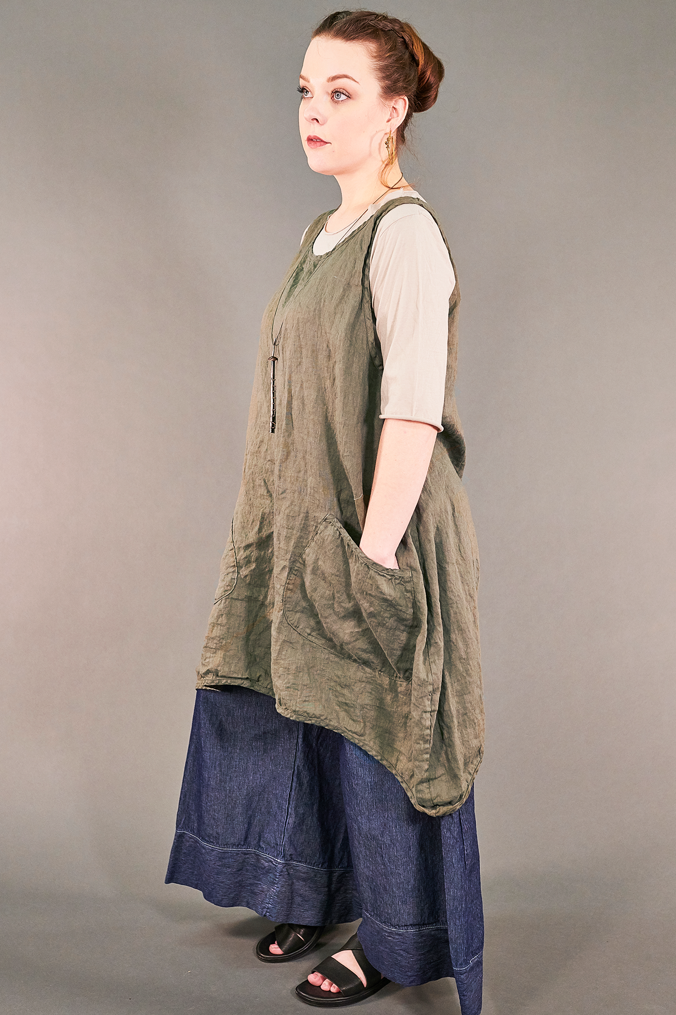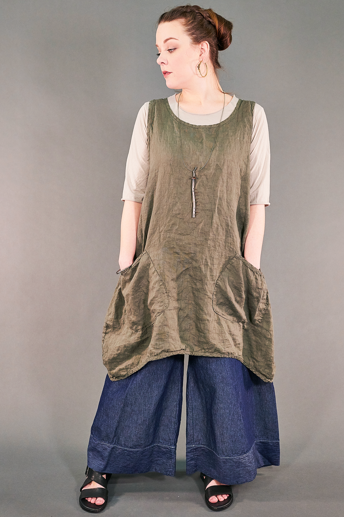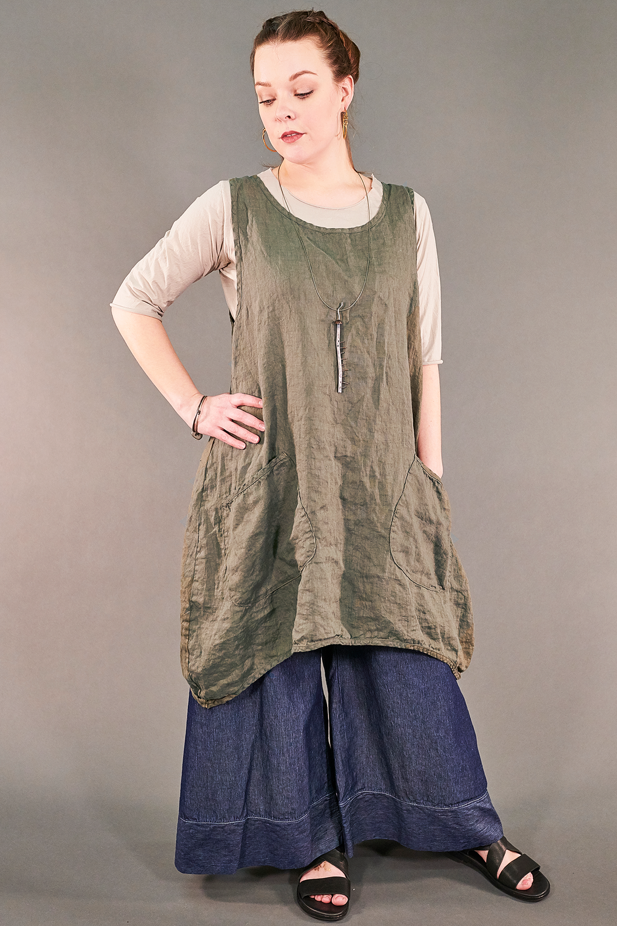 This is lagenlook at its best--a sleeveless midlayer shift that you can wear alone, over, or under all of your other pieces. This linen is truly exquisite, with such an incredible texture and feel (zoom on photos to see details). Two angled pockets on the front.