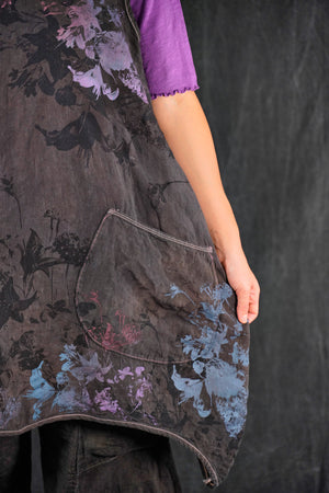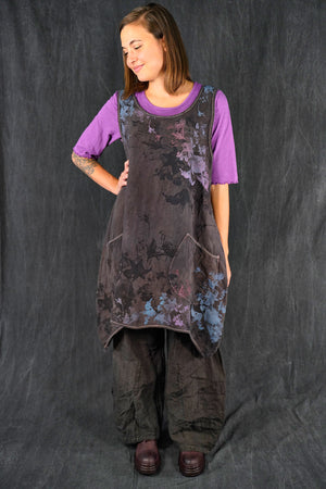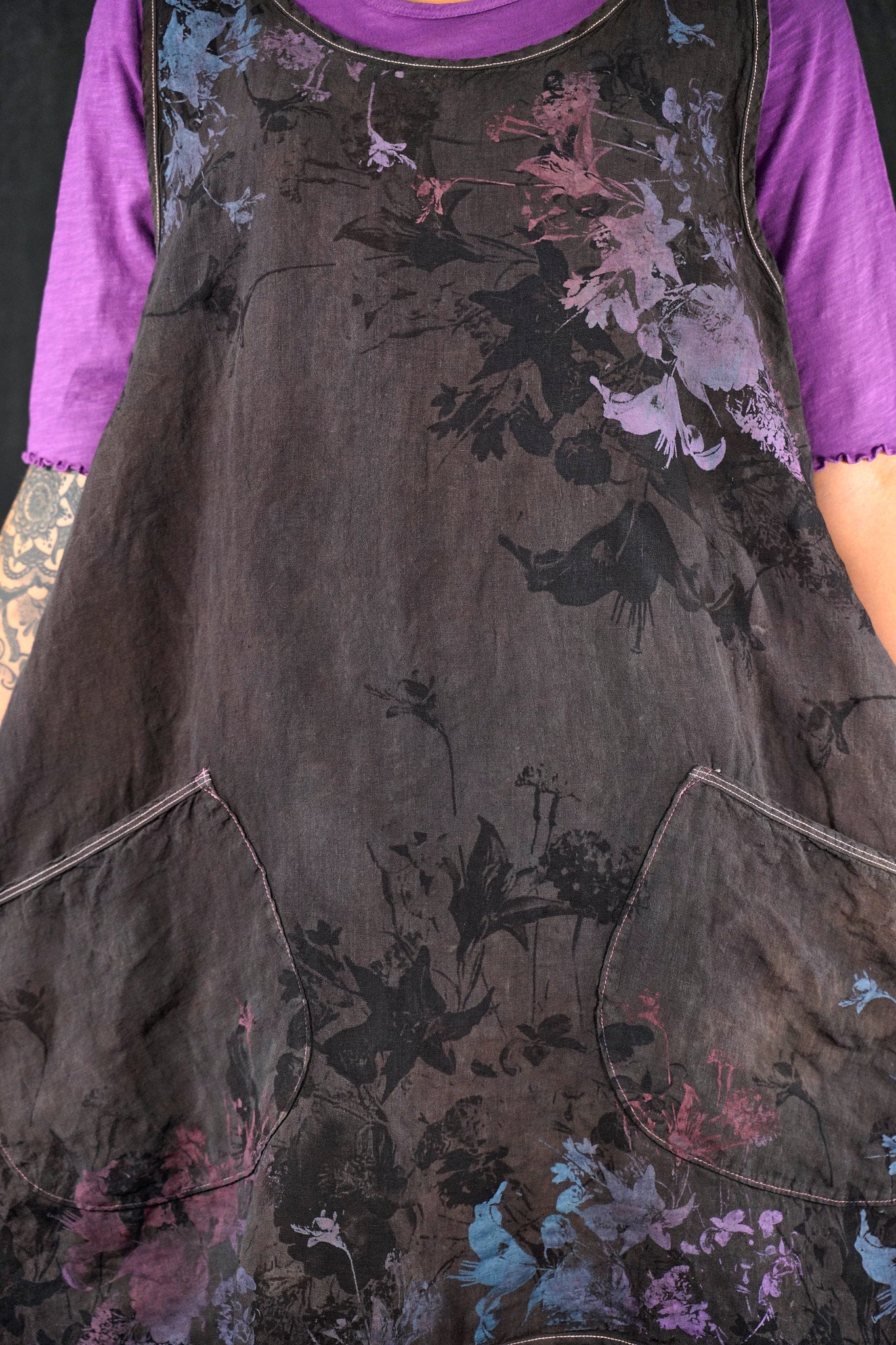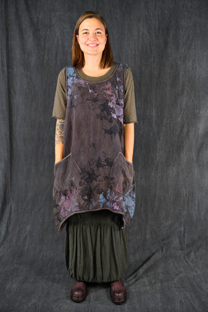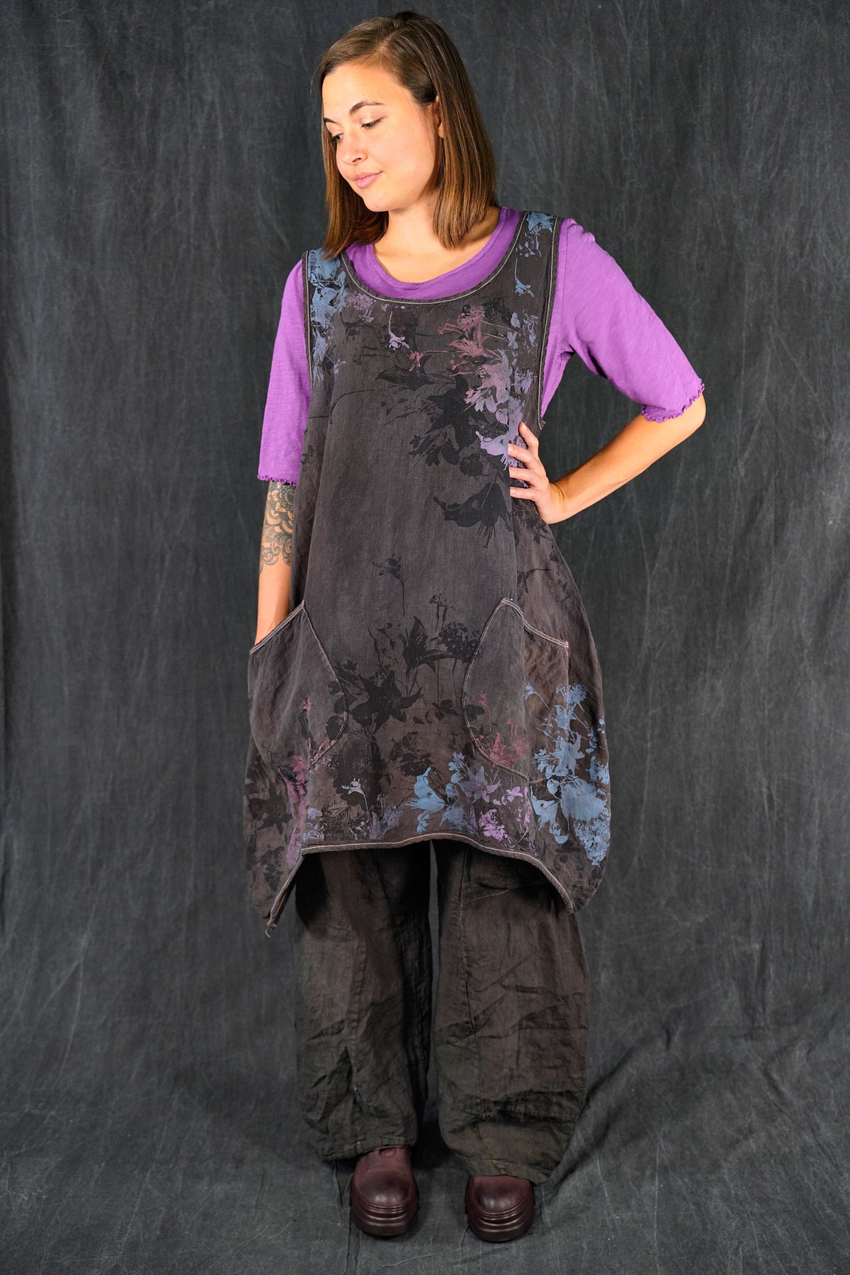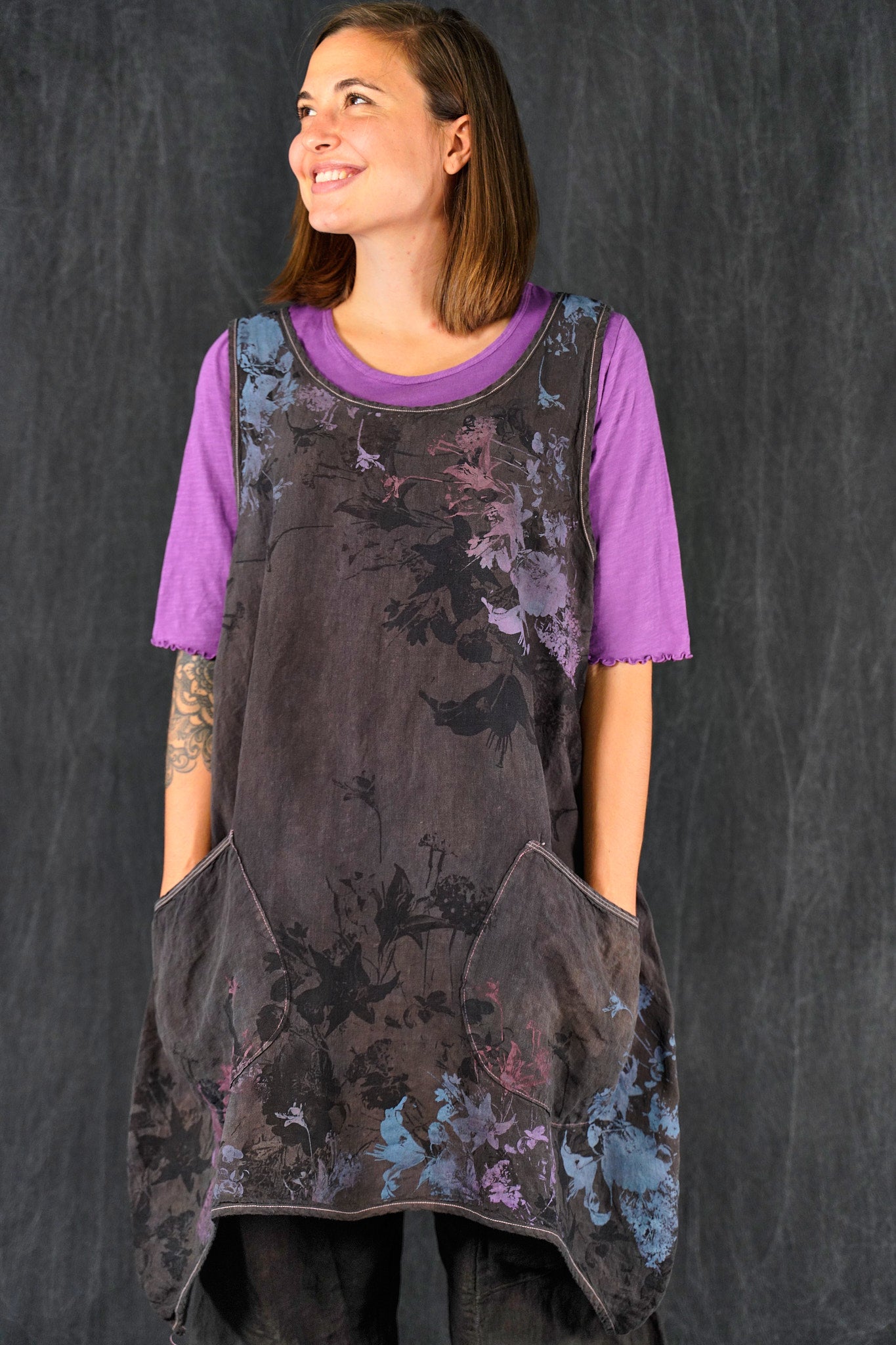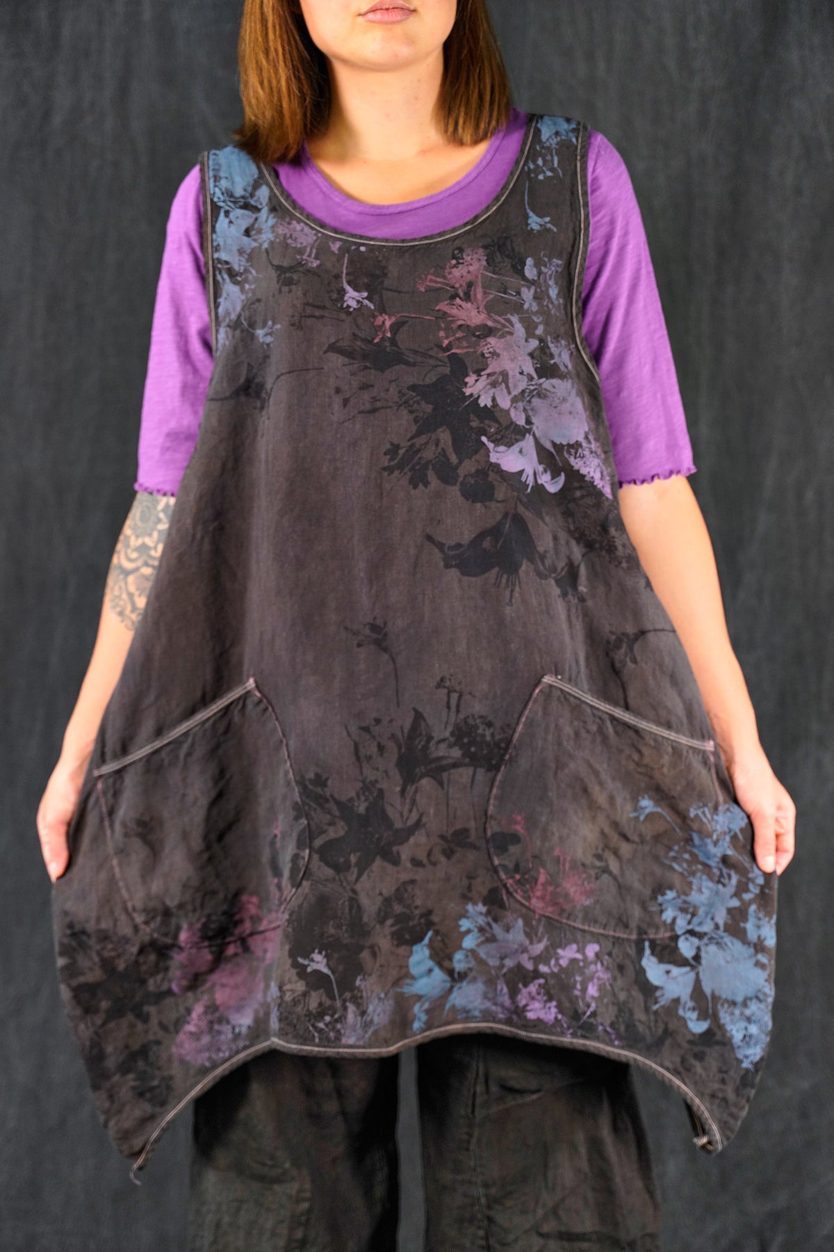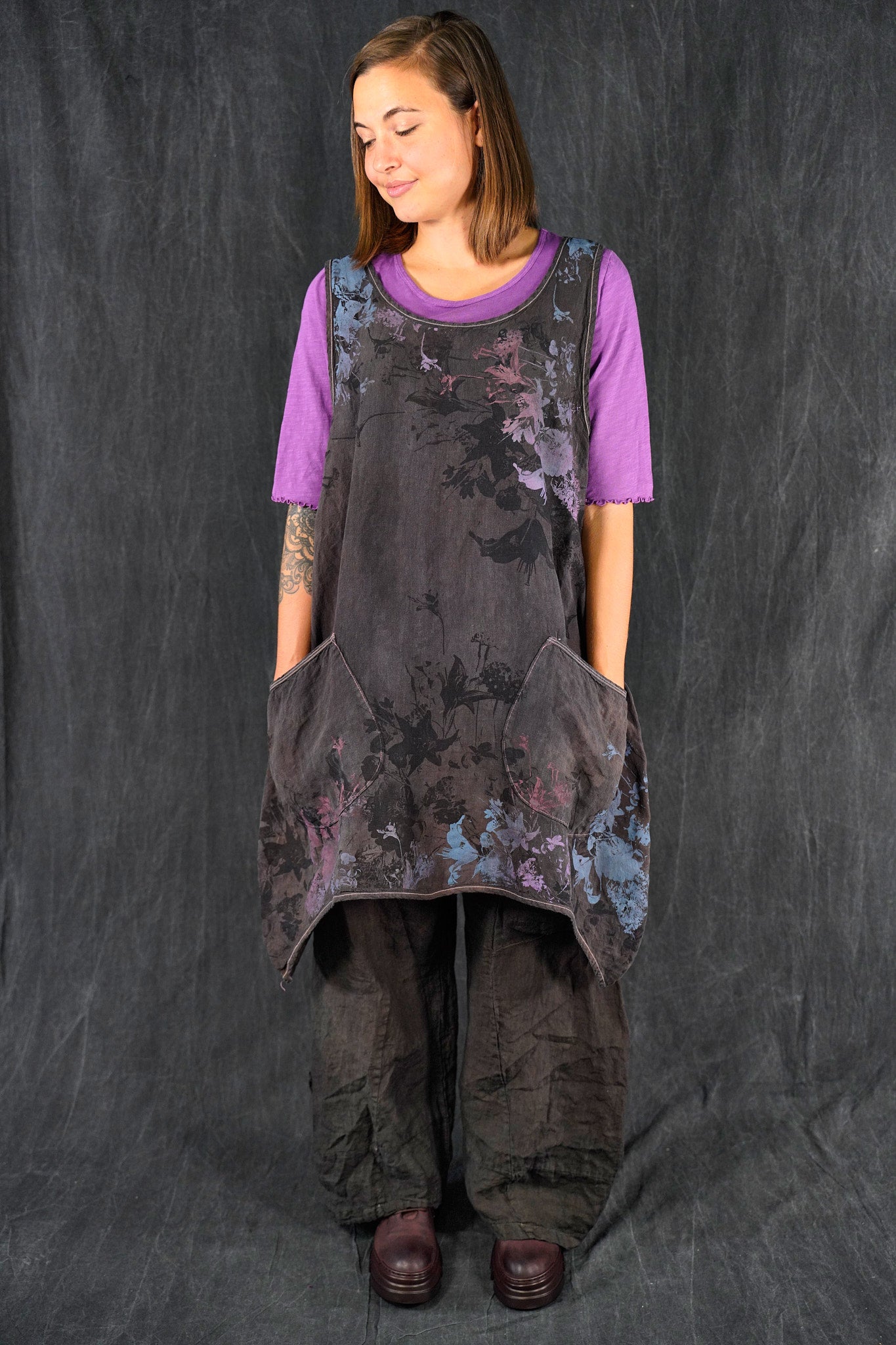 This is lagenlook at its best--a hand dyed sleeveless midlayer shift that you can wear alone, over, or under all of your other pieces. This linen is breathable and a perfect weight for multi-season wear. Two large angled pockets on the front.