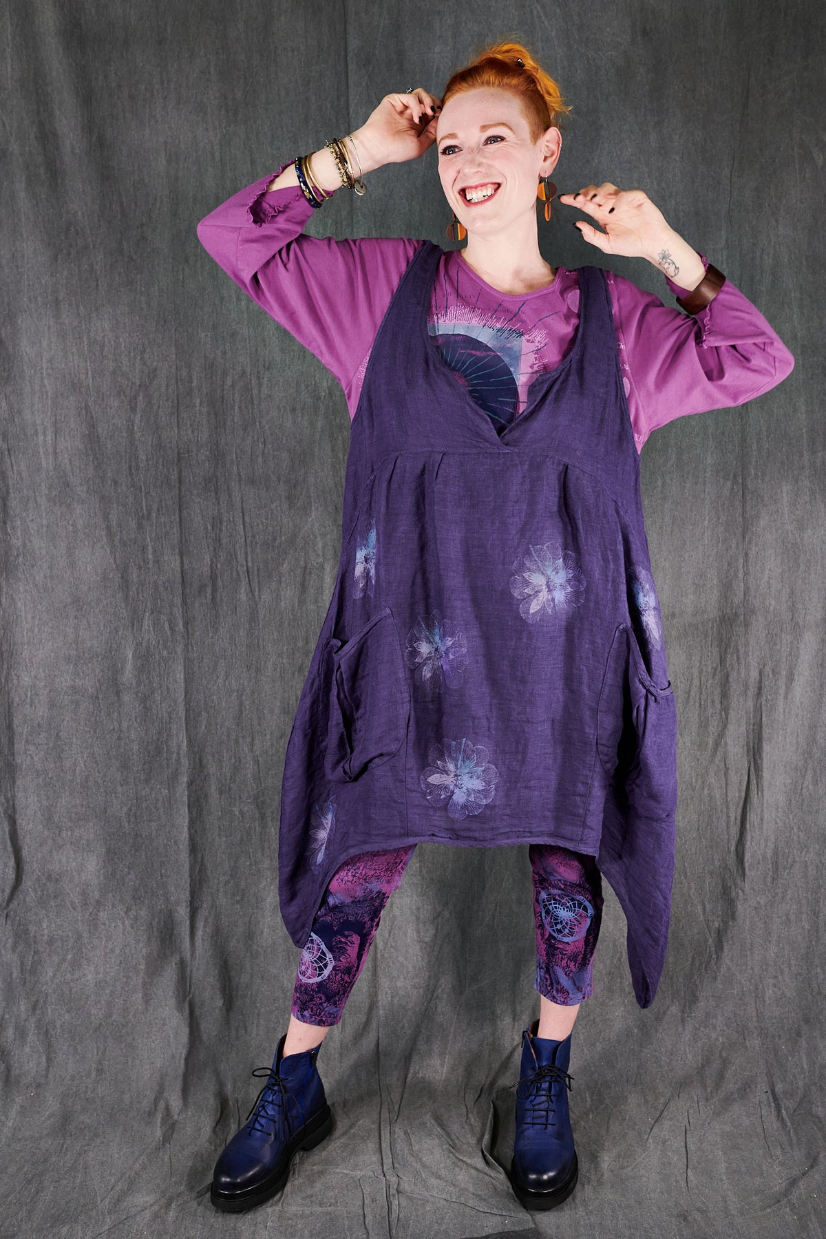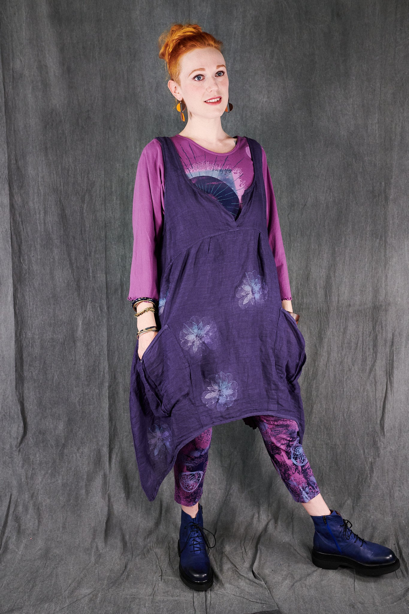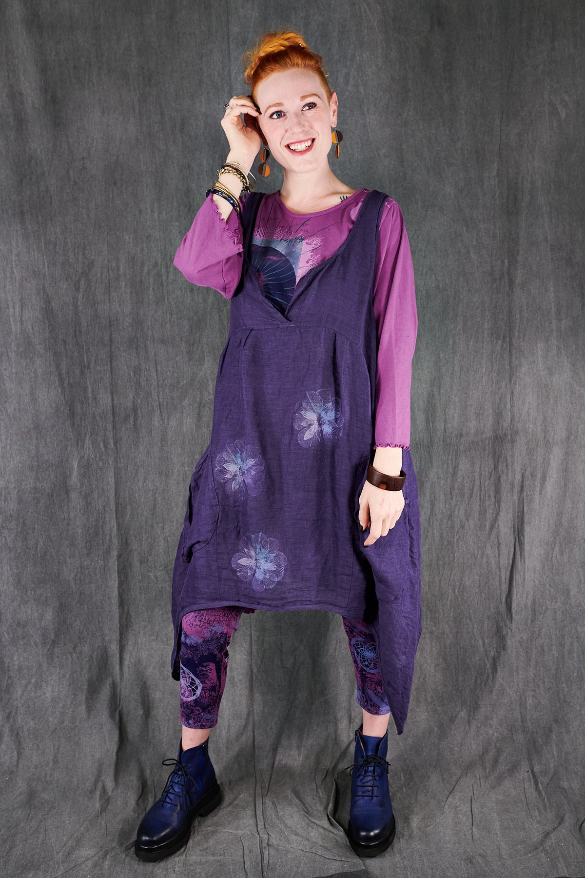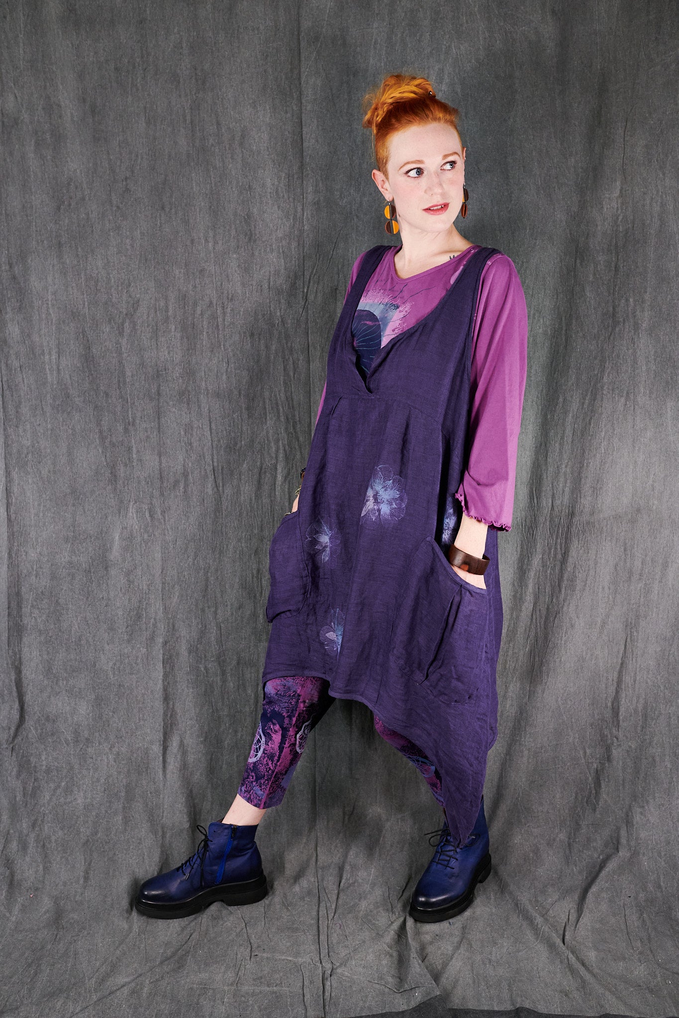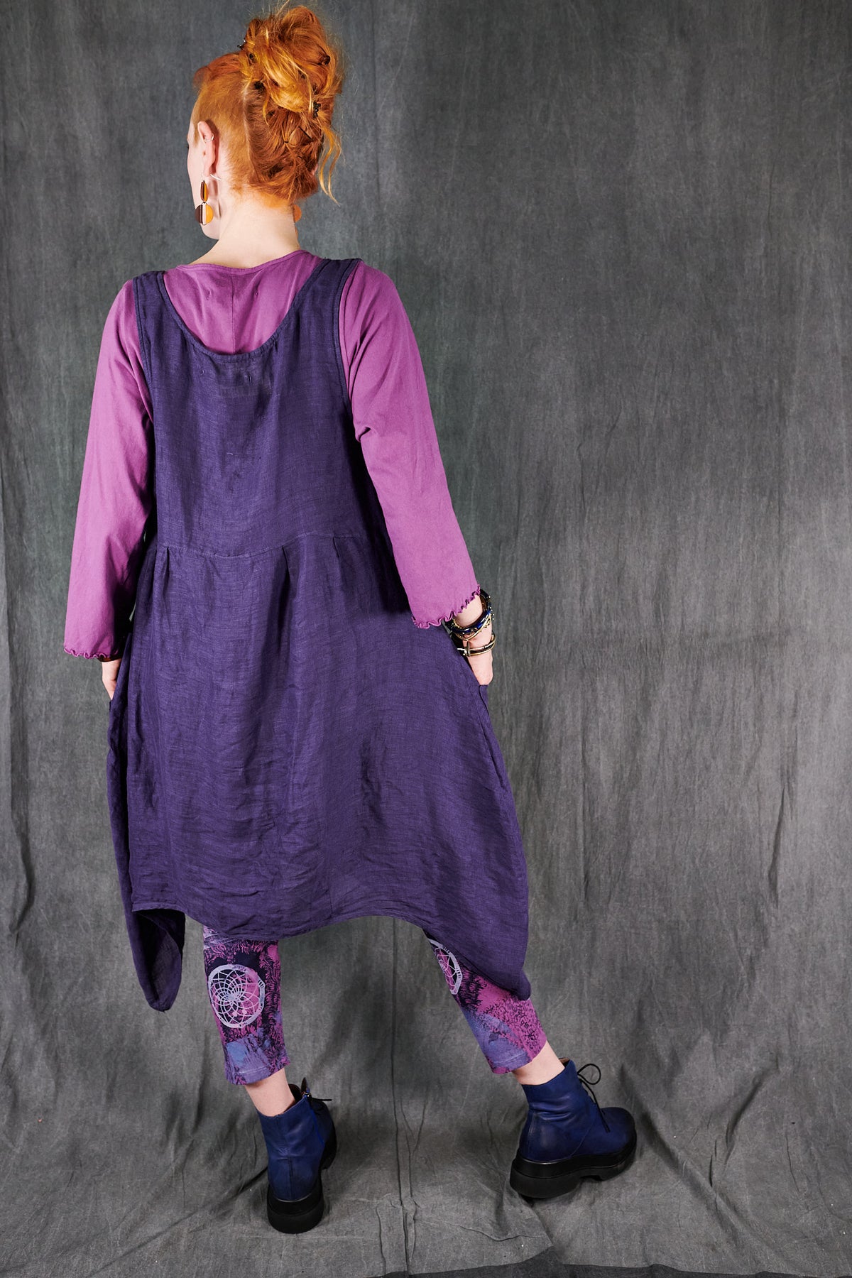 A gorgeous light-as-air shift featuring an open neckline with our favorite over-sized pockets, perhaps for stowing away seashells collected on a stroll by the beach. This shift transforms from a day at the beach, to an evening out as elegantly as you can imagine. Dress it up with a pair of heels, a beautiful necklace, and a shawl. Paired here with #3258 Double Gauze Striped Mojo Pants.