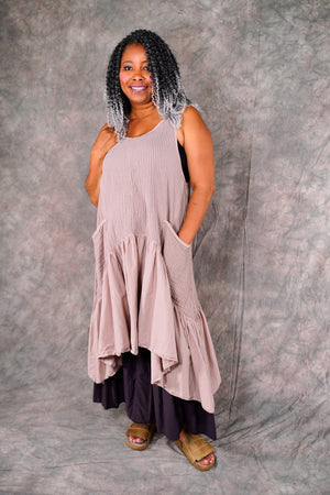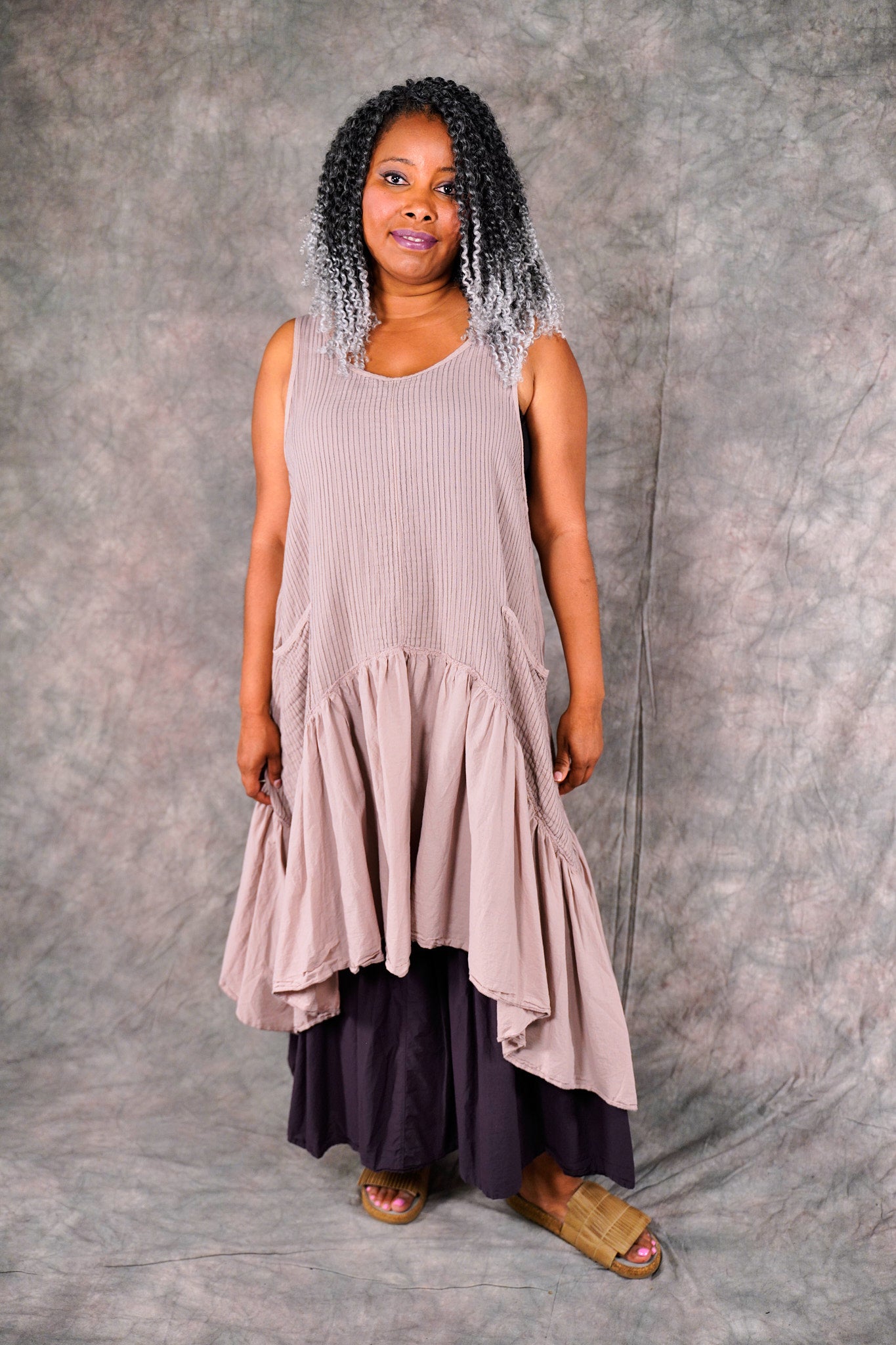This floaty and fun style is a jumper, a dress, a layering piece. It is a chameleon in your wardrobe and you will find it easy to add to many looks. This is a favorite style so do not dally! It instantly dresses up any ensemble & creates a totally unique look.