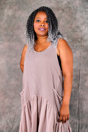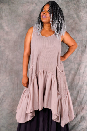 The sleeveless striped double gauze woven cotton top gives way to a delicately curving and super-gathered lightweight cotton lawn skirt. Every inch of this skirt was designed with love & sewn with time and attention to last, it is truly a treasure you will wear for years and wears.